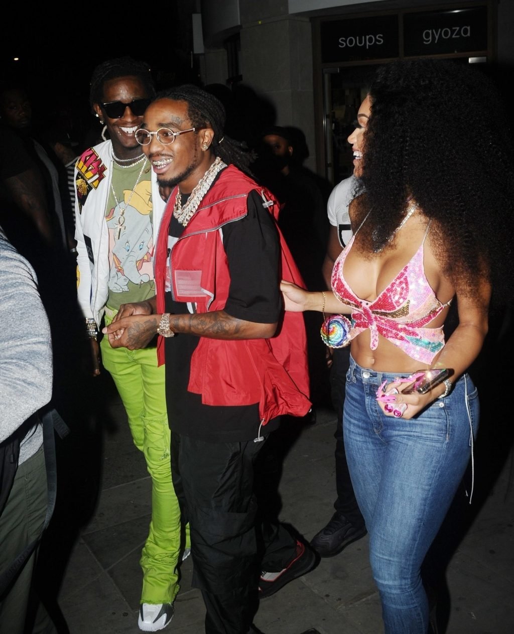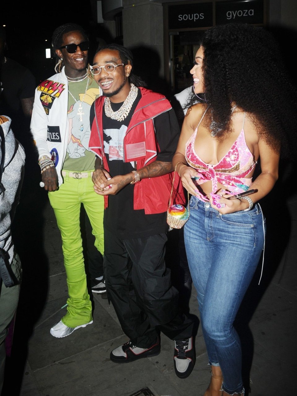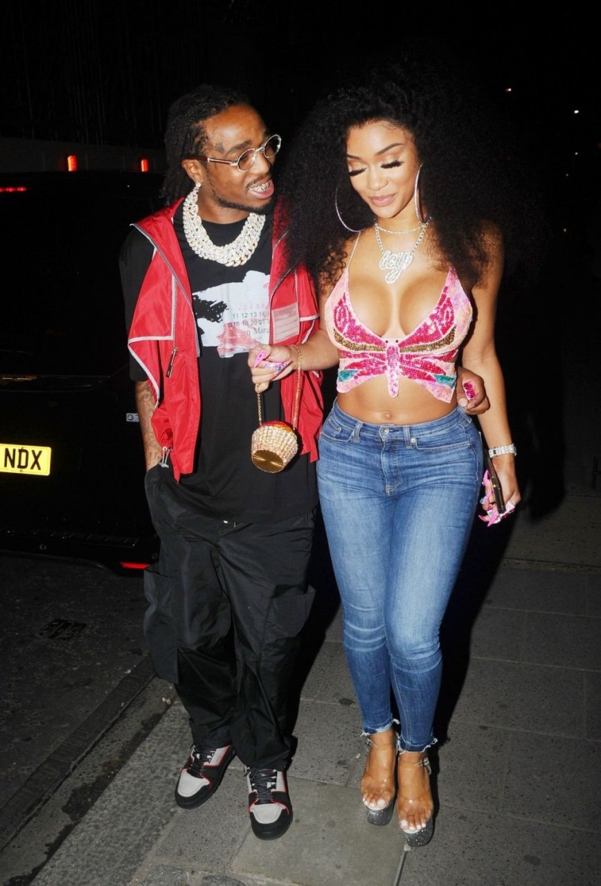 Le rappeur américain Quavo et la chanteuse Saweetie (Diamonté Harper) ont été vus en train de célébrer son anniversaire à Londres, le 07/03/2019.