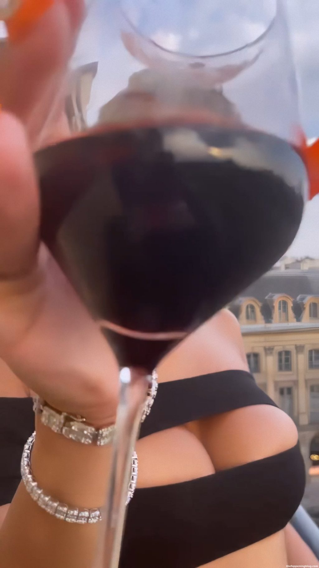 La chanteuse Saweetie affiche sa silhouette en montrant un décolleté impressionnant de près avec sa forte poitrine dans une robe noire moulante posant sur le balcon d’un hôtel – Instagram, 23/07/2021.