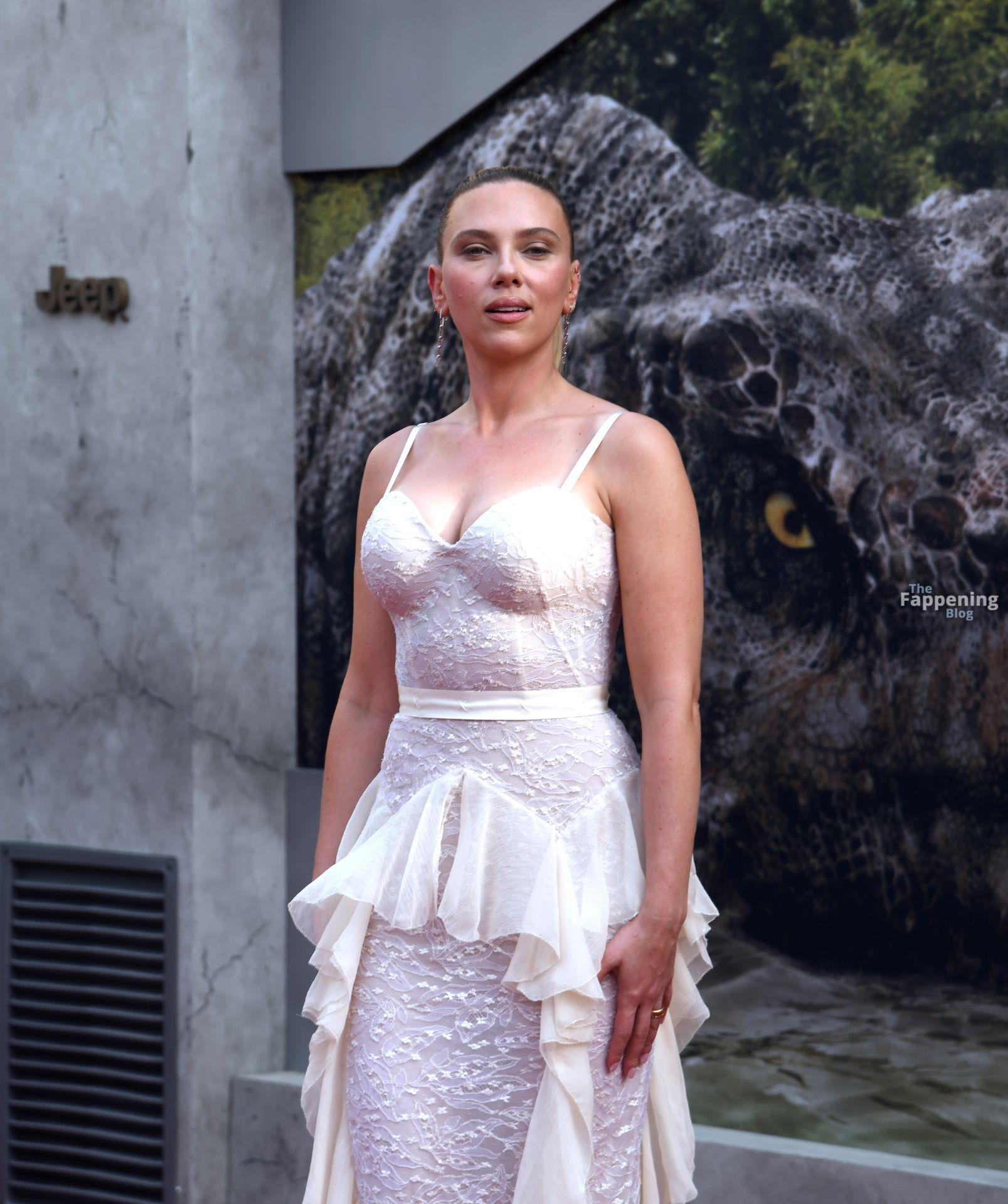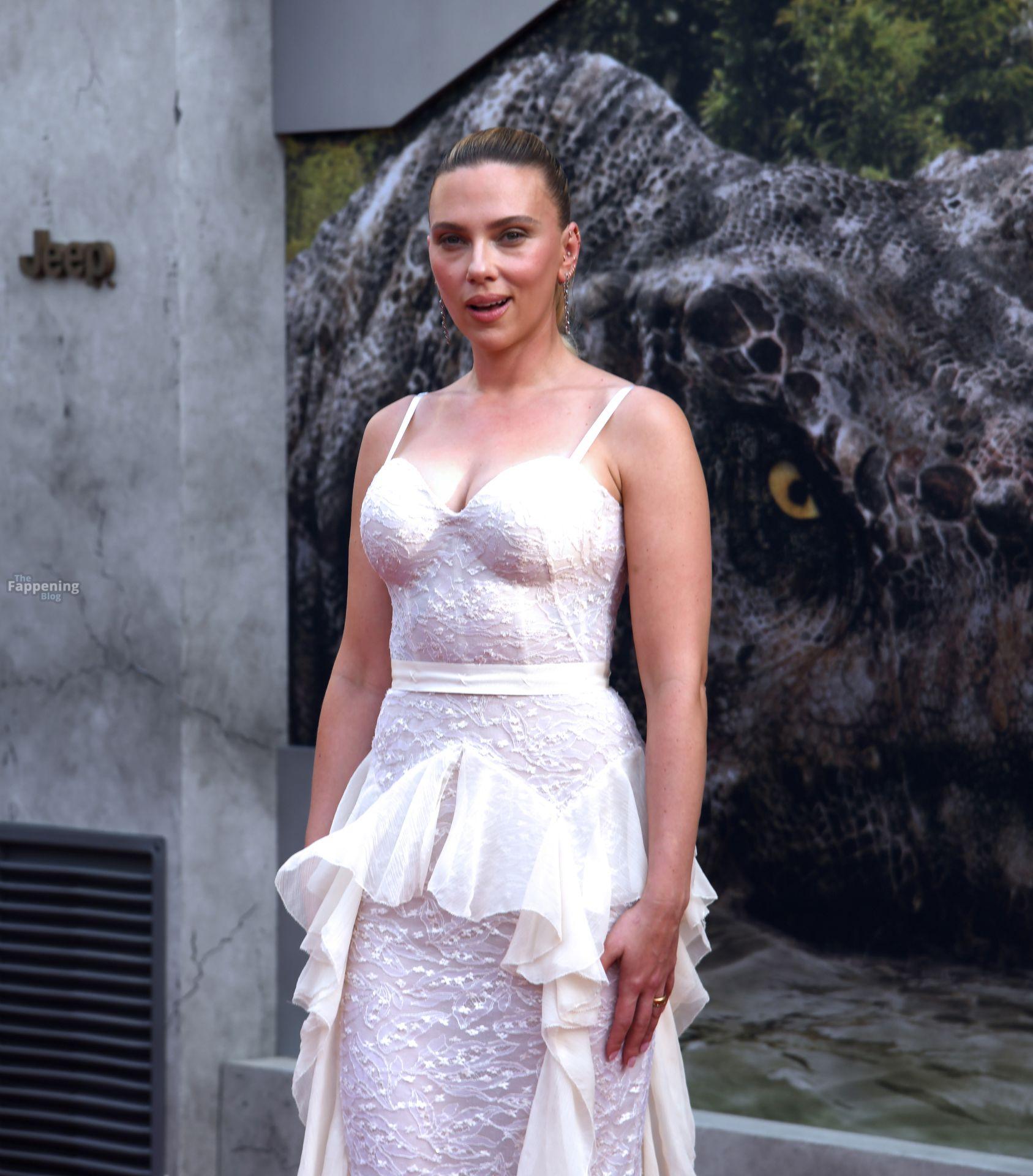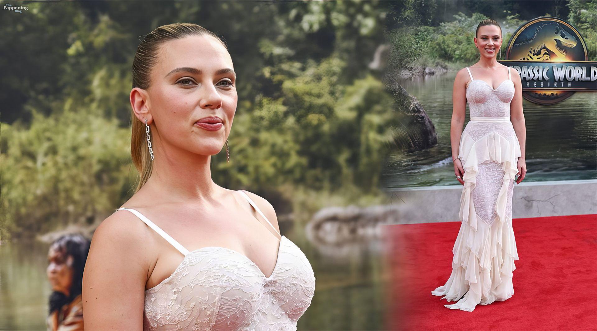 La star du Fappening Scarlett Johansson a fait sensation à la première de “Jurassic World Rebirth” à Hearst Plaza au Lincoln Center à New York et a totalement volé la vedette. La beauté hollywoodienne portait une robe en dentelle blanche.