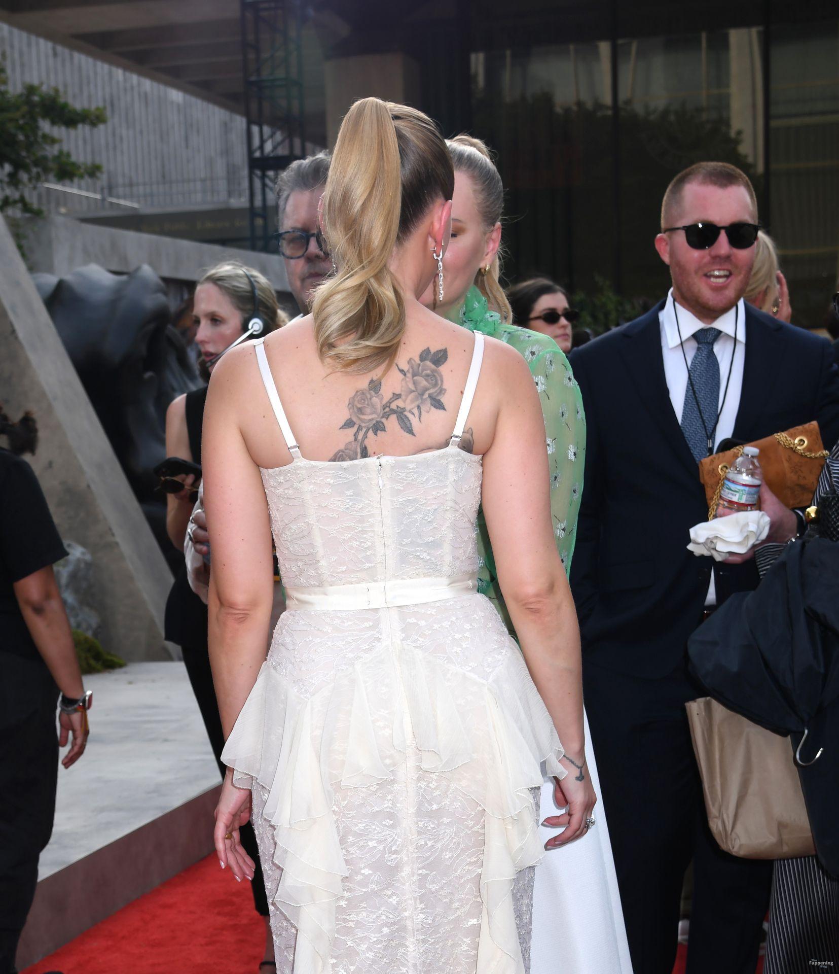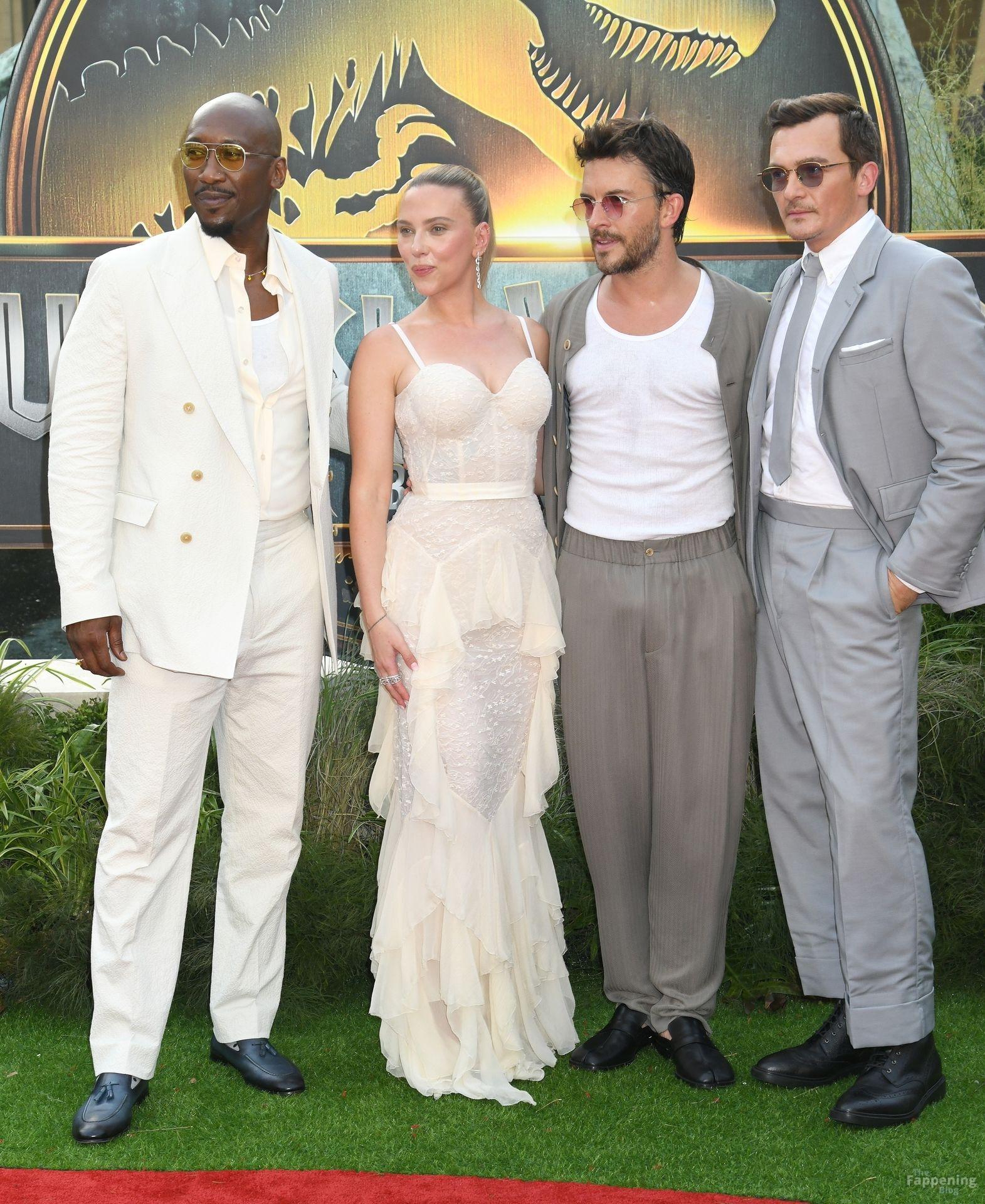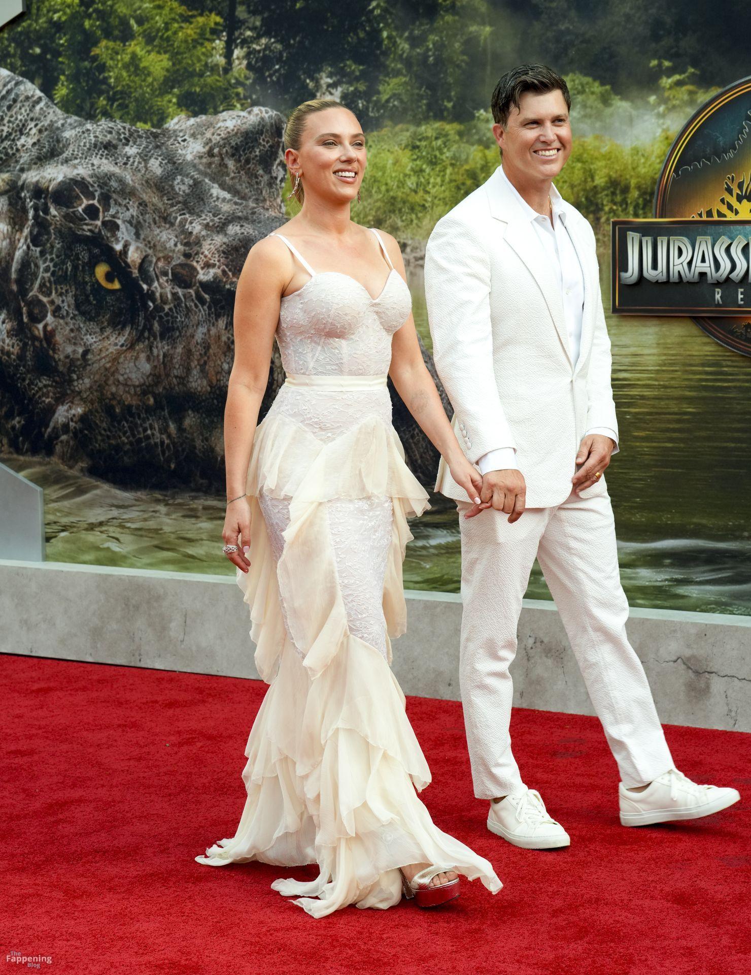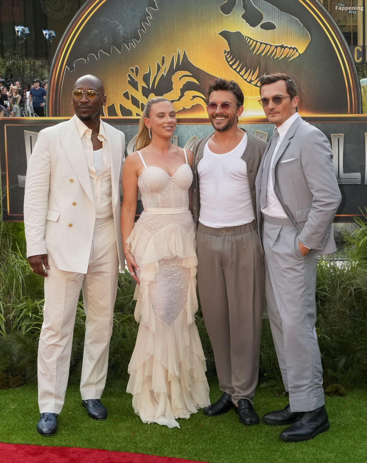La star du Fappening Scarlett Johansson a fait sensation à la première de “Jurassic World Rebirth” à Hearst Plaza au Lincoln Center à New York et a totalement volé la vedette. La beauté hollywoodienne portait une robe en dentelle blanche.