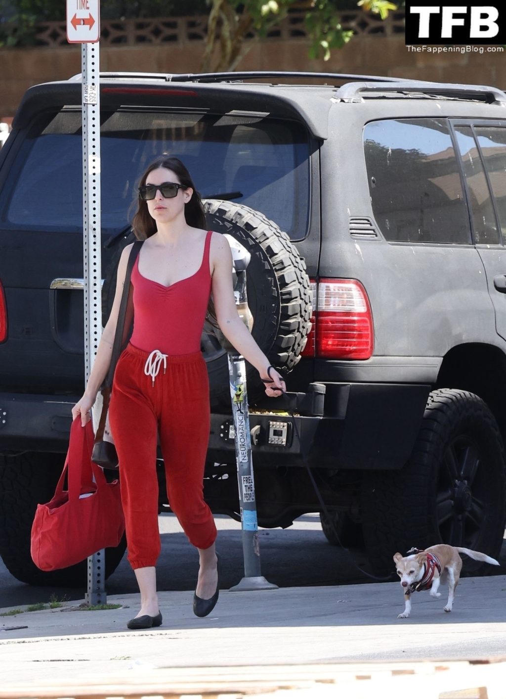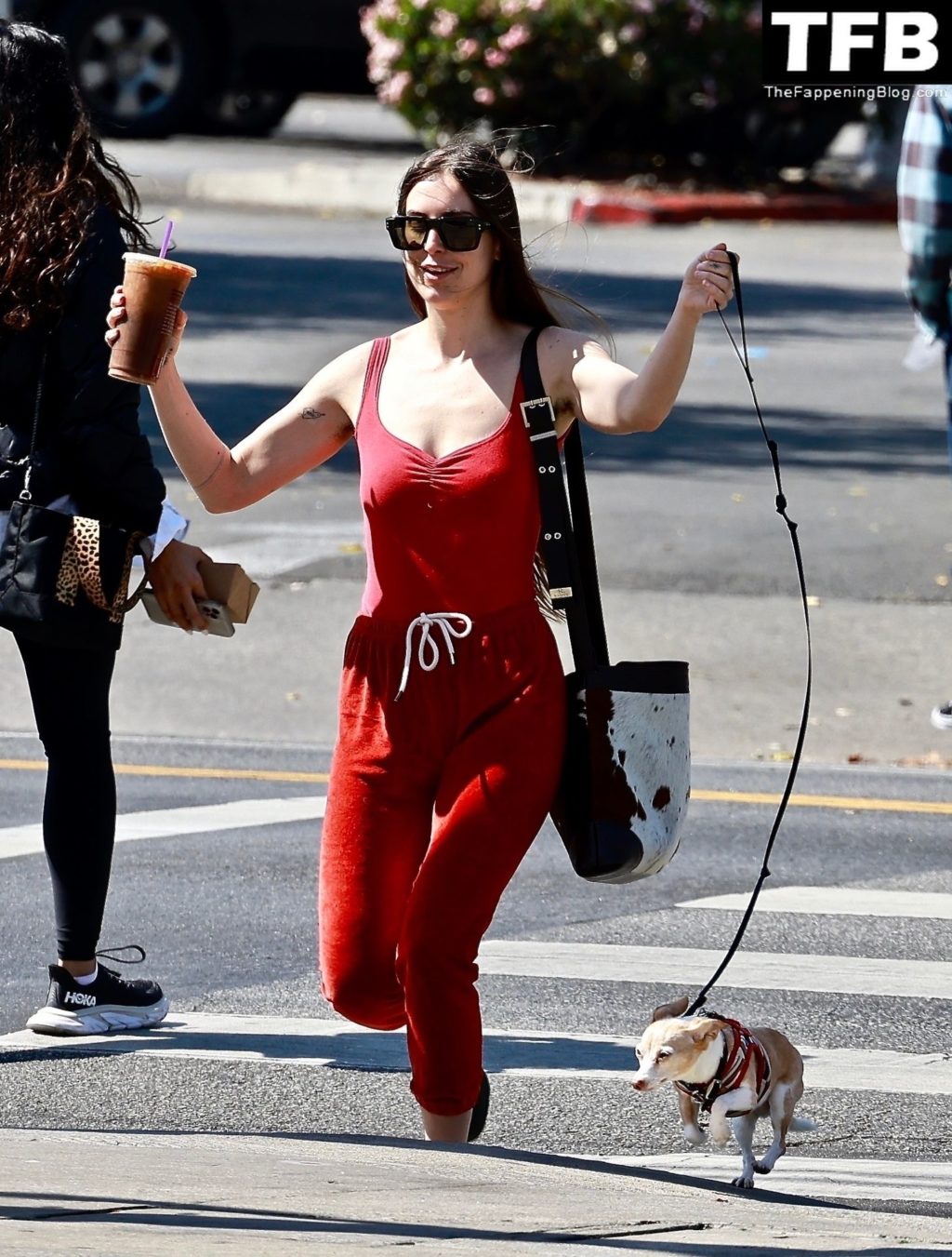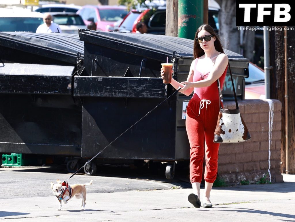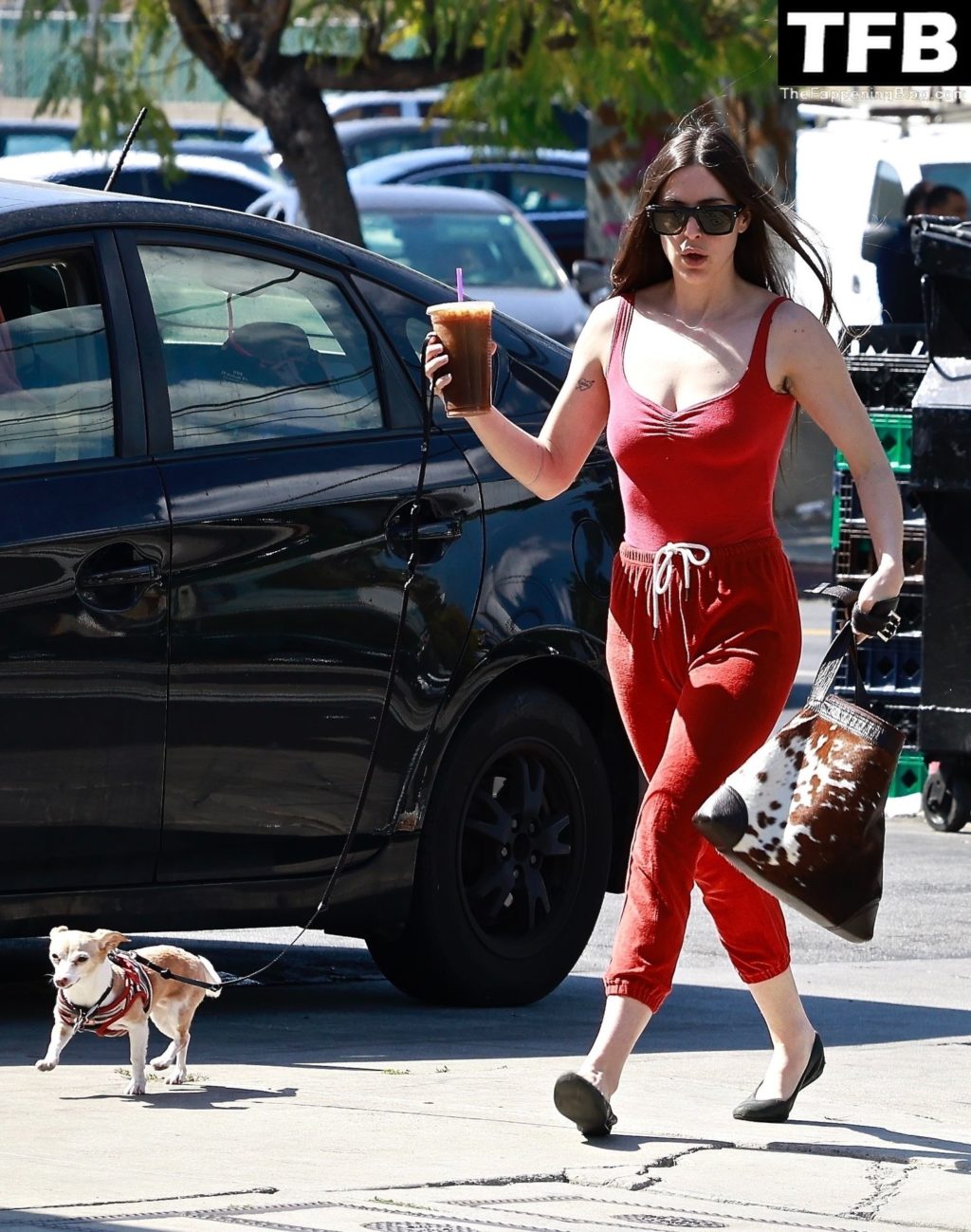 Scout Willis est vue en train de faire quelques courses ce matin avec son chien, portant un débardeur rouge assorti à un pantalon de survêtement. Scout a fait une halte dans son magasin FedEx local puis a pris un café glacé sur le chemin du retour.