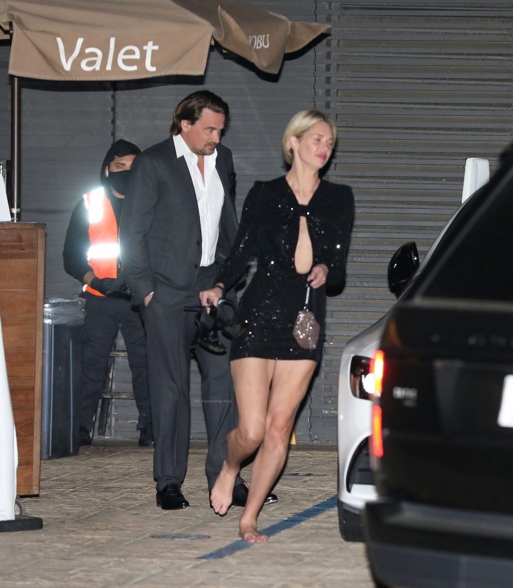 Sean était élégant dans son costume sur mesure tandis que sa cavalière brillait dans une robe noire décolletée. Après le dîner, sa cavalière quitte le restaurant pieds nus en portant ses talons.