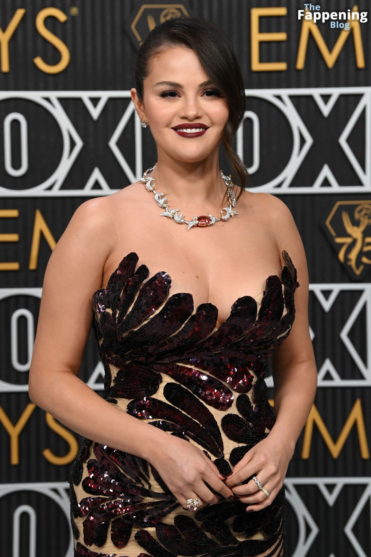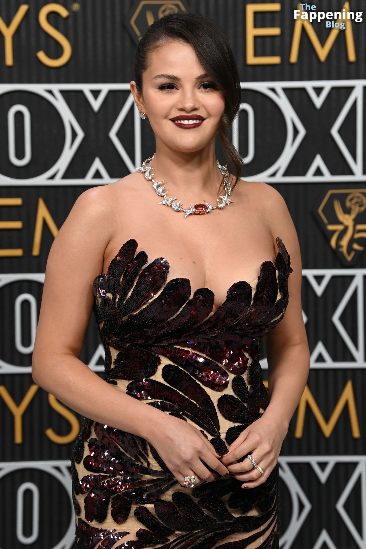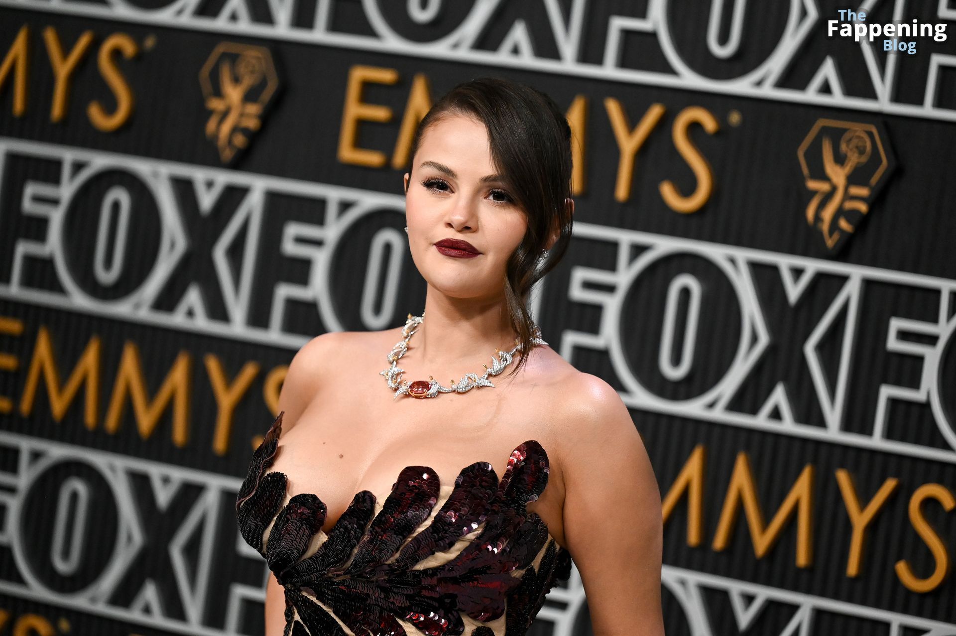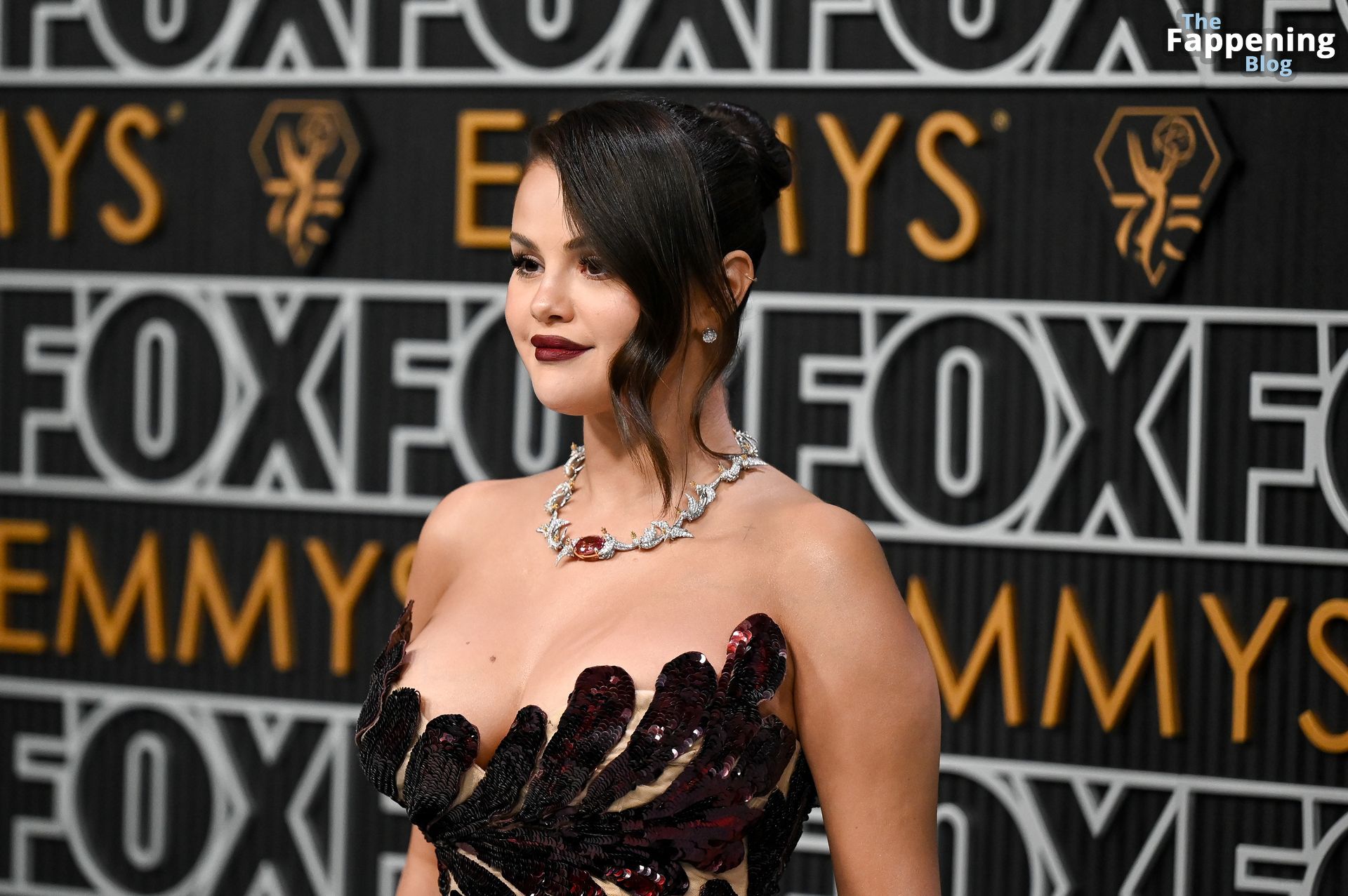 Selena Gomez fait monter la température à l’événement avec un décolleté sexy. Elle était présente à la 75e cérémonie des Primetime Emmy Awards au Peacock Theater le 15 janvier 2024 à Los Angeles, Californie.