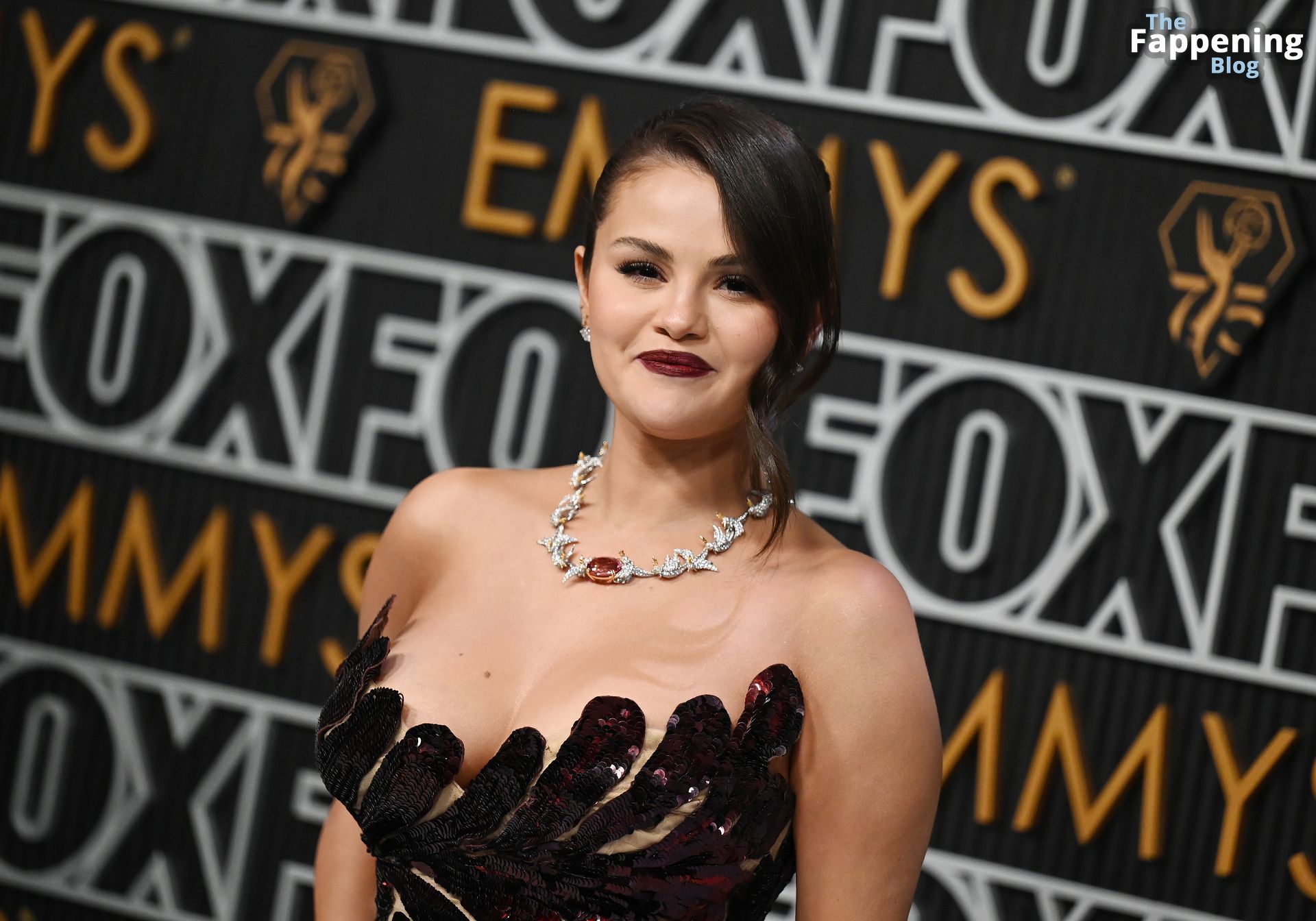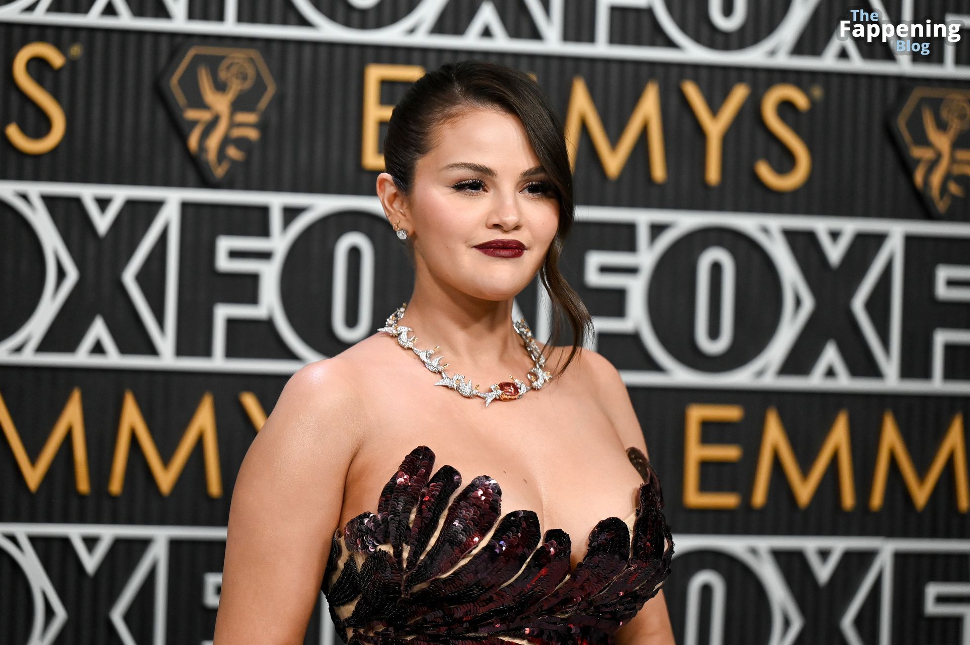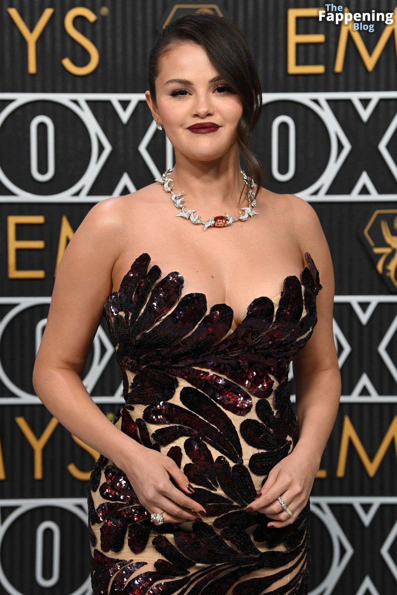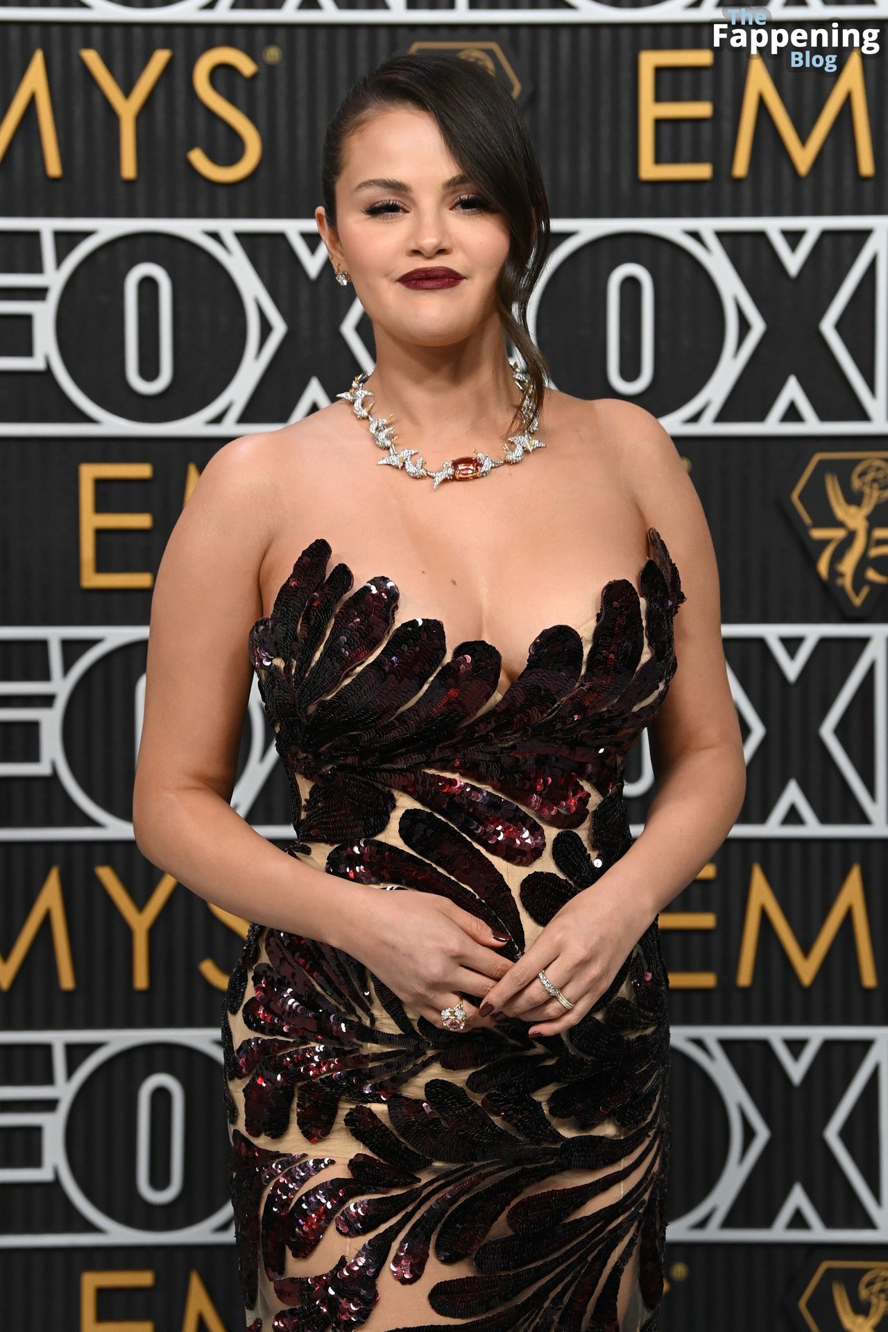 Selena Gomez fait monter la température à l’événement avec un décolleté sexy. Elle était présente à la 75e cérémonie des Primetime Emmy Awards au Peacock Theater le 15 janvier 2024 à Los Angeles, Californie.