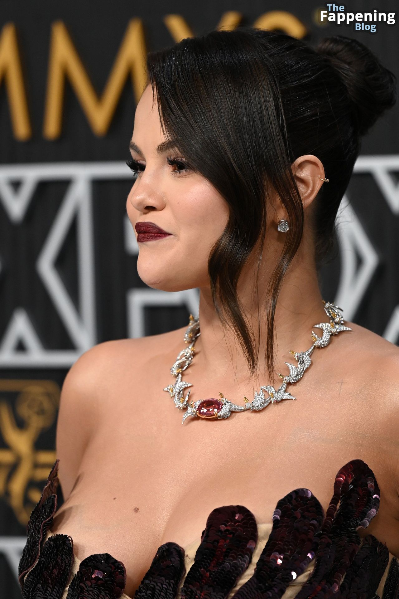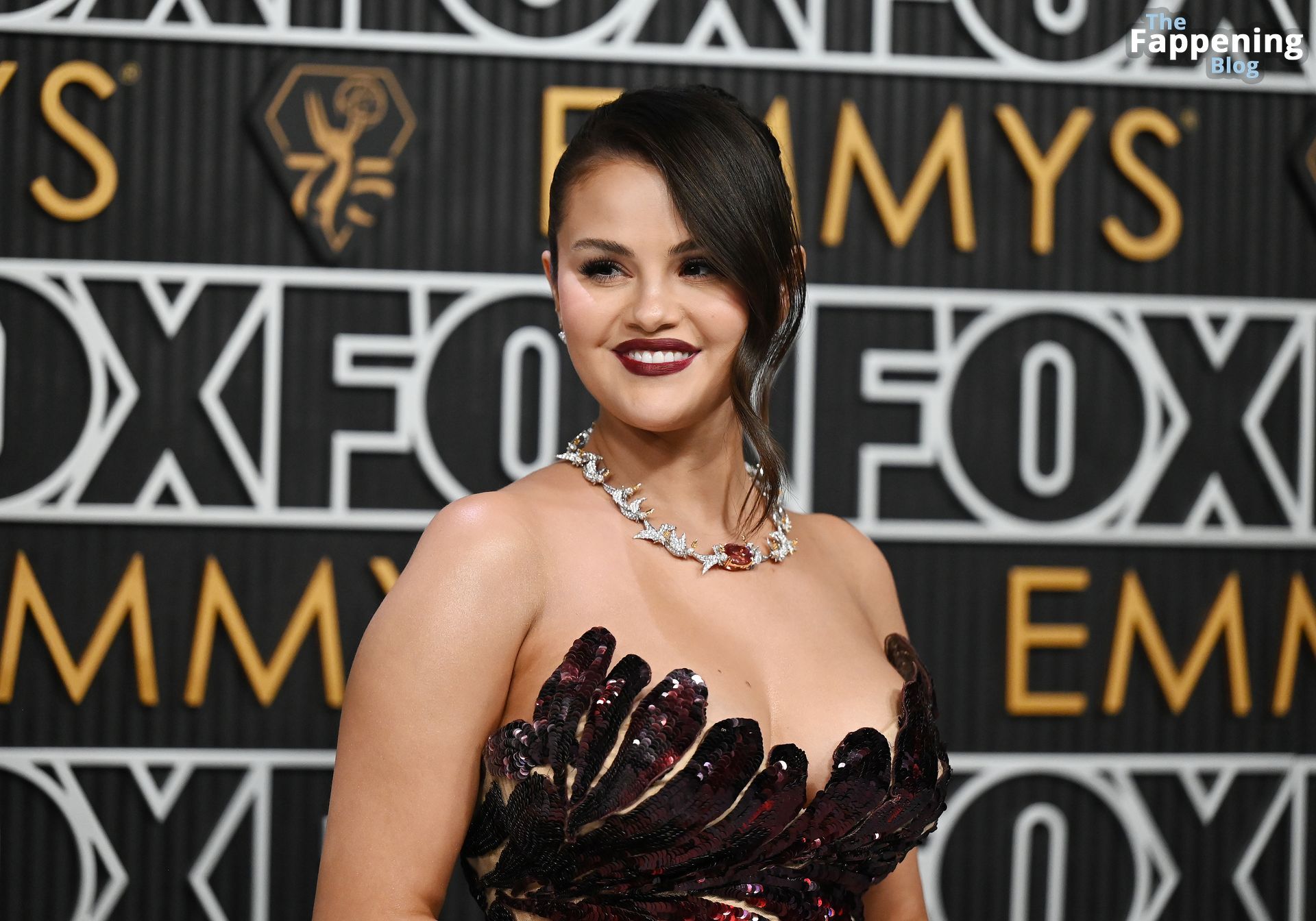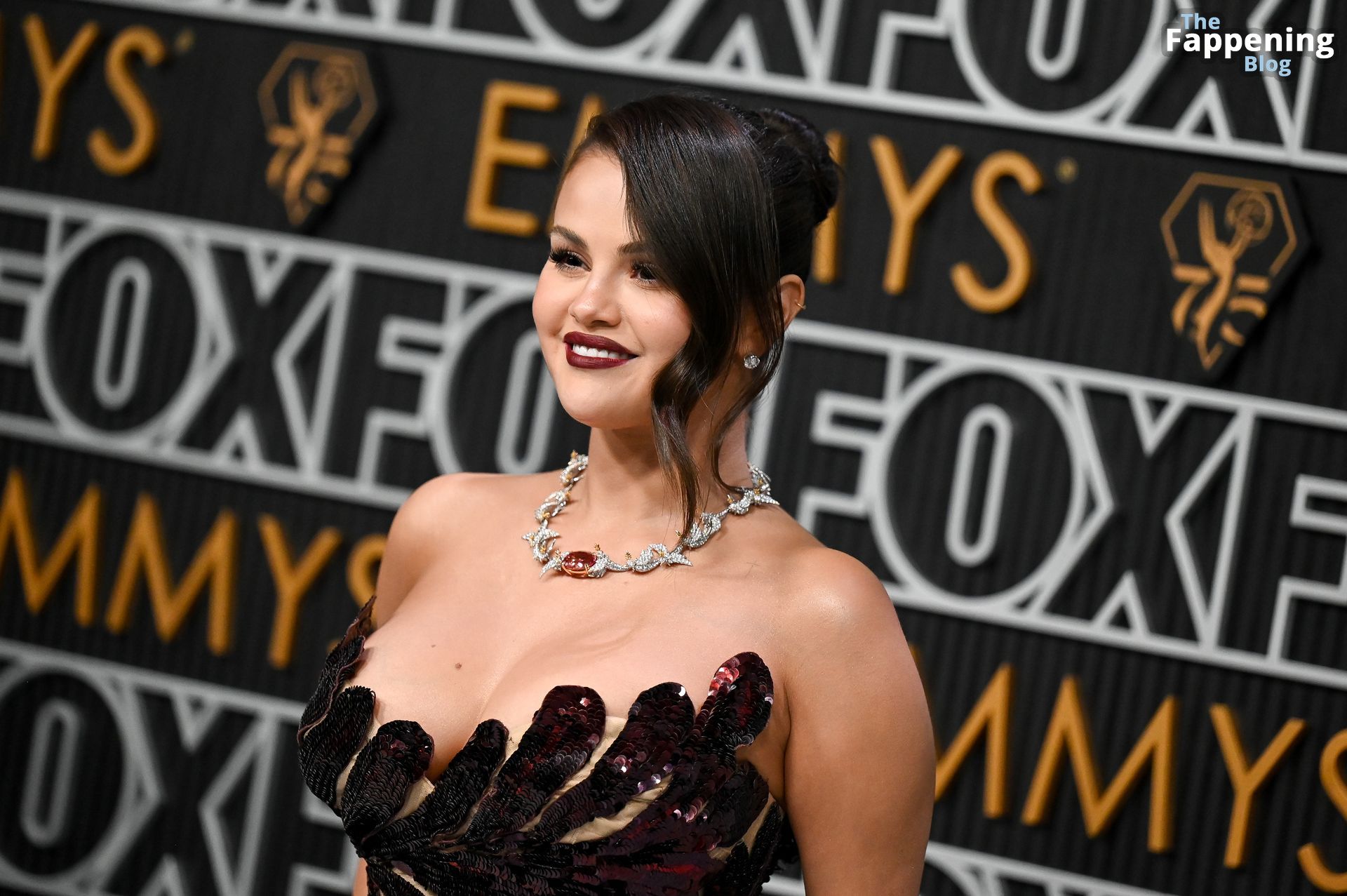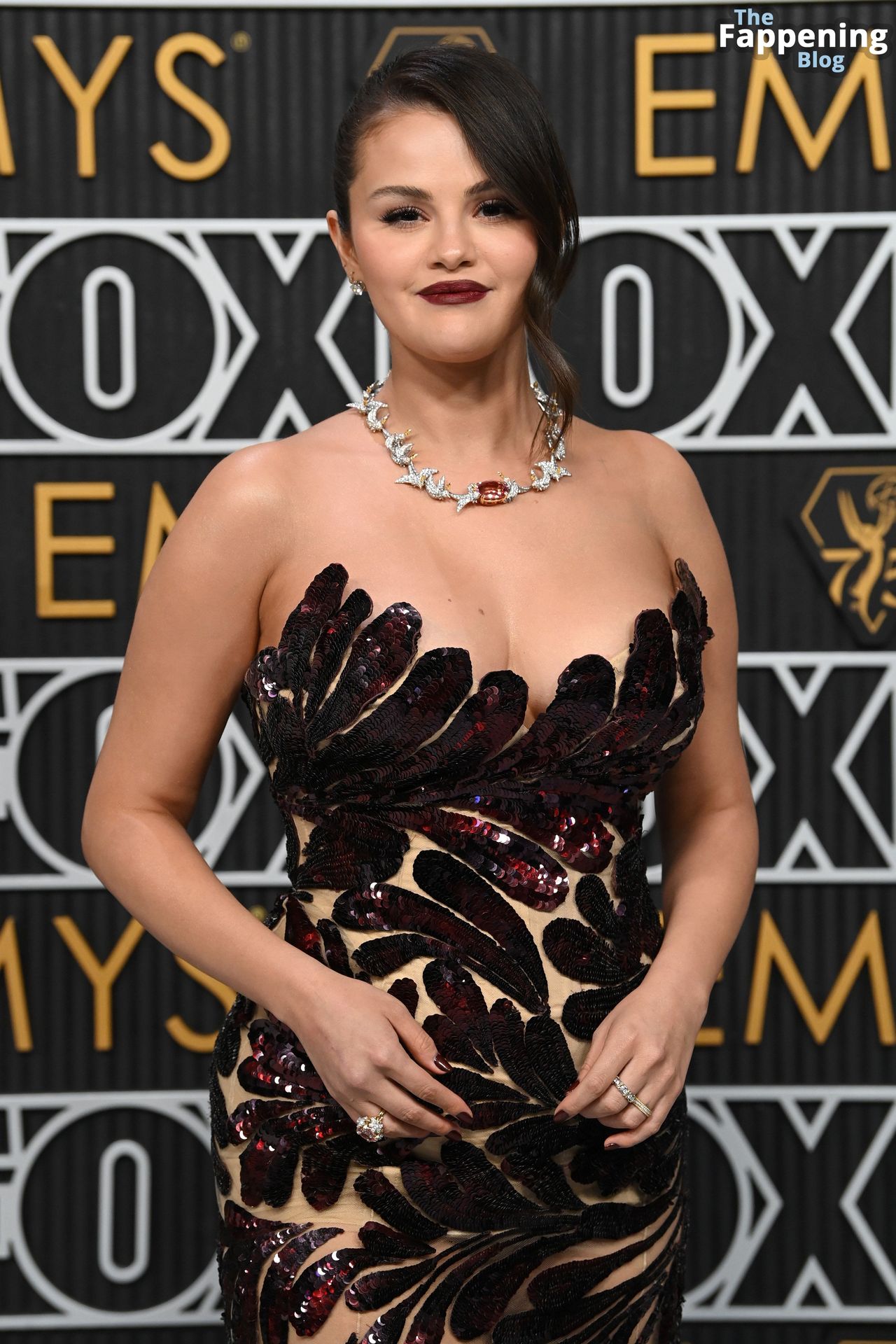 Selena Gomez fait monter la température à l’événement avec un décolleté sexy. Elle était présente à la 75e cérémonie des Primetime Emmy Awards au Peacock Theater le 15 janvier 2024 à Los Angeles, Californie.