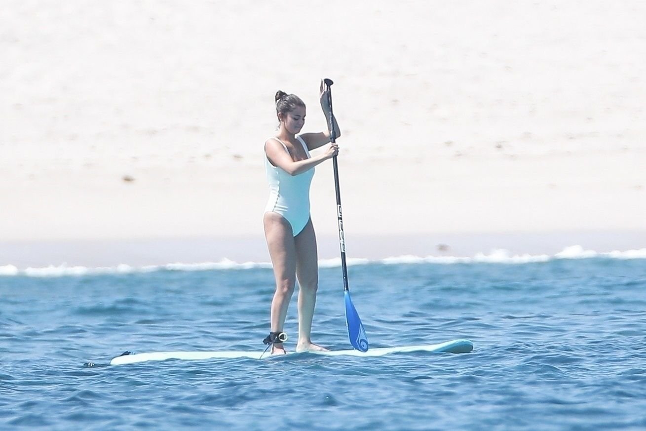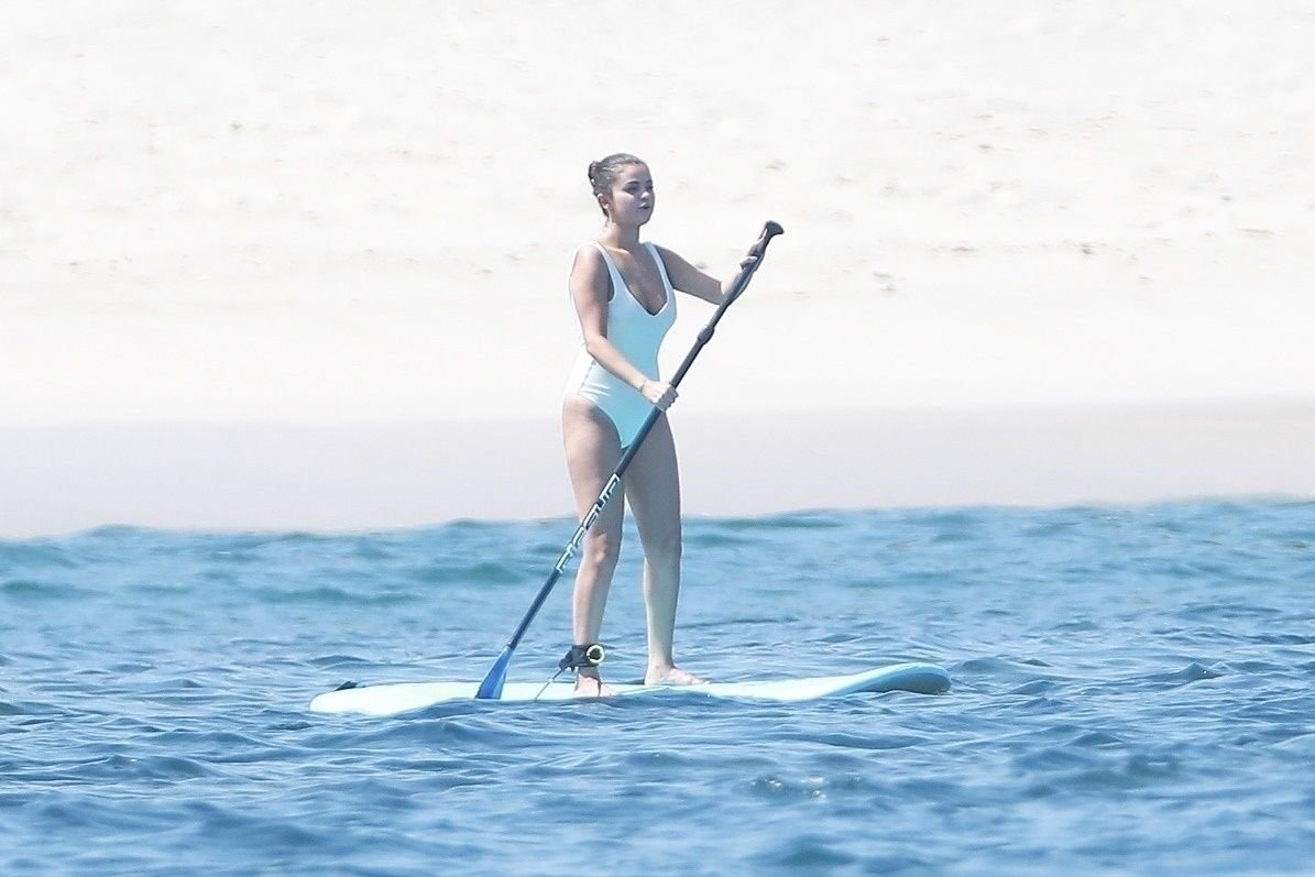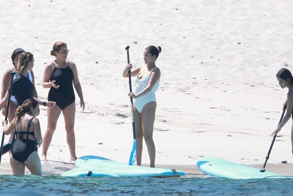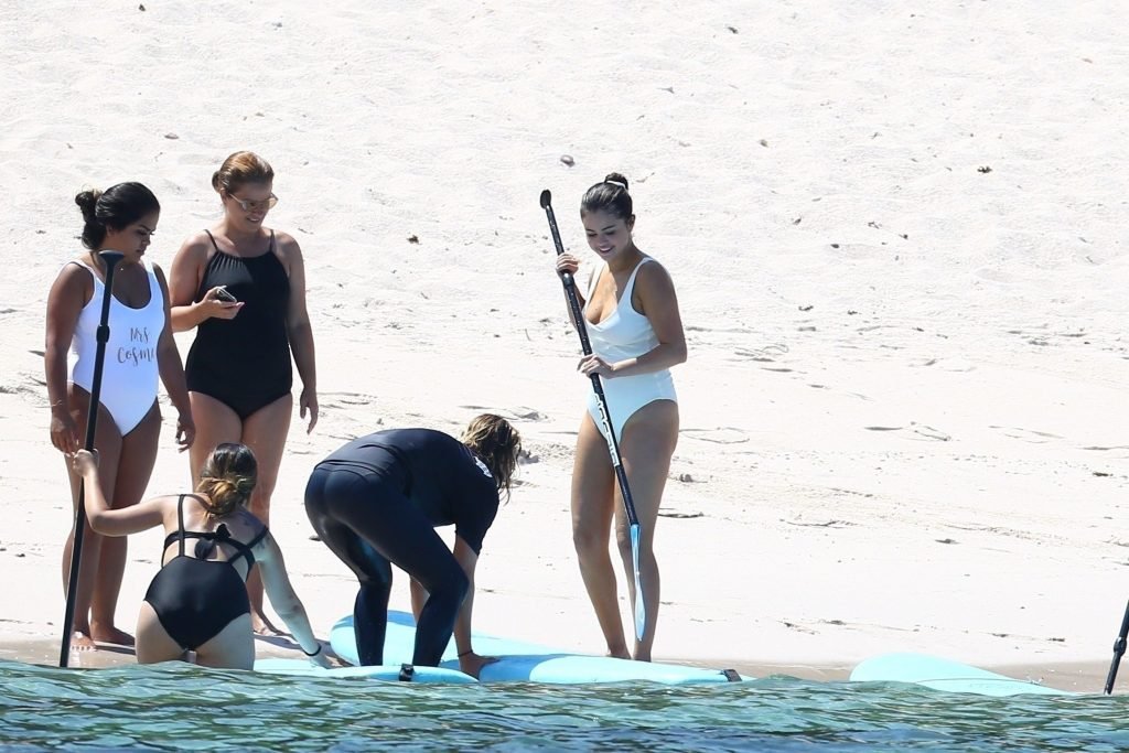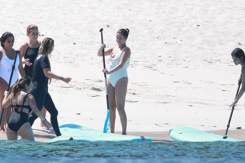 Selena Gomez fait du paddle avec ses amis au Four Seasons Resort Punta Mita lors d’une fête de célibataire, 30/06/2019.