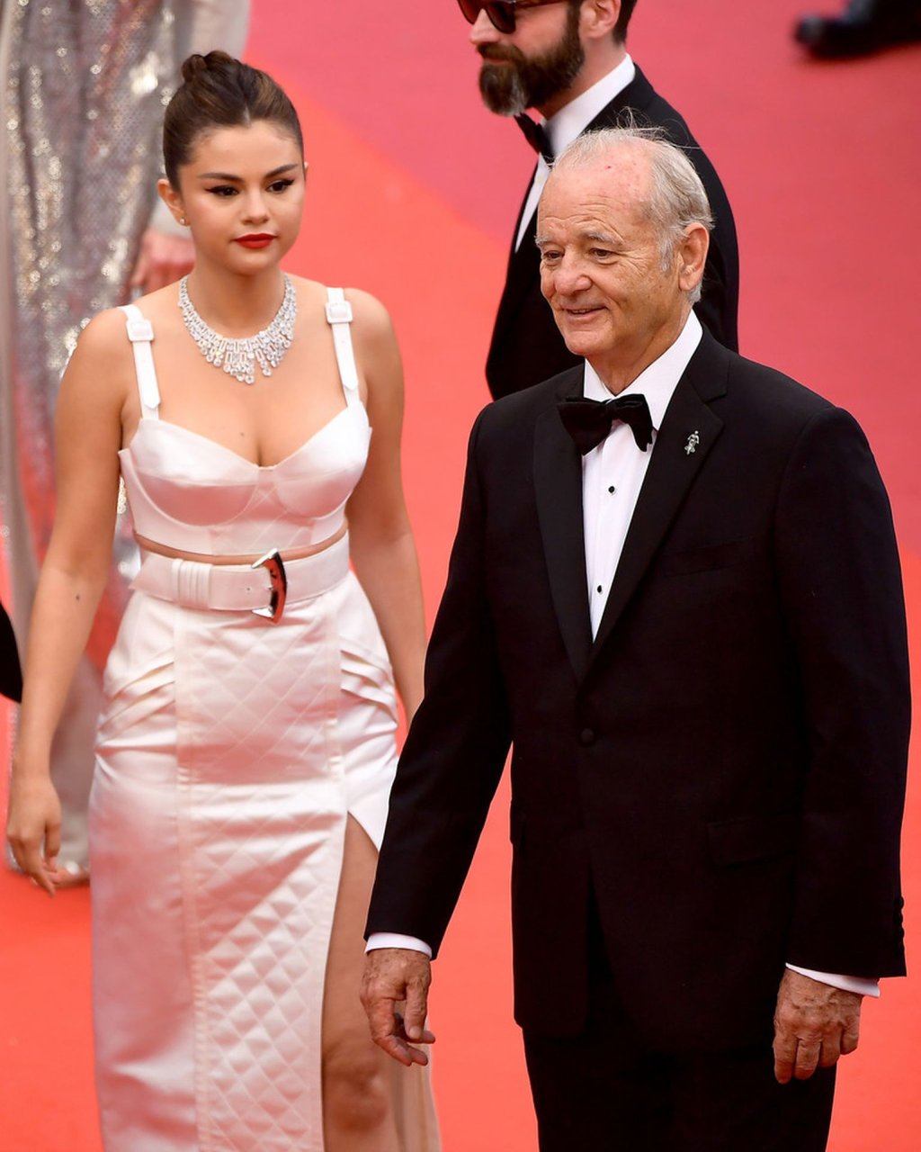 Selena Gomez and Bill Murray exit the Carlton Hotel and make their way to the 2019 Cannes Film Festival.