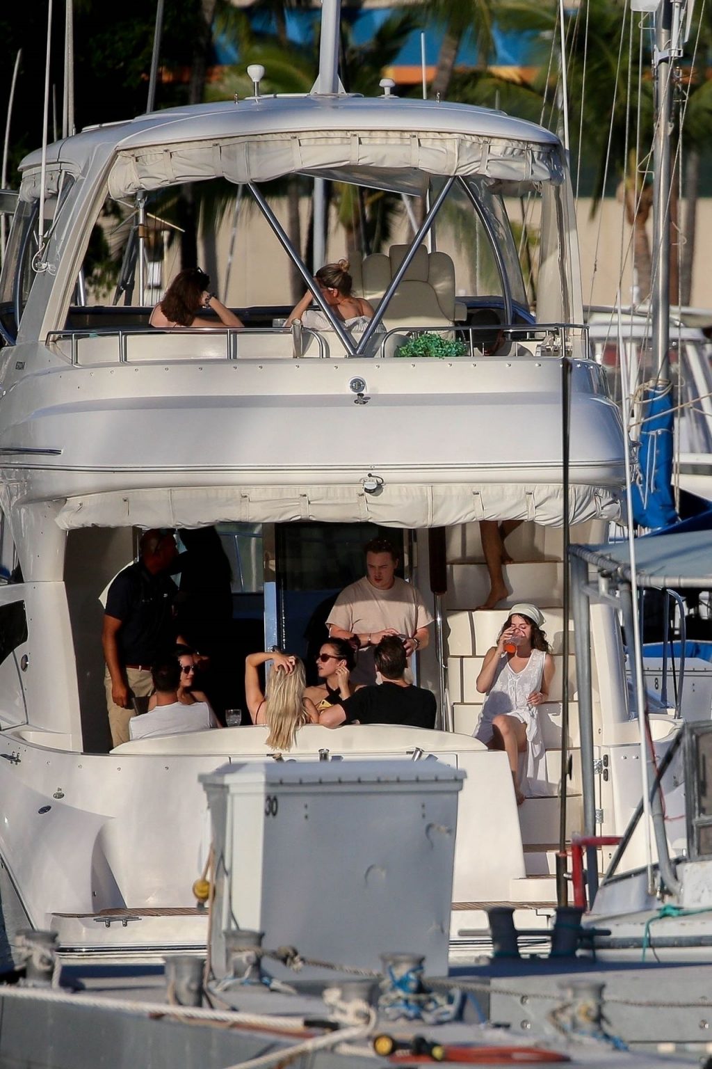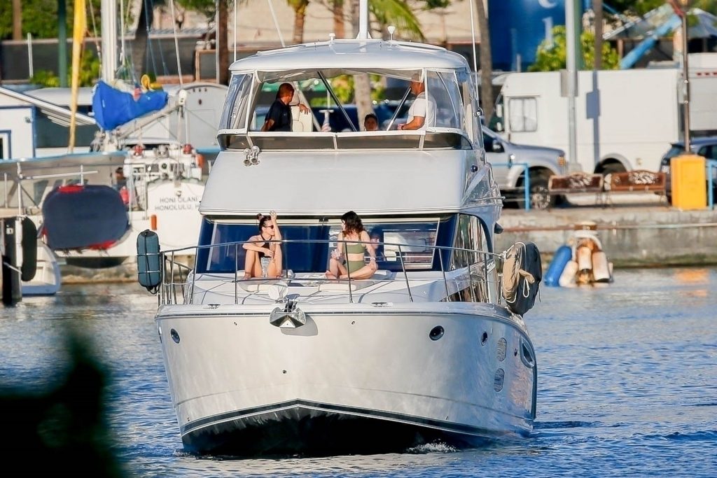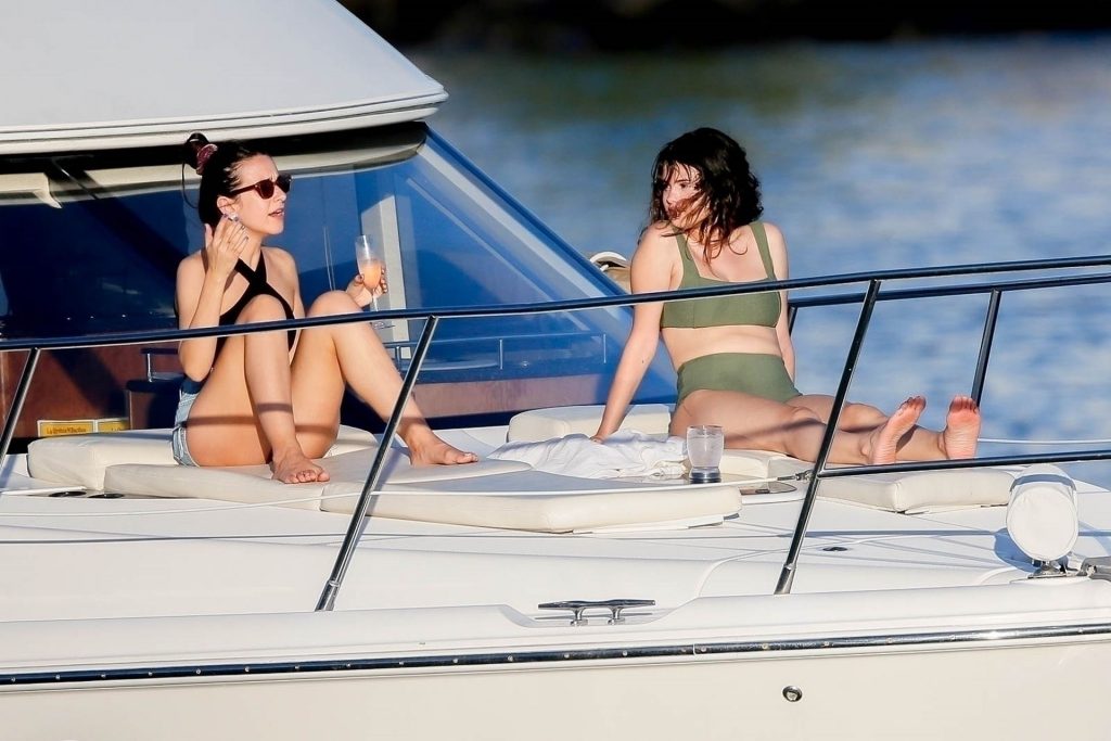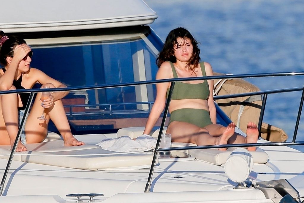 Selena Gomez éblouit en profitant du soleil en bikini vert à bord d’un yacht de luxe à Hawaï, 31/12/2019.