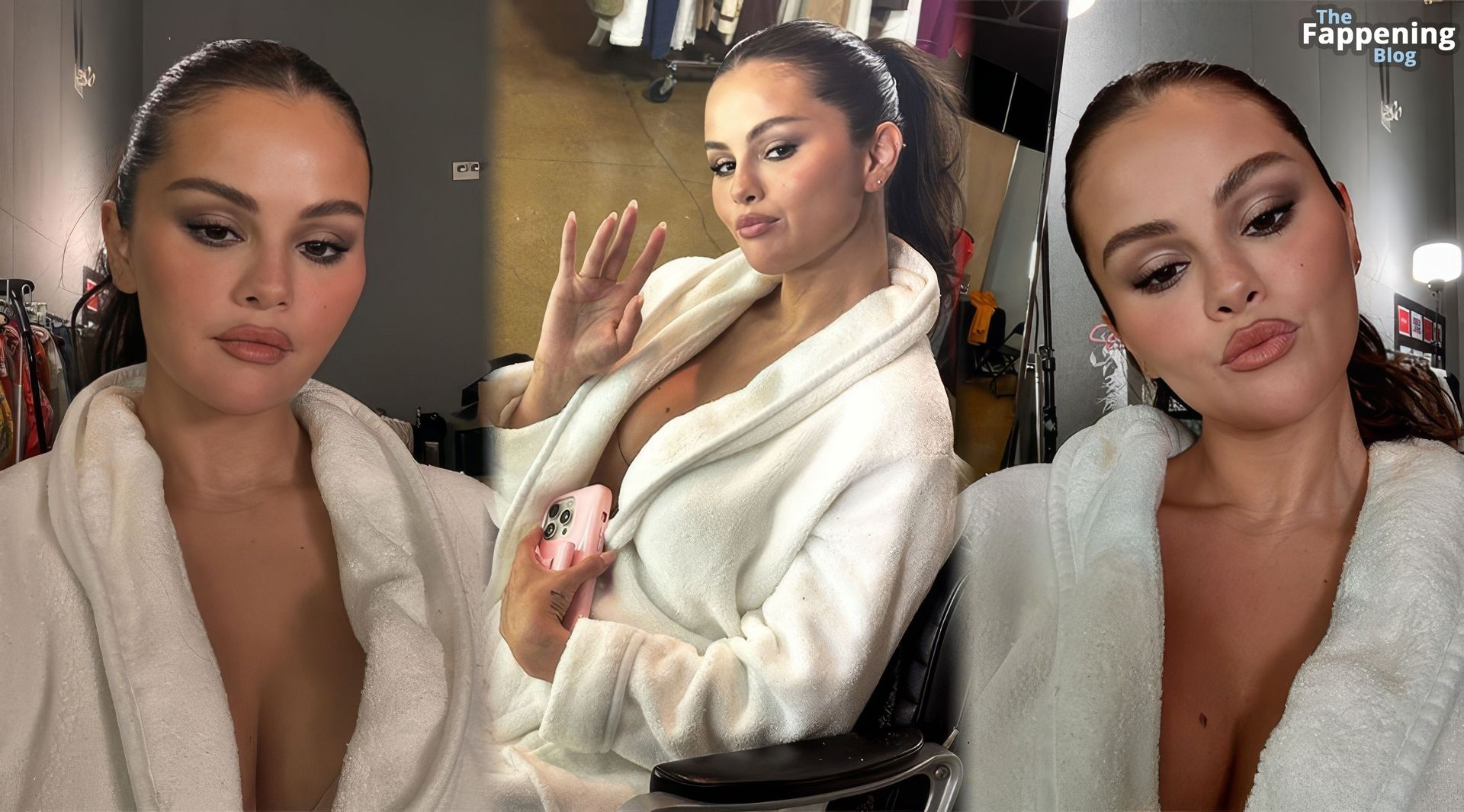 Selena Gomez est sexy sur quelques nouvelles photos, portant un peignoir blanc duveteux et nous offrant un petit quelque chose à voir.