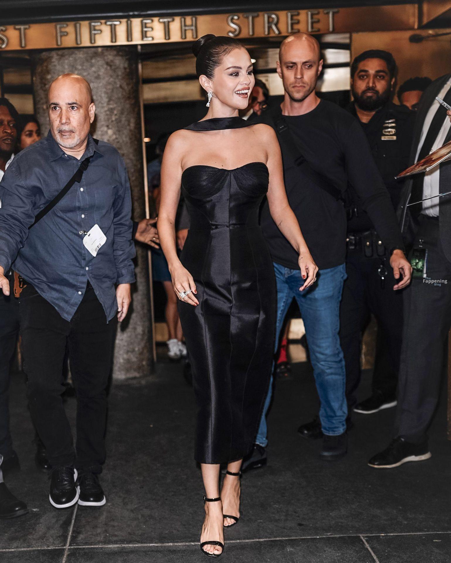 Selena Gomez montrait un décolleté impressionnant dans une robe bustier en satin noir. La superstar chanteuse et actrice a été prise d’assaut par ses fans après The Tonight Show Starring Jimmy Fallon à New York.