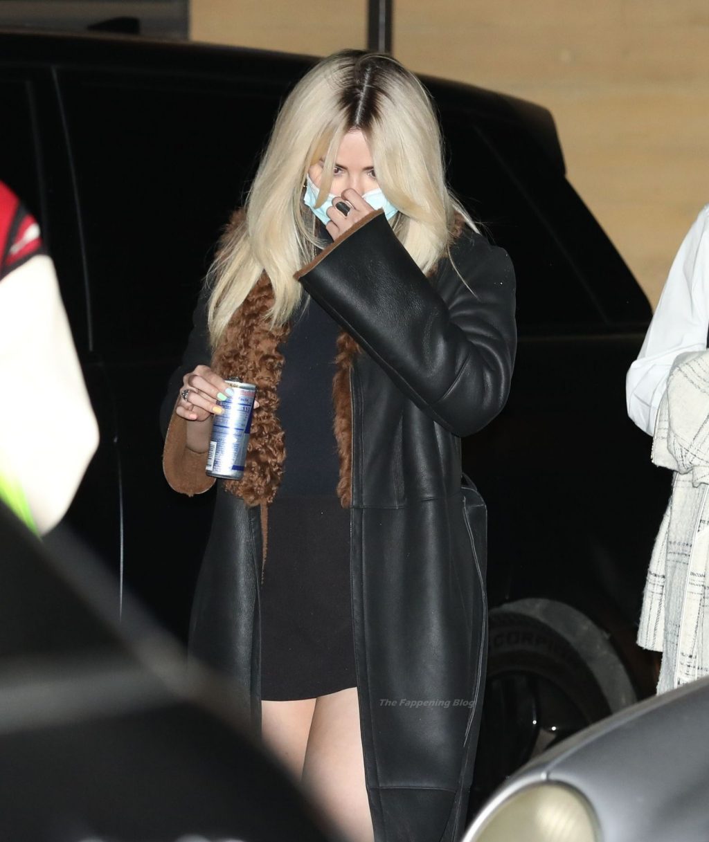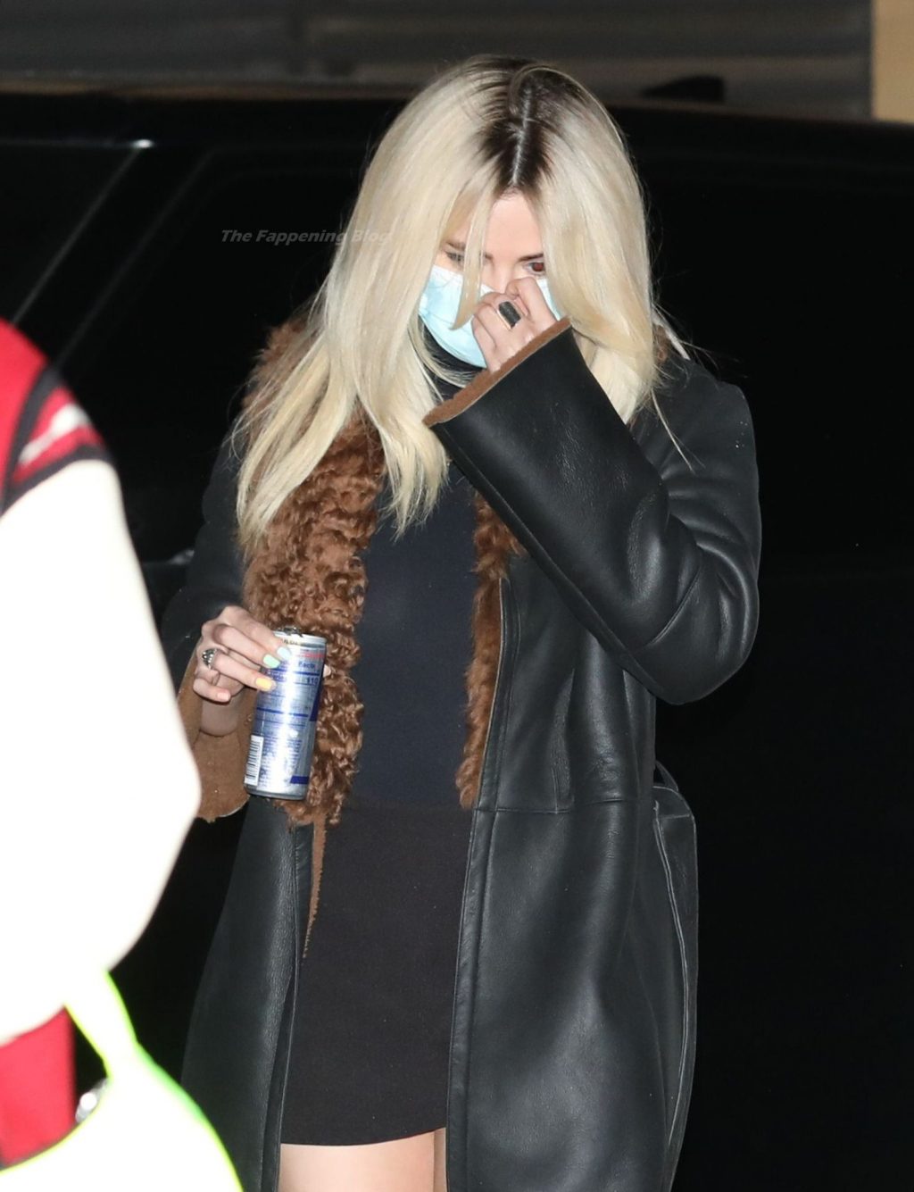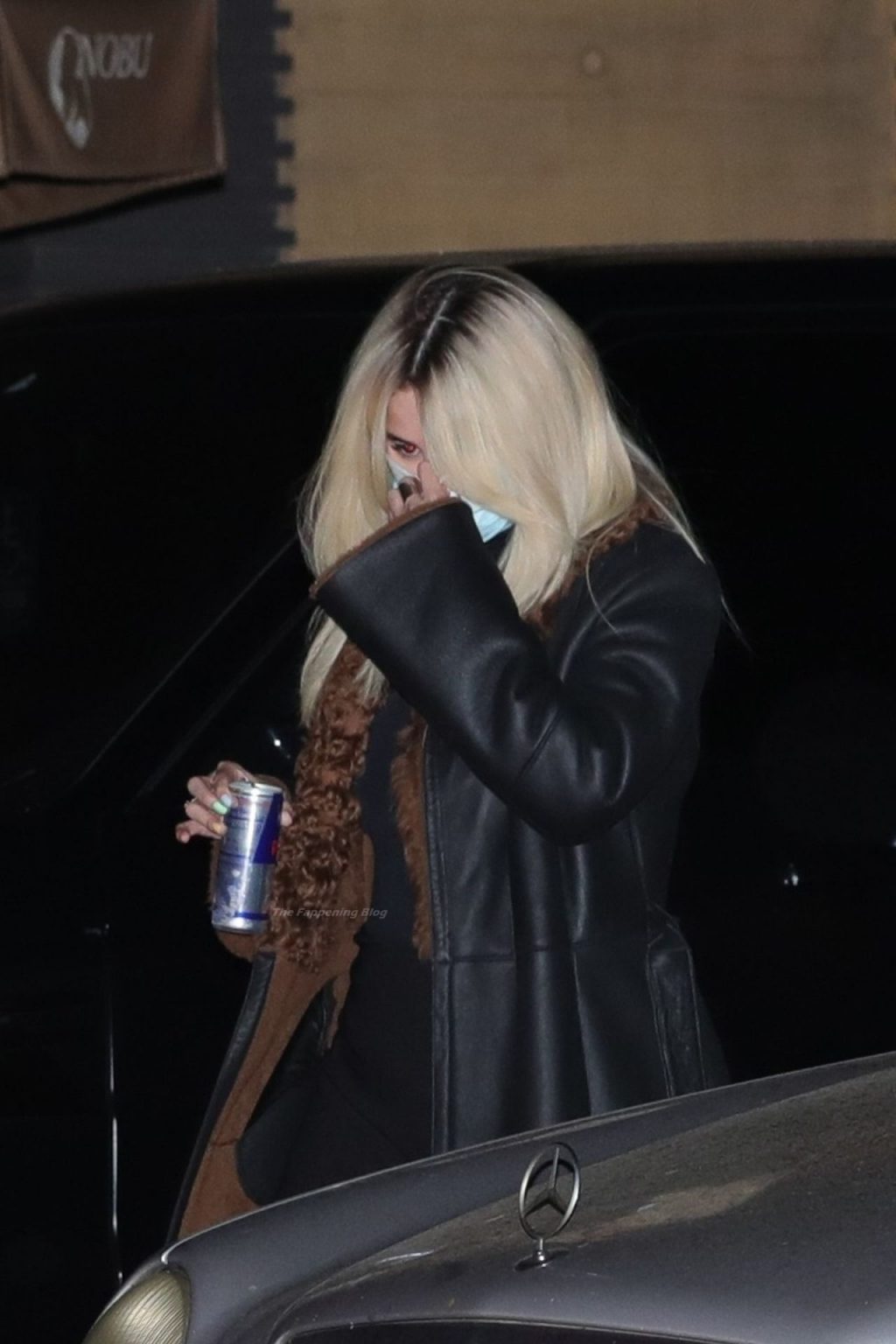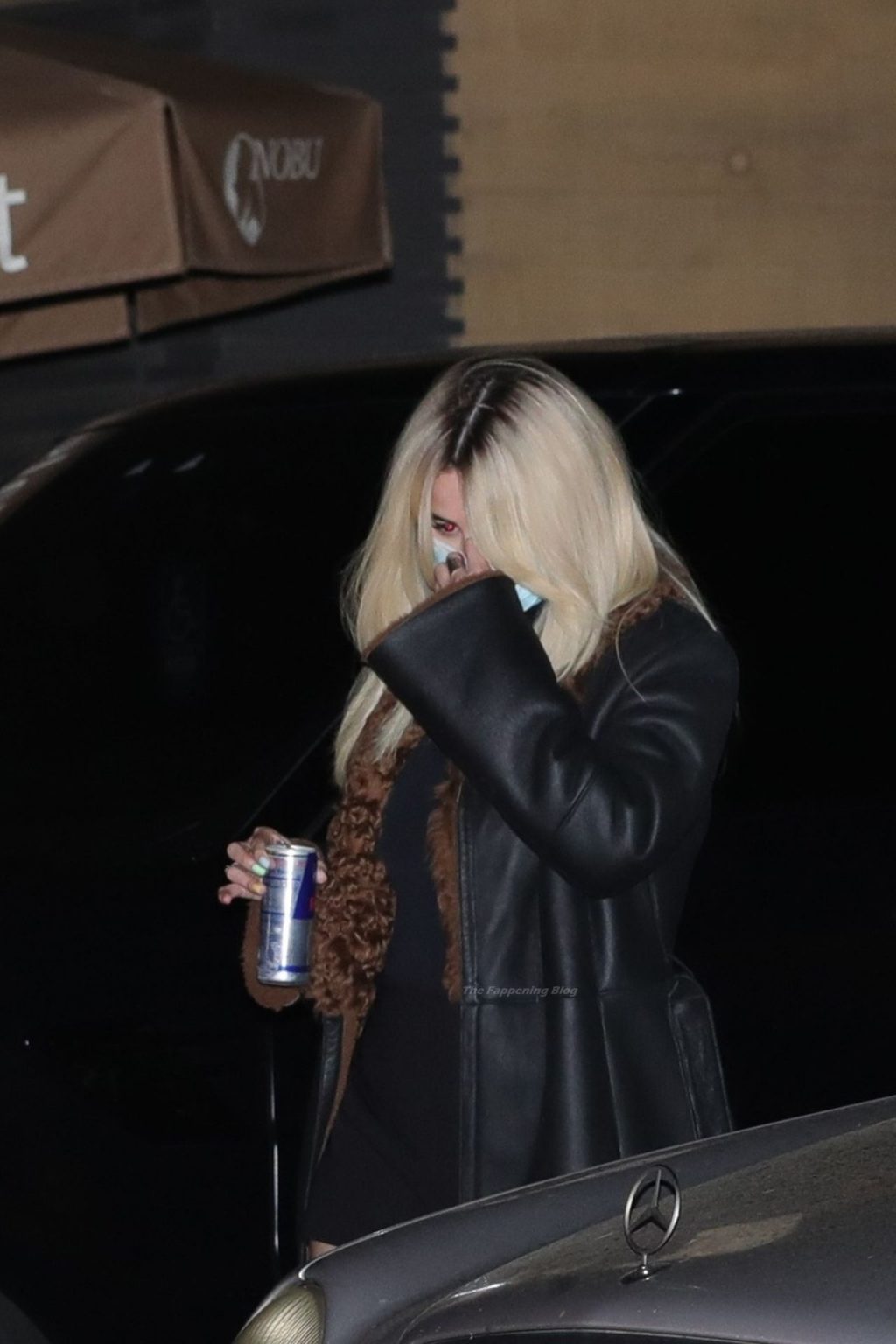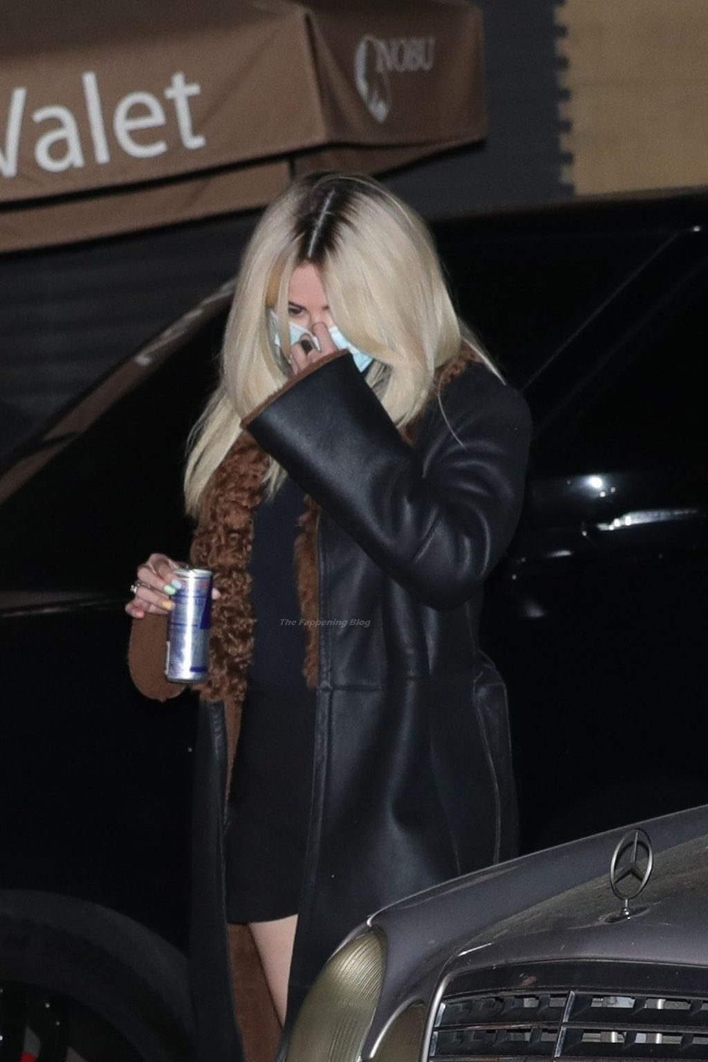 Portant une mini-robe semi-transparente, la jeune femme de 28 ans a fièrement exhibé ses jambes en se dirigeant vers son véhicule après son dîner.