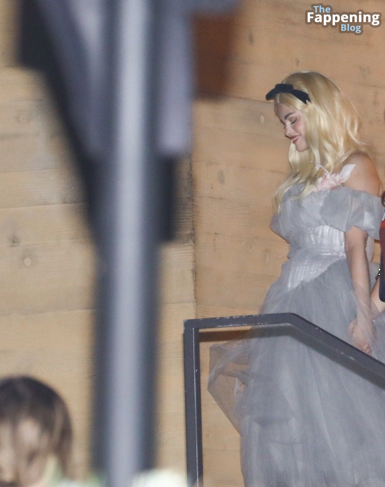 La star du Fappening, chanteuse et actrice, arborant une robe en tulle à volants superposés et une perruque blonde avec un ruban noir, a été aperçue quittant le dîner chez Nobu à Malibu avec sa sœur, absolument magnifique dans son costume.
