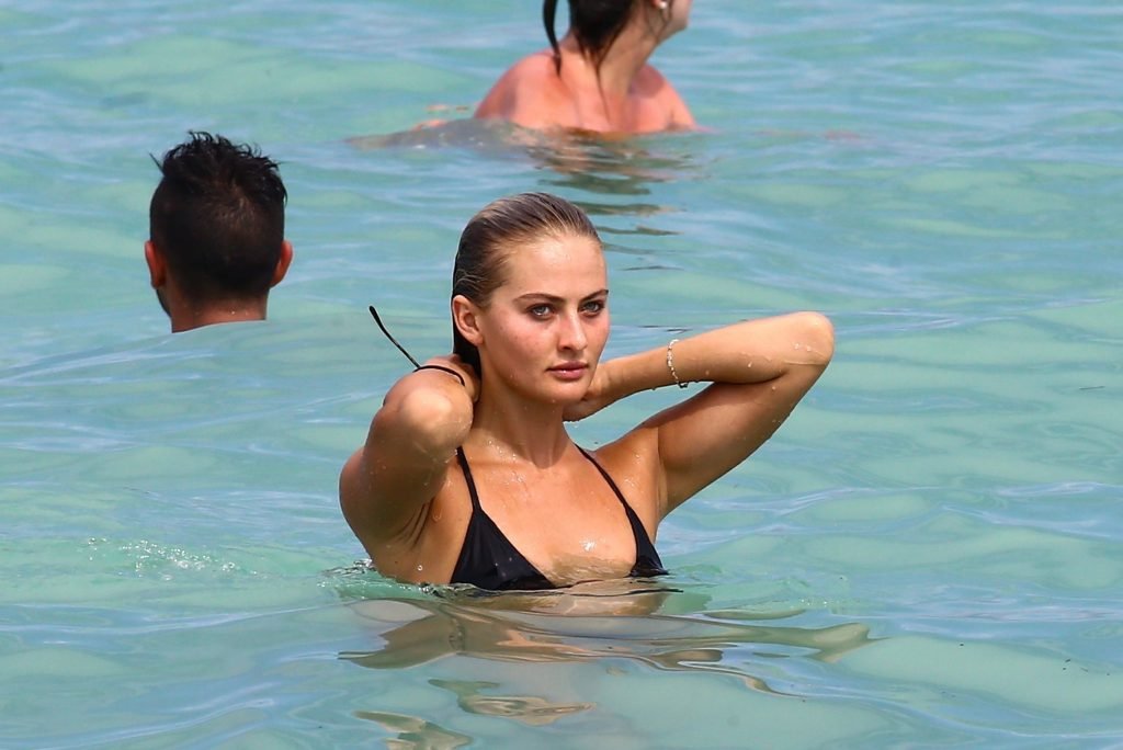 Le mannequin de 24 ans Selena Weber montre son corps parfait en bikini sur la plage de Miami, 08/02/2017.