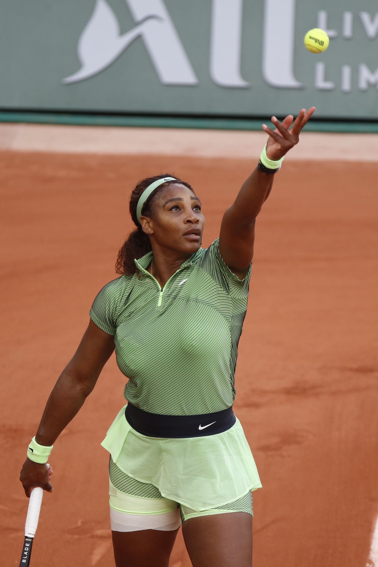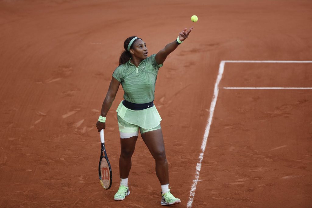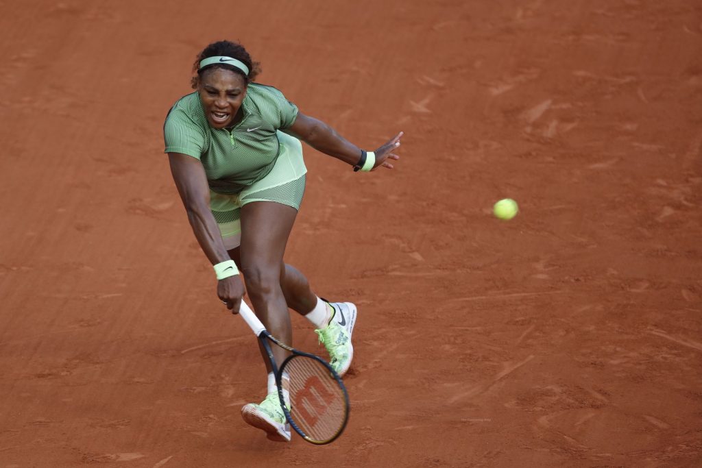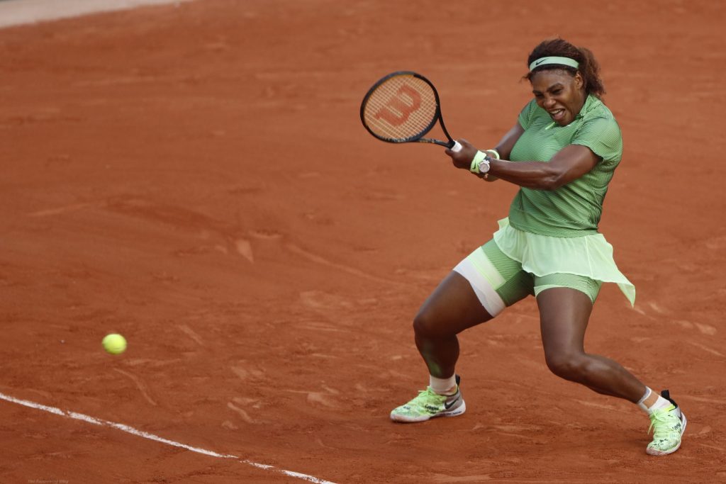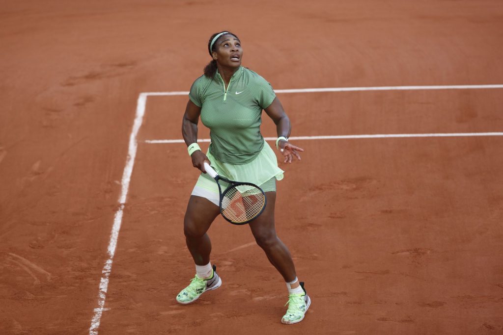 Serena Williams des États-Unis joue contre Mihaela Buzarnescu de Roumanie au deuxième tour du simple dames à Roland Garros à Paris, le 02/06/2021.
