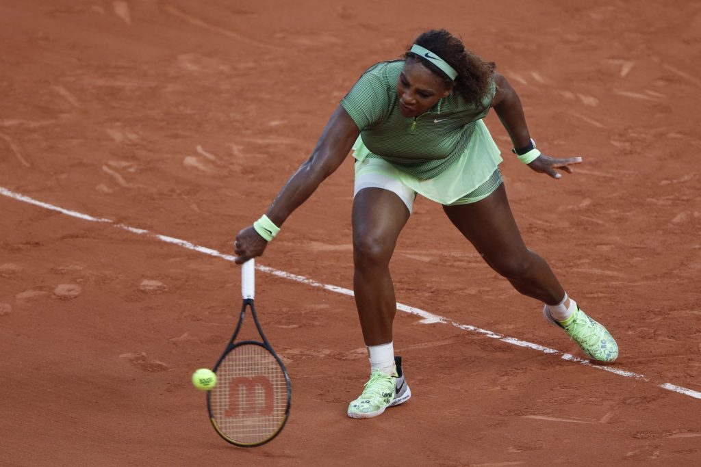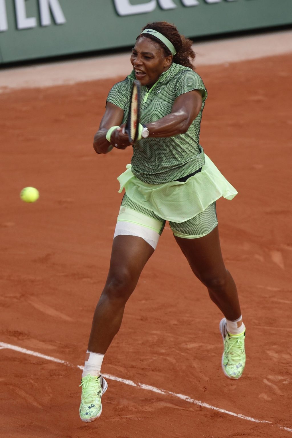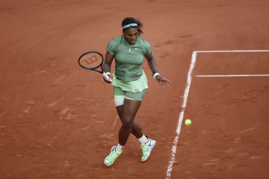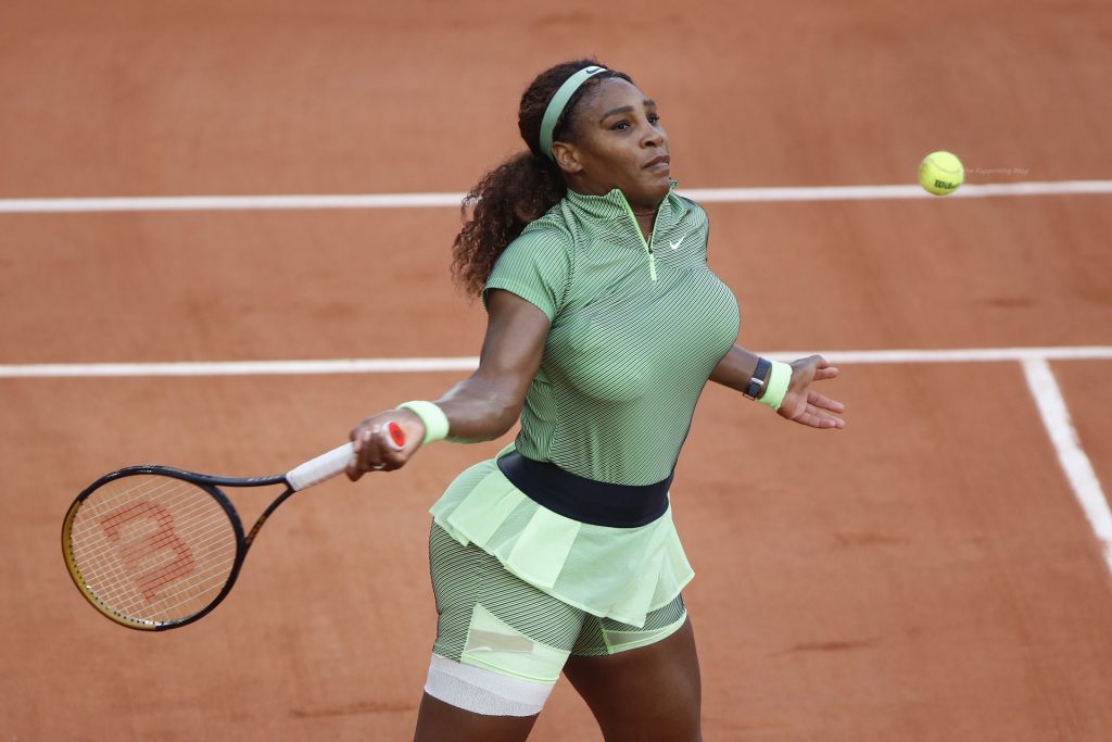 Serena Williams des États-Unis joue contre Mihaela Buzarnescu de Roumanie au deuxième tour du simple dames à Roland Garros à Paris, le 02/06/2021.