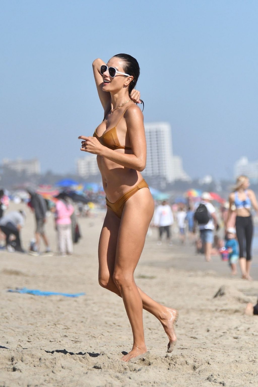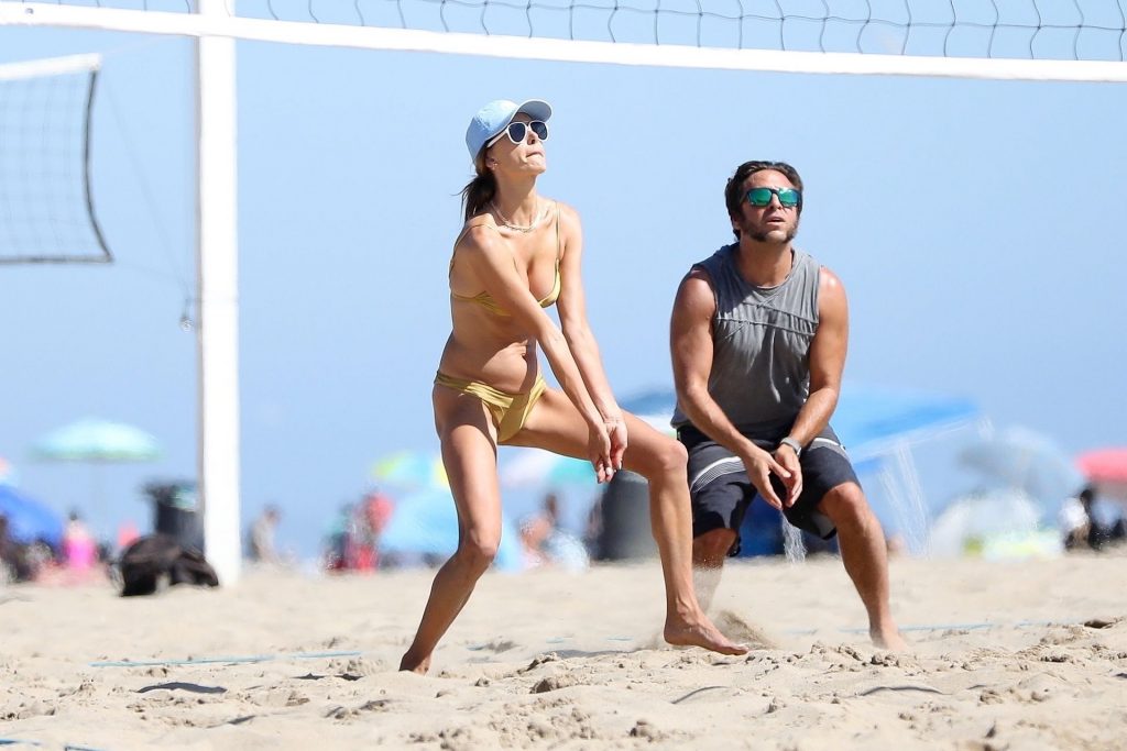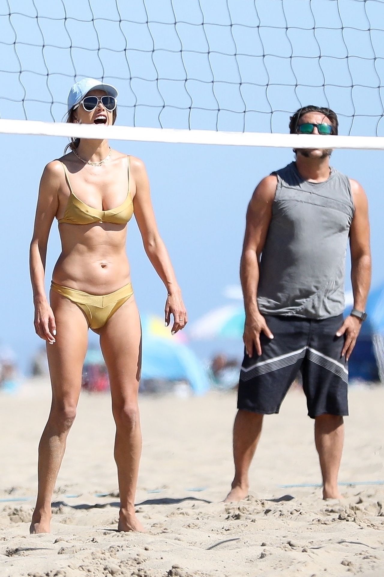 Alessandra Ambrosio montre sa silhouette mince dans un bikini doré en jouant au volley-ball sur la plage avec ses amis – Malibu, CA, 01/08/2020.