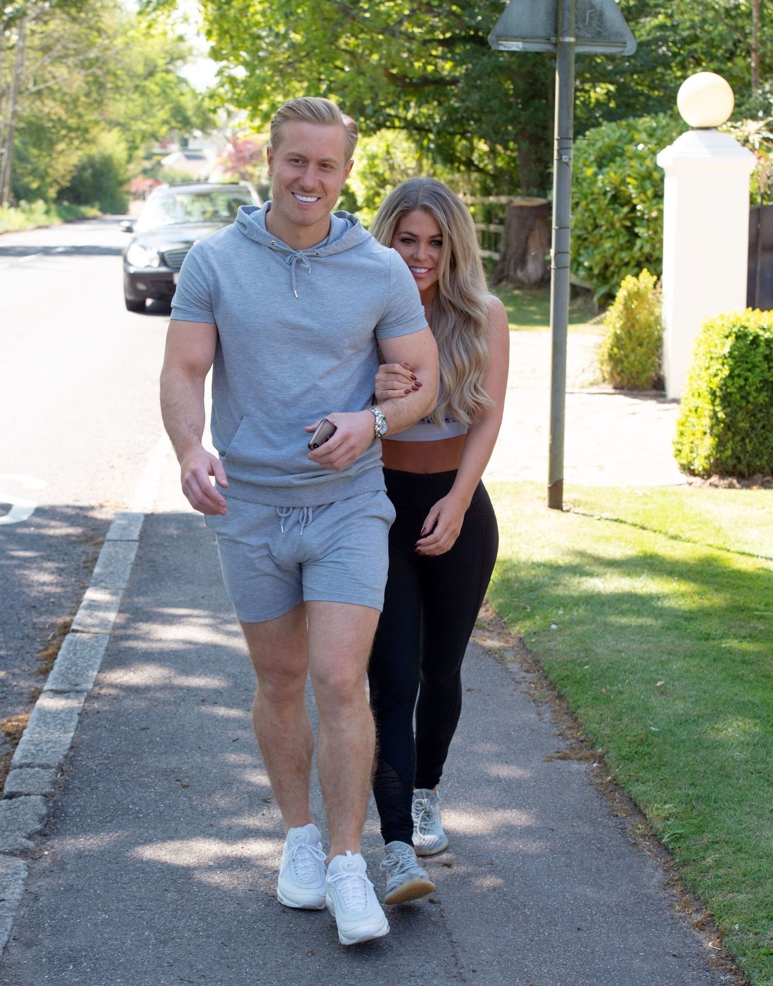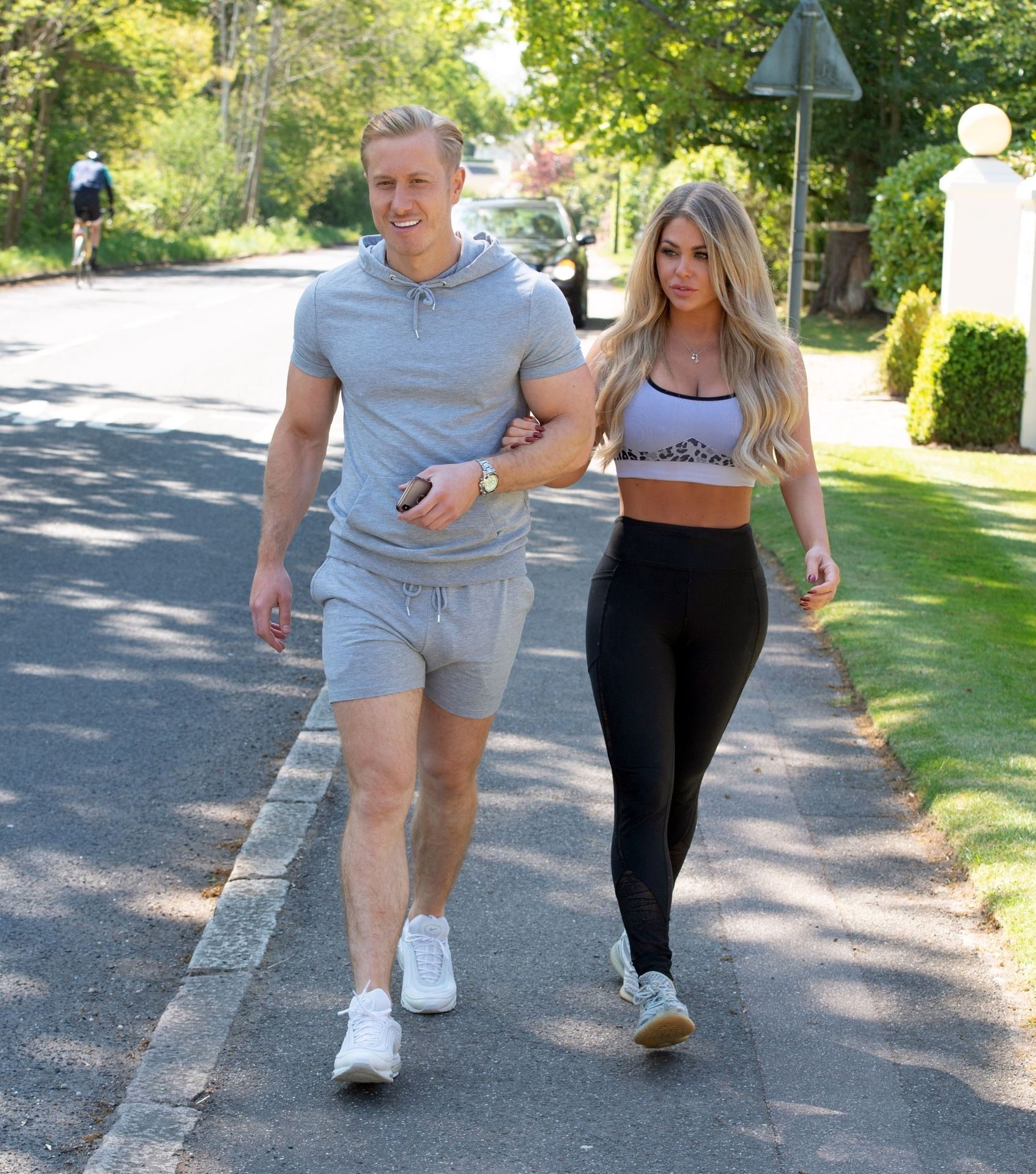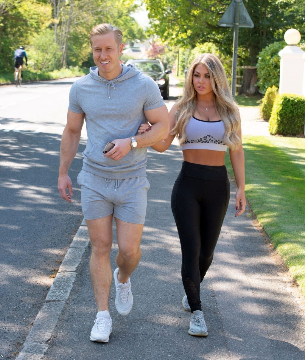 Le couple, qui est en isolement ensemble, est vu en train de se tenir la main. Bianca met en valeur sa taille fine avec un petit crop top tandis que Kris porte un short et un haut.