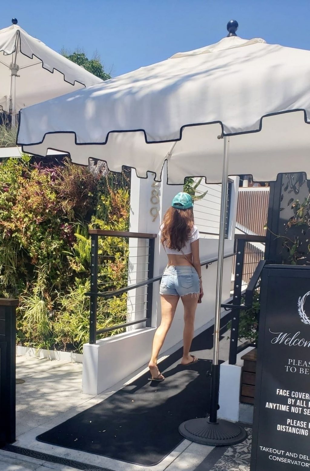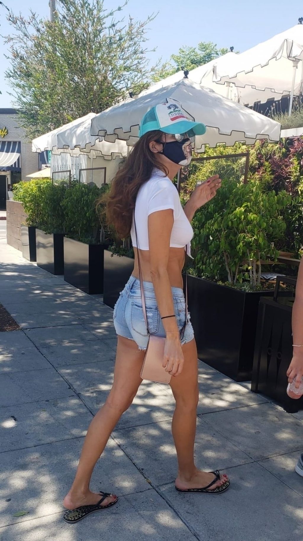 L’actrice Blanca Blanco profite d’un brunch à Malibu en portant des Daisy Dukes mettant en valeur ses jambes, 30/07/2020.