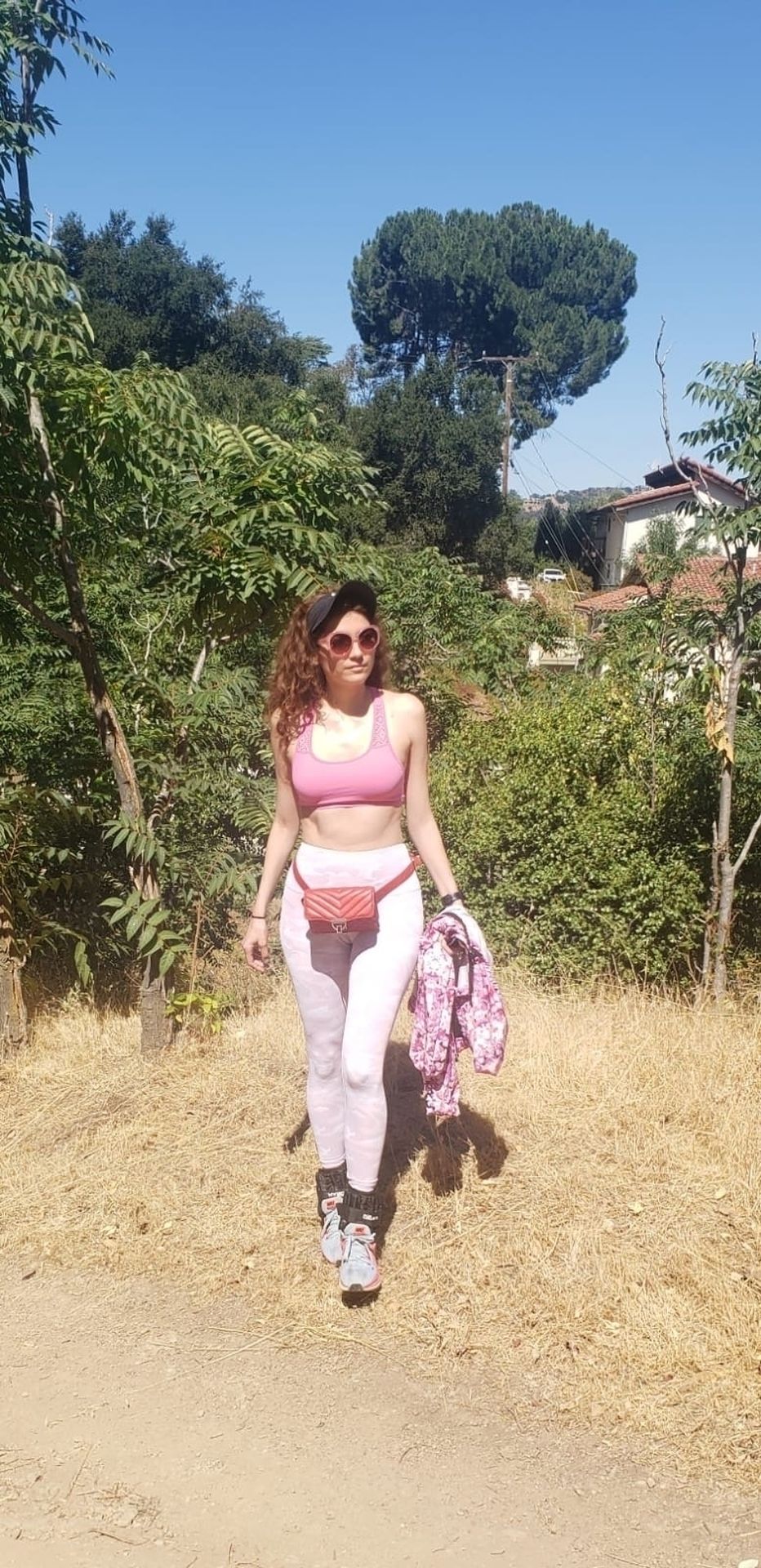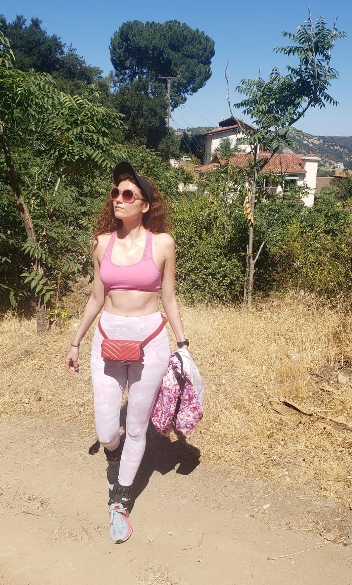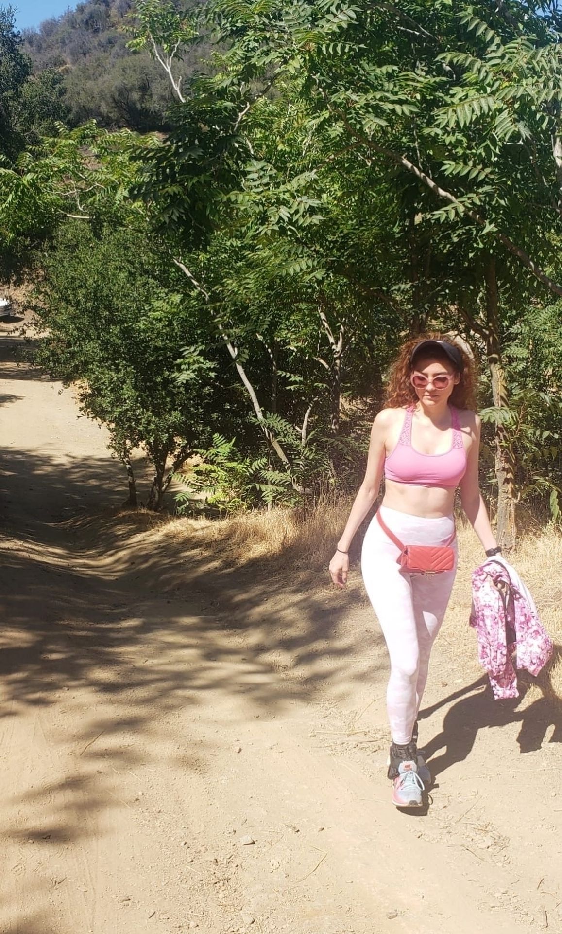 Actrice Blanca Blanco fait de la randonnée à Malibu, 17/07/2020. L’actrice montre son corps en forme en portant une tenue de sport rose.