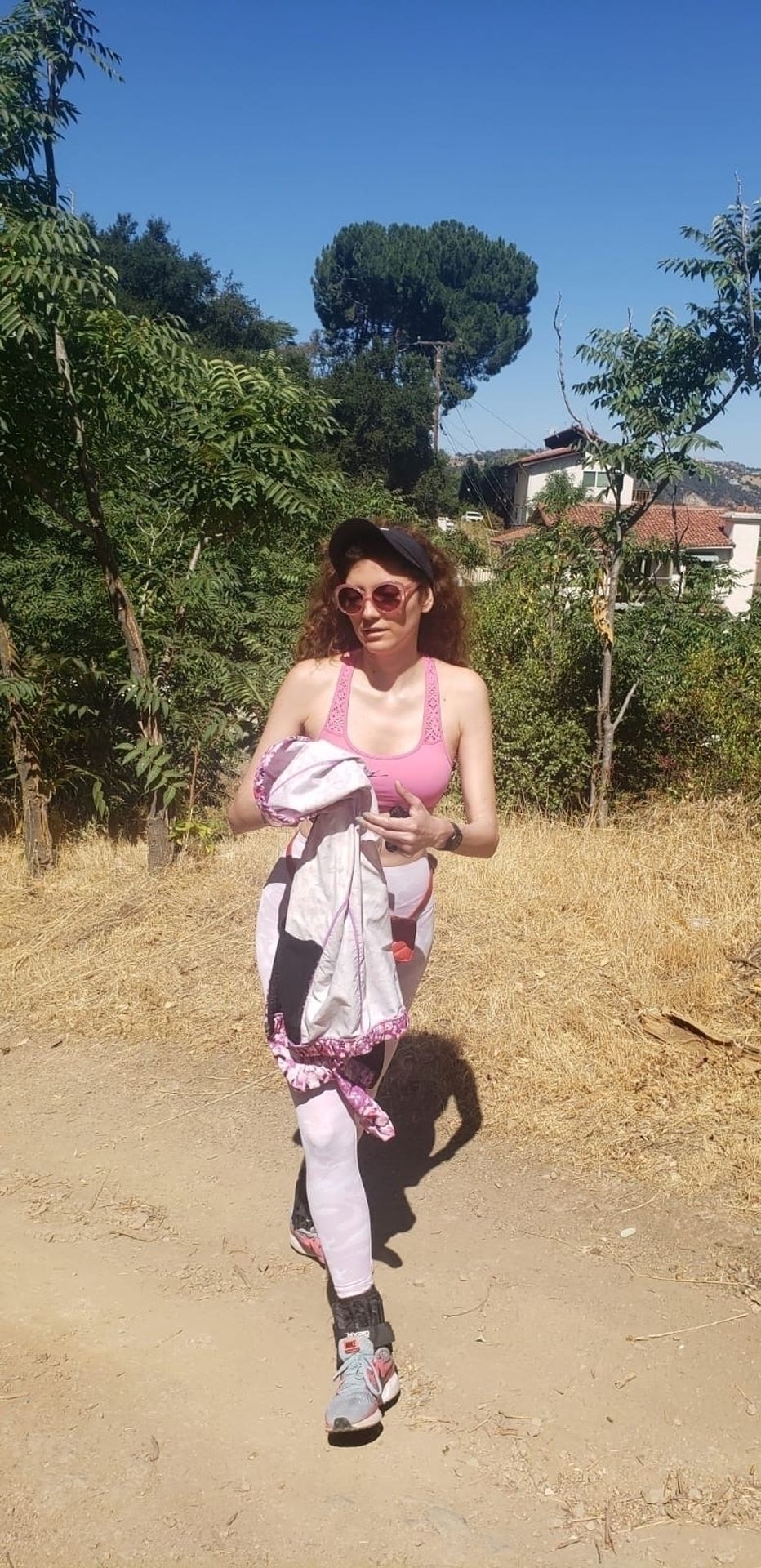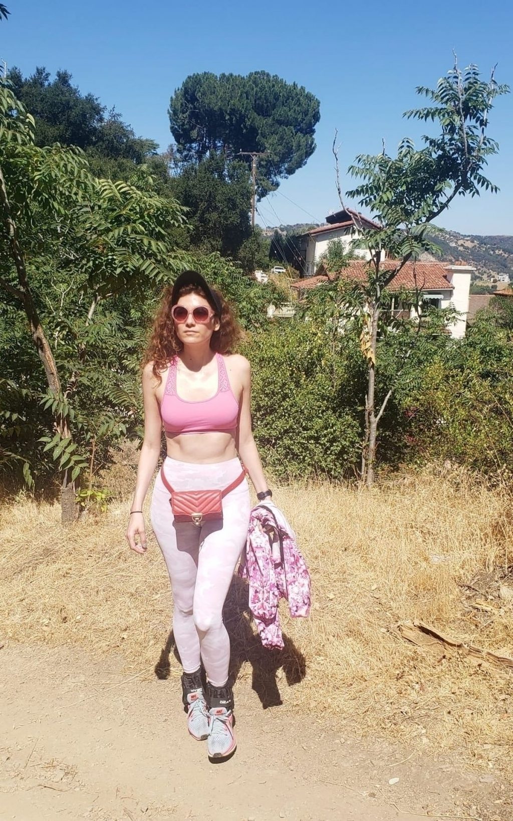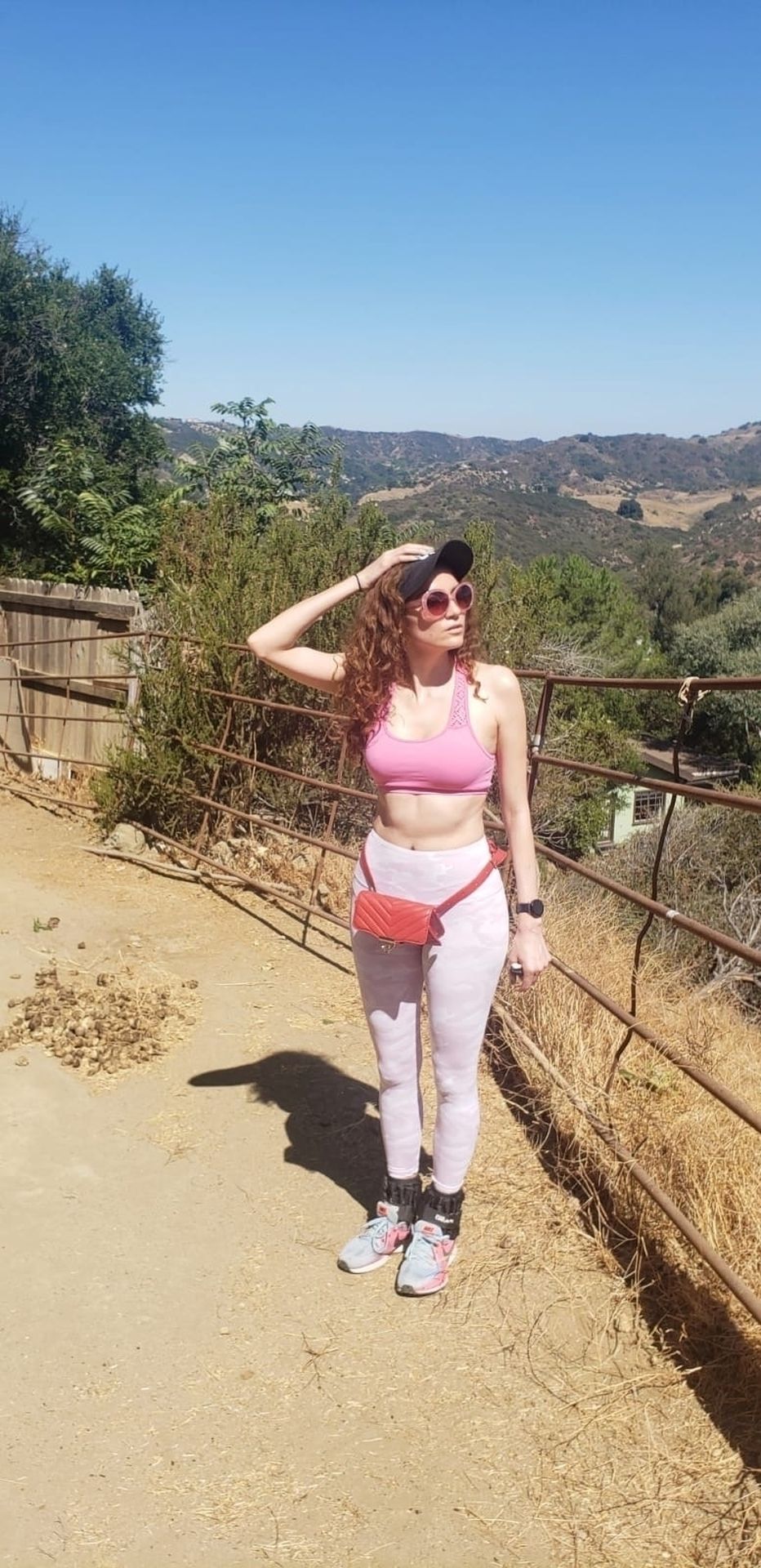 Actrice Blanca Blanco fait de la randonnée à Malibu, 17/07/2020. L’actrice montre son corps en forme en portant une tenue de sport rose.