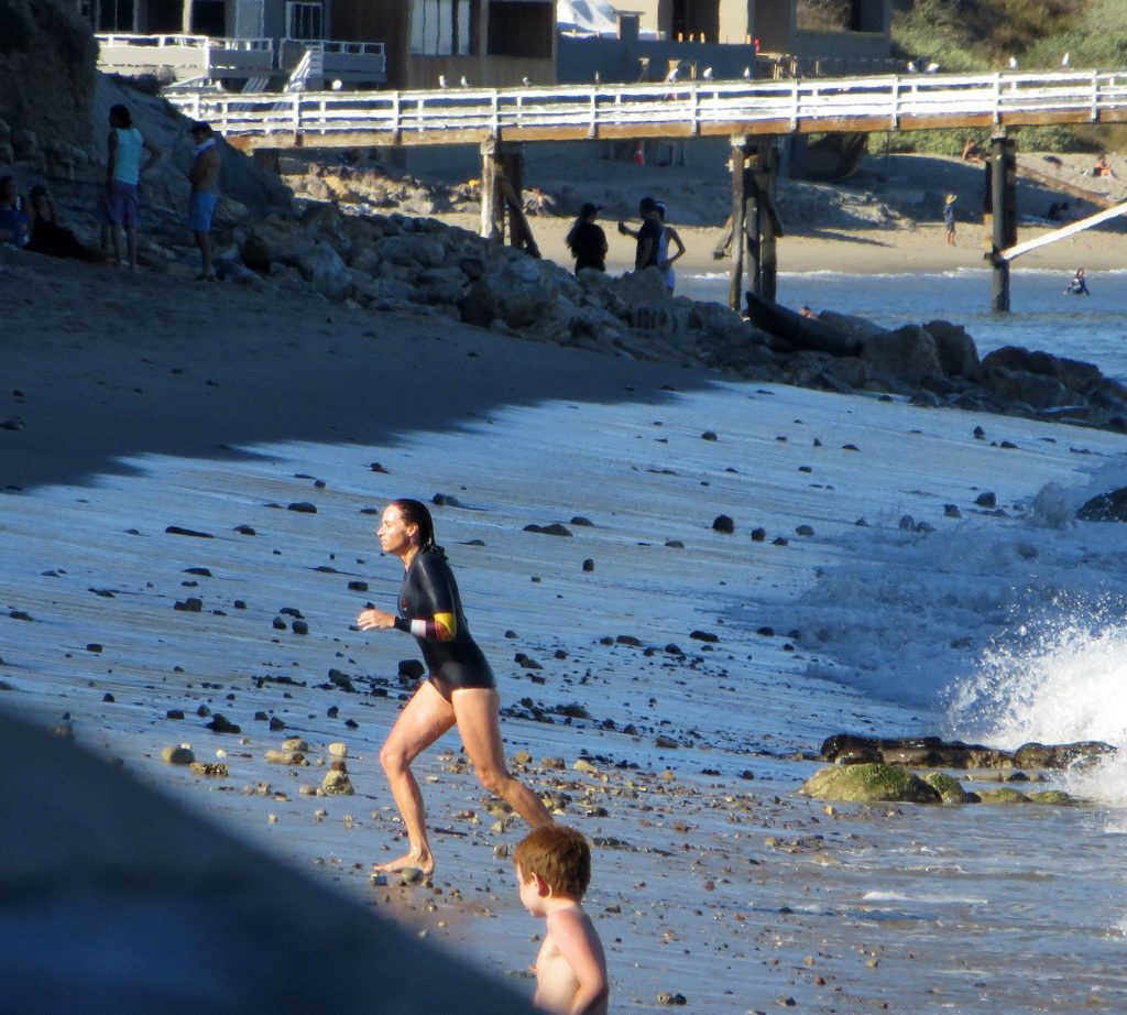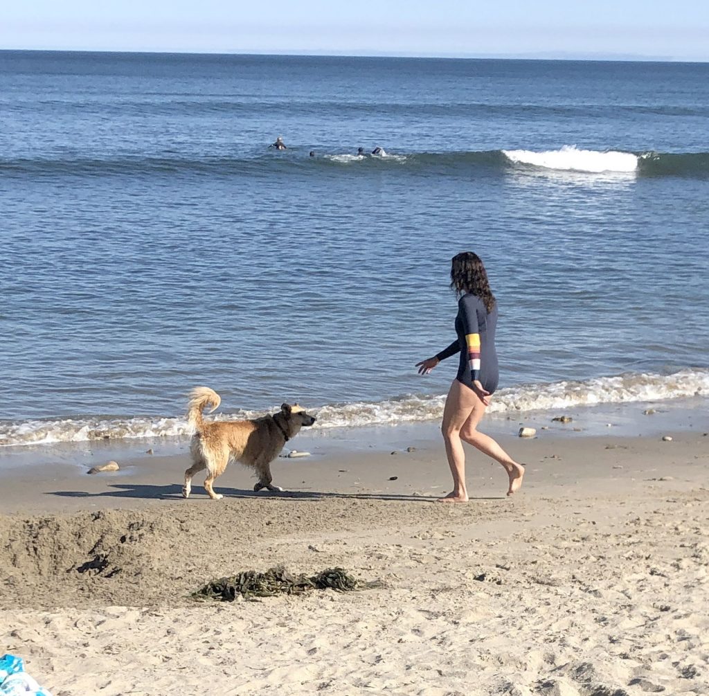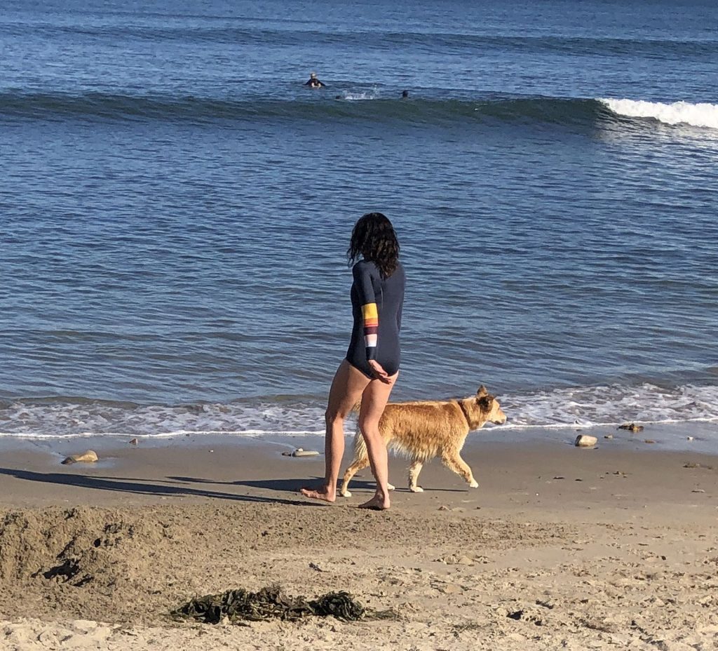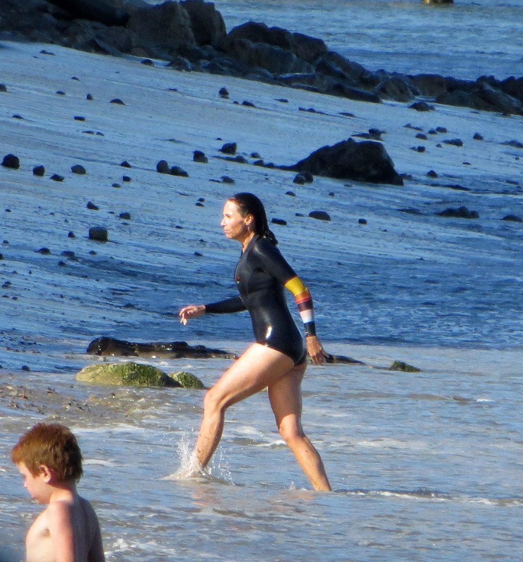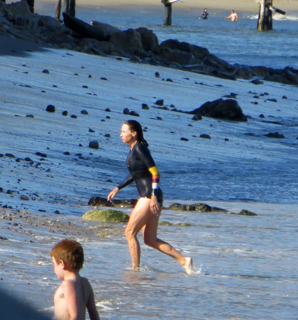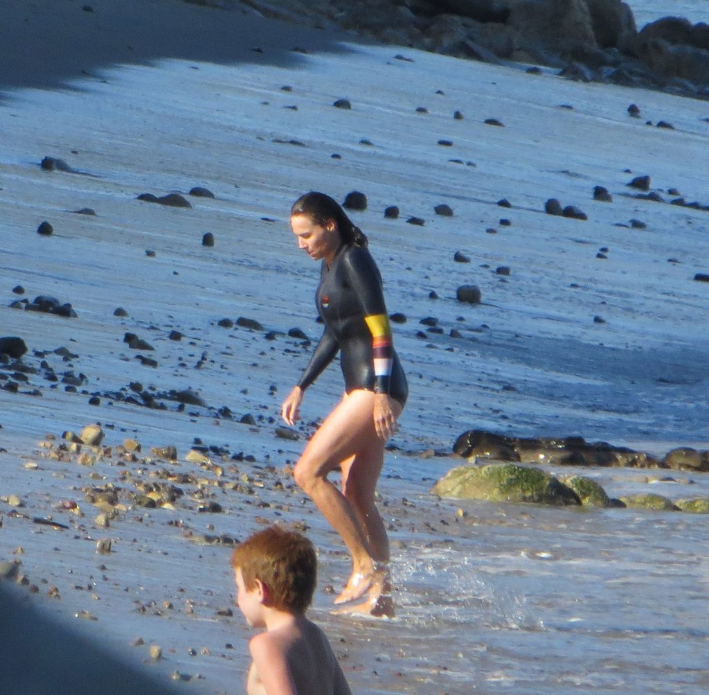 Actrice Minnie Driver (50 ans) est vue en train de nager au milieu de l’océan portant une combinaison de plongée coupée au niveau des jambes à Malibu, Californie, 10/06/2020.