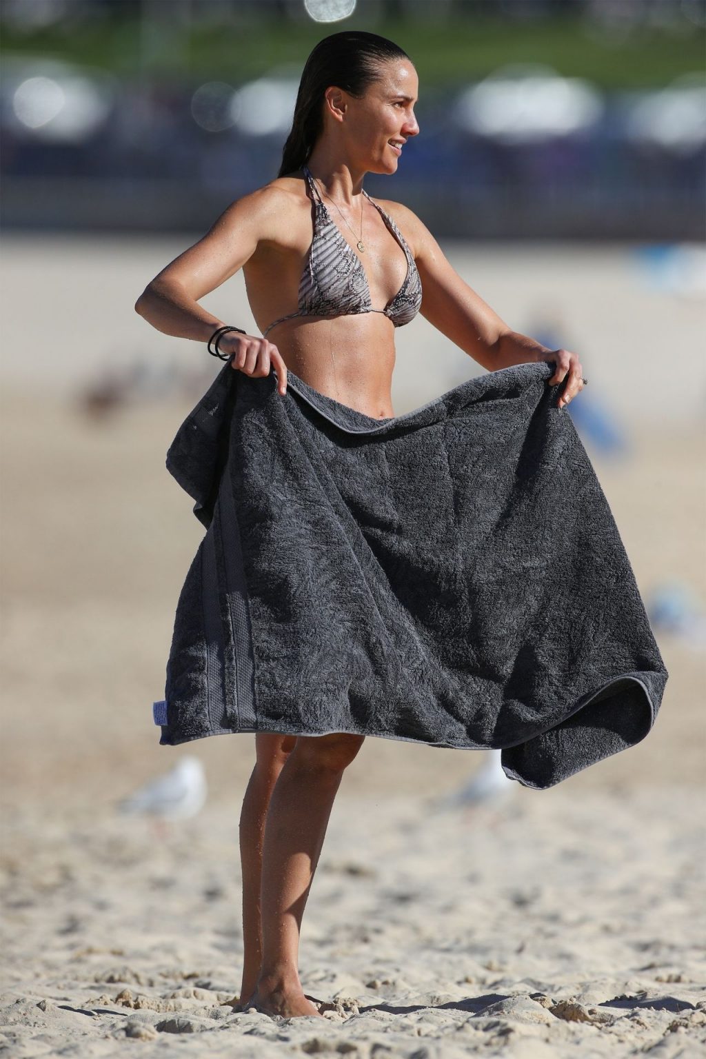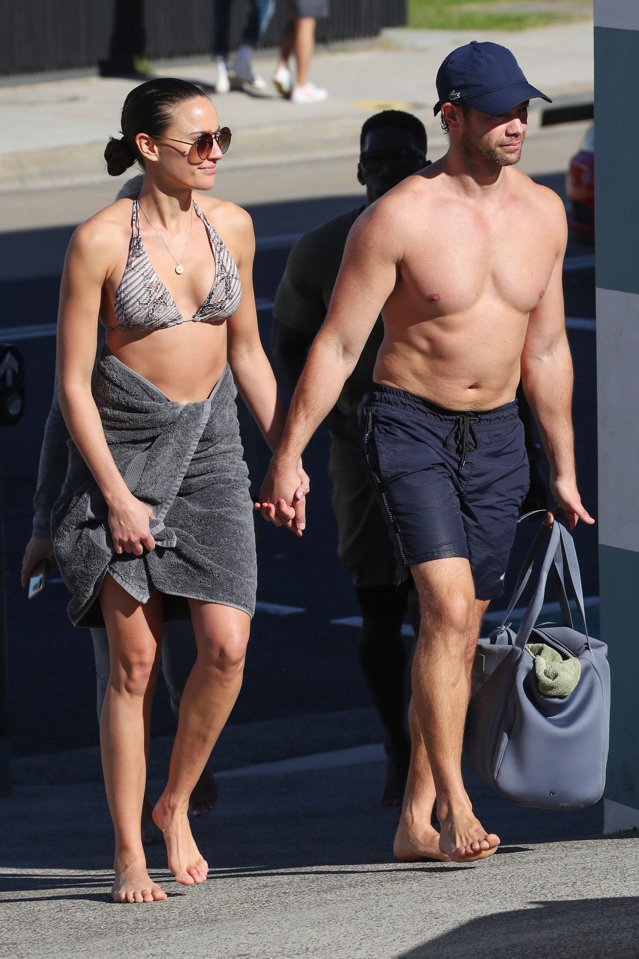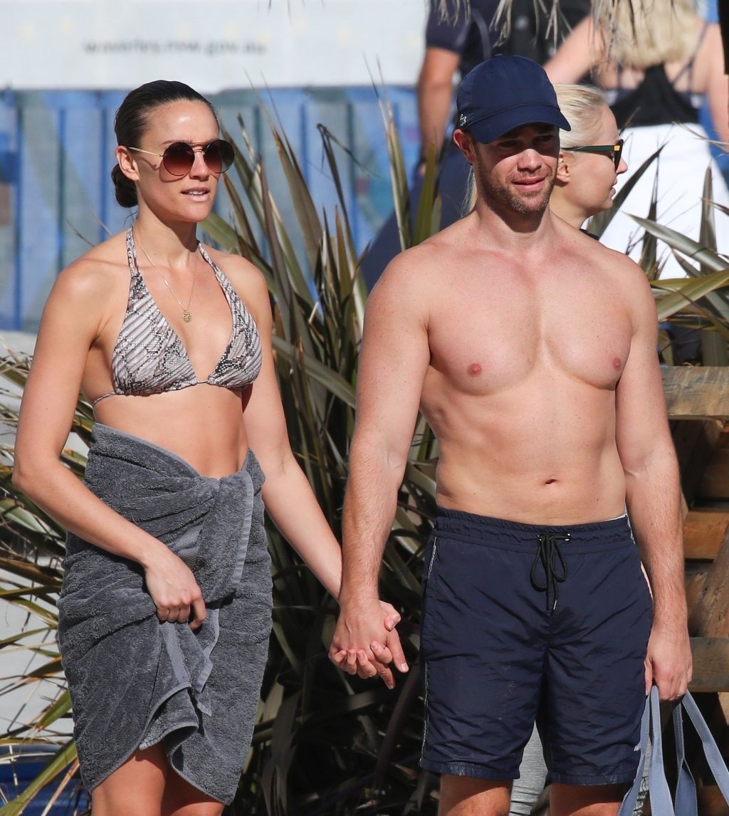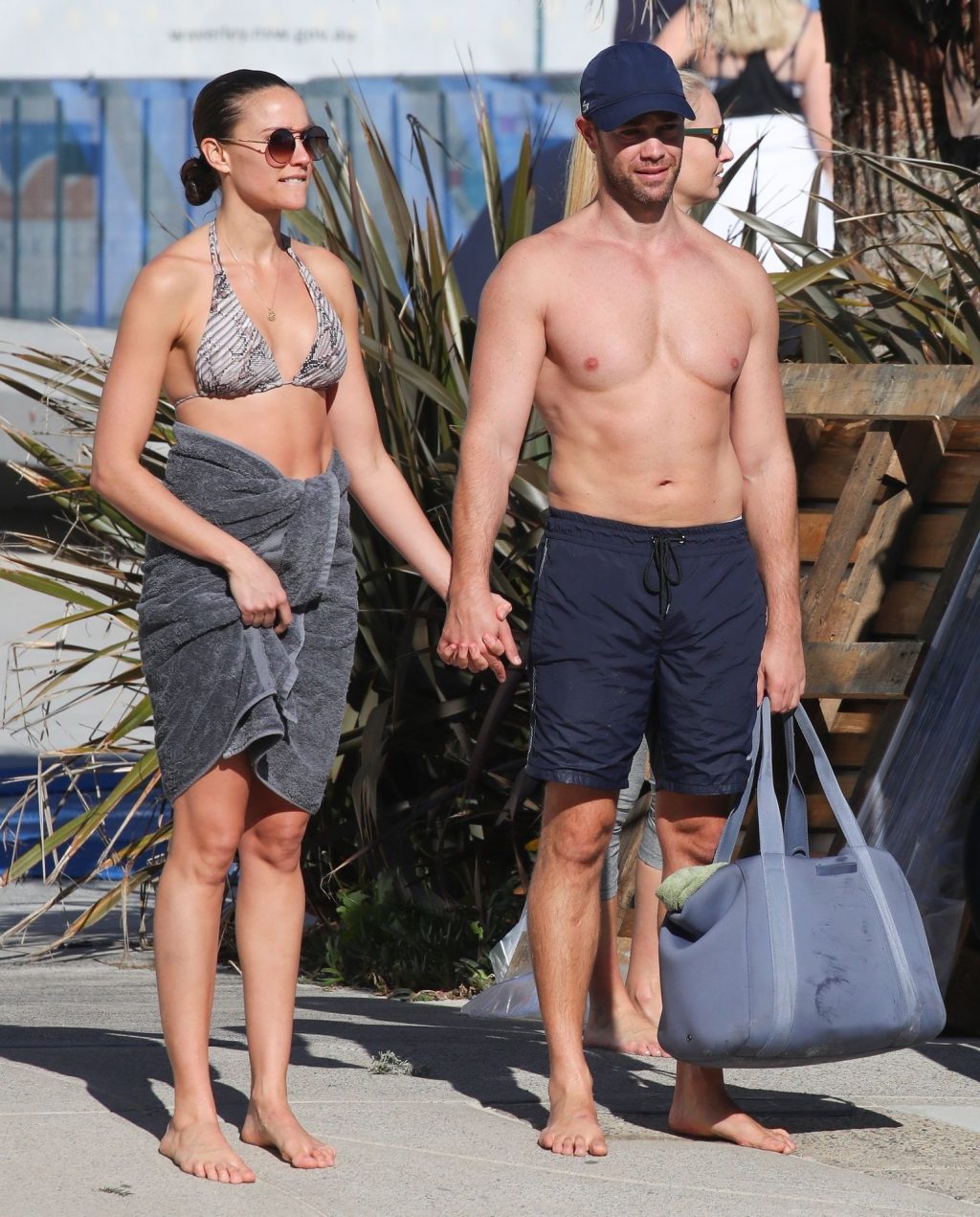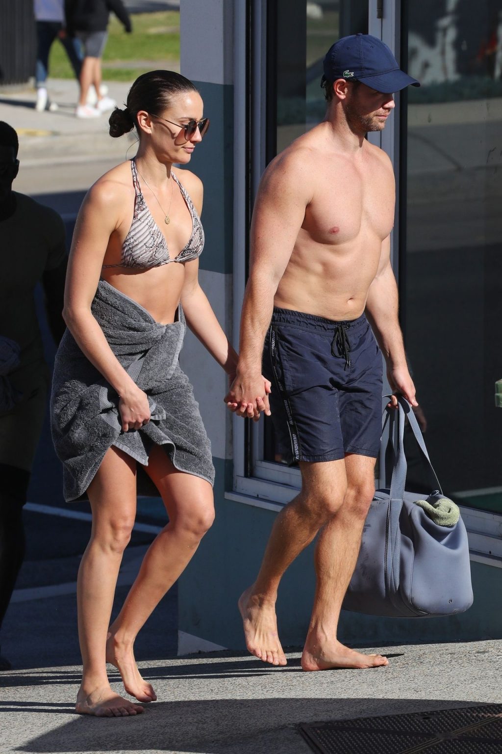 Le mannequin Rachael Finch est photographiée sur la plage de Bondi avec son mari Michael Minizer, 16/06/2020.