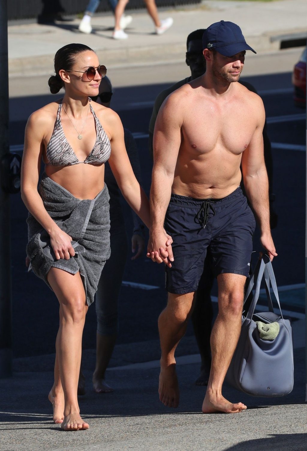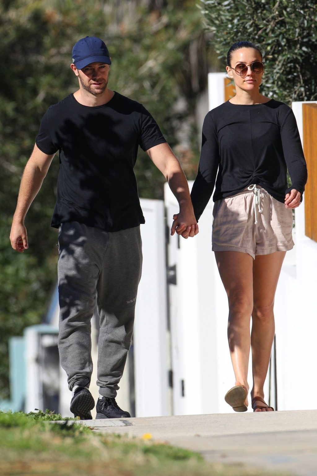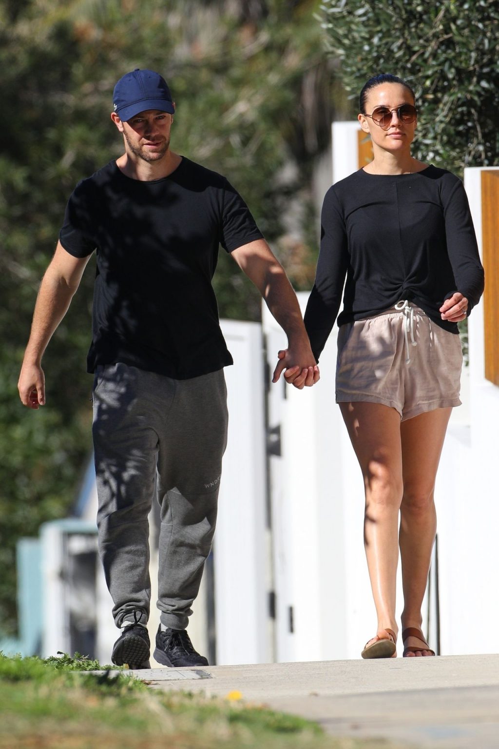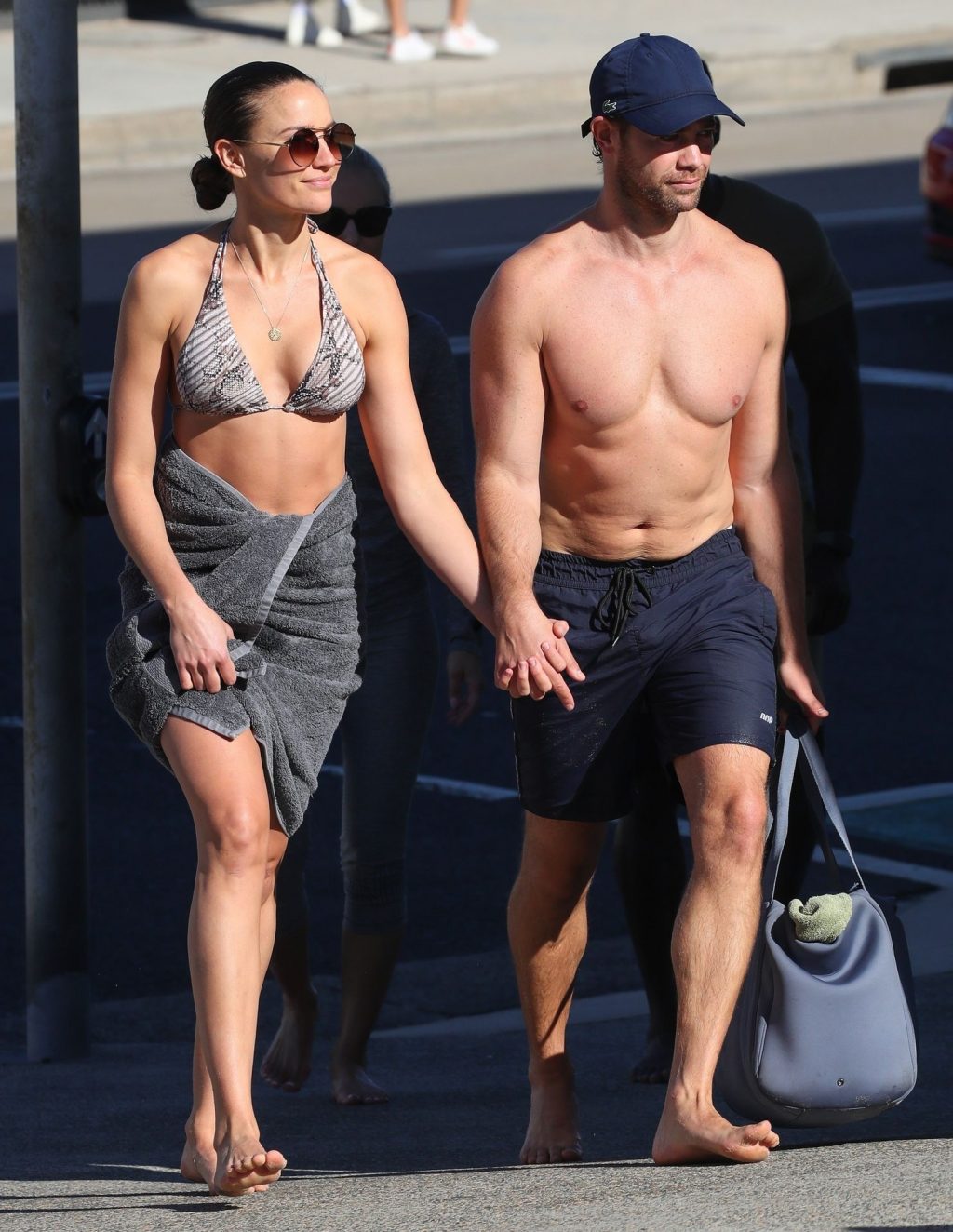 Le mannequin Rachael Finch est photographiée sur la plage de Bondi avec son mari Michael Minizer, 16/06/2020.