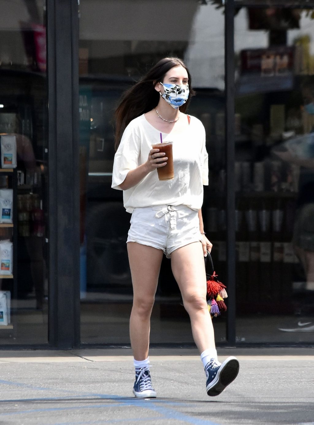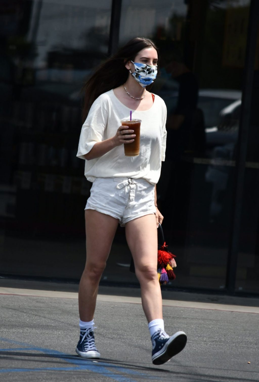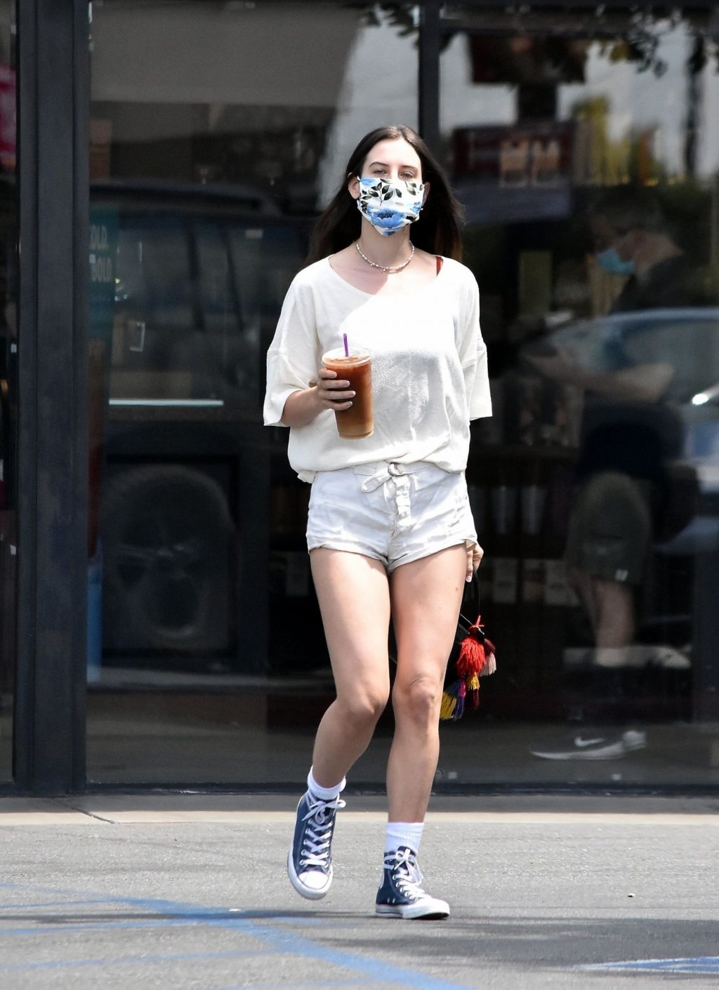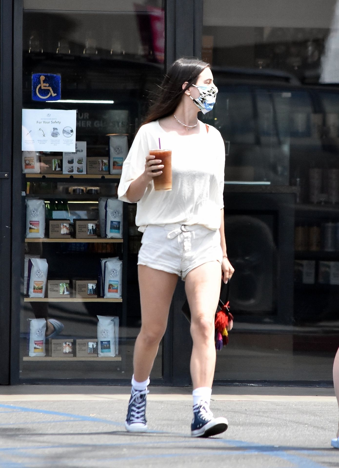 Leggy Scout Willis est vue en train de faire une pause dans son Coffee Bean & Tee local pour prendre un café glacé à Los Feliz, le 12/06/2020. Scout portait un joli masque à imprimé floral pendant sa course au café.