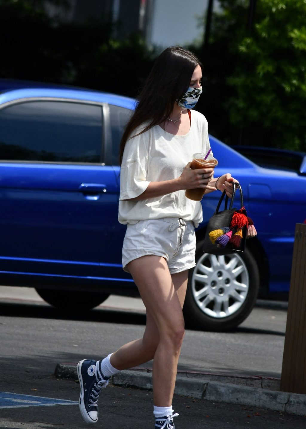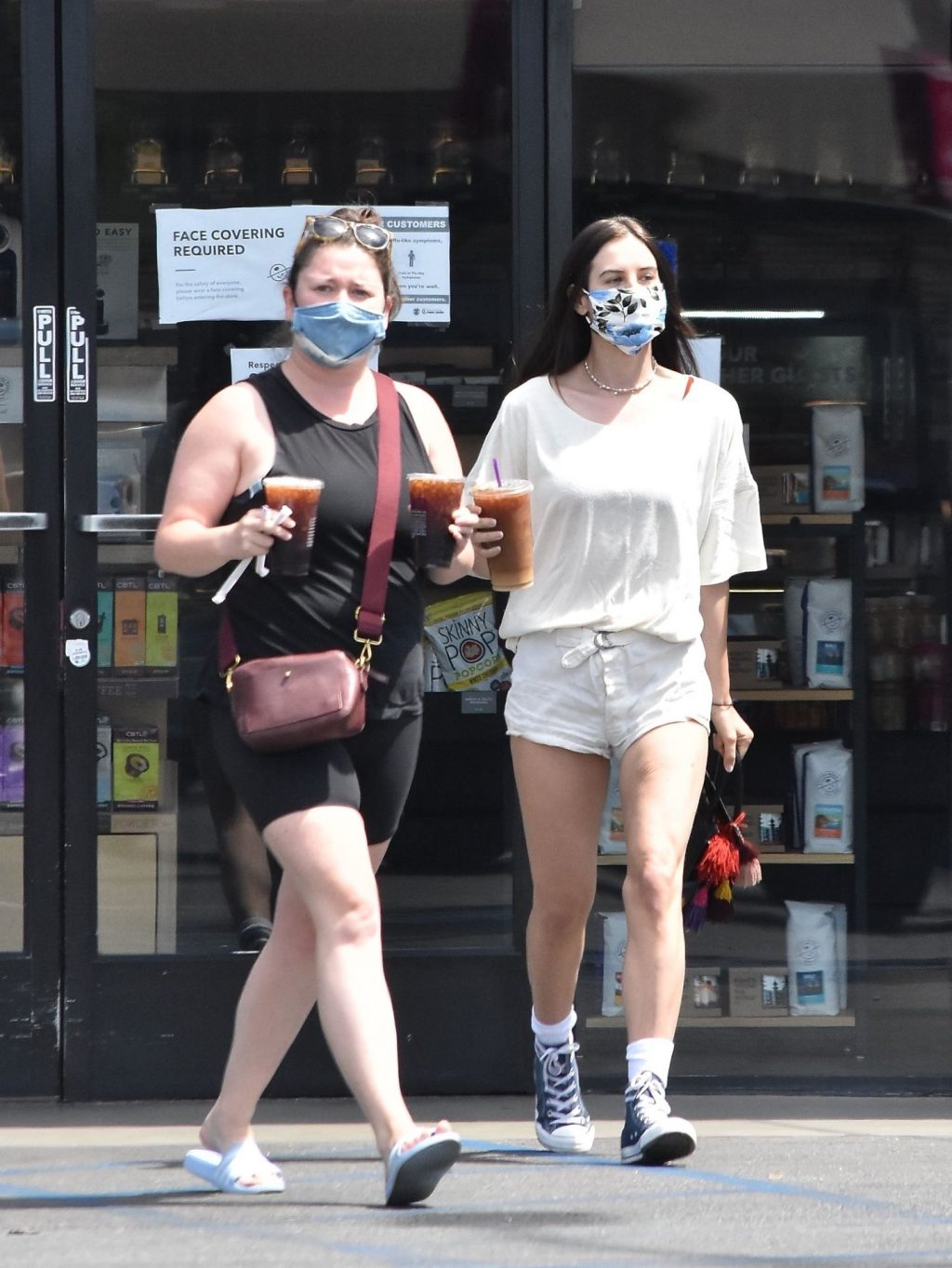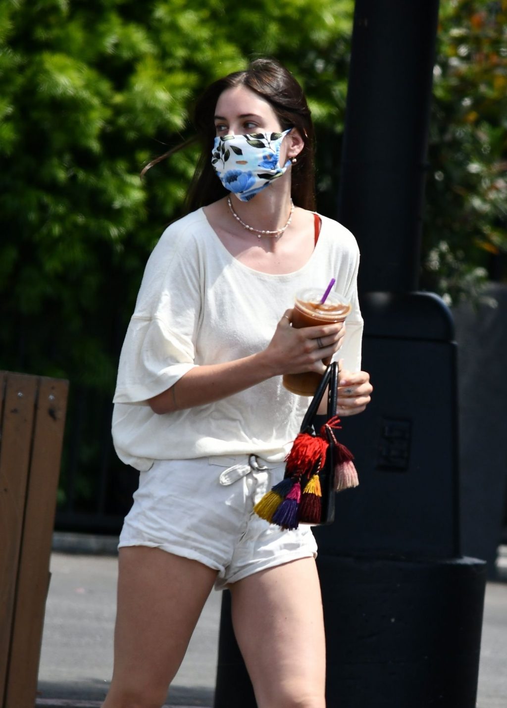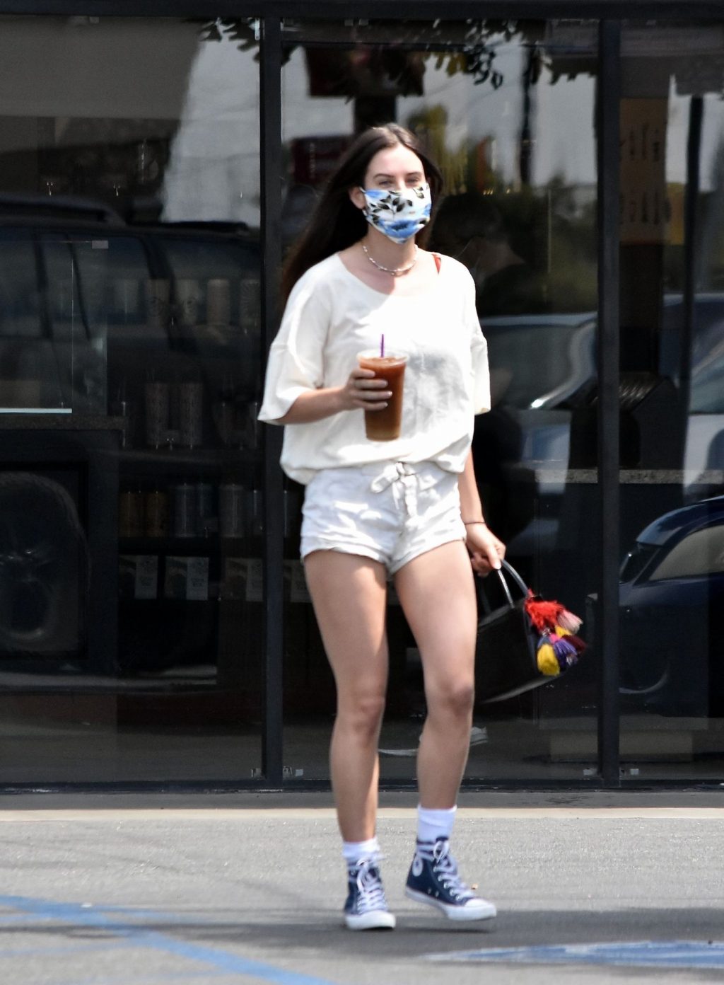 Leggy Scout Willis est vue en train de faire une pause dans son Coffee Bean & Tee local pour prendre un café glacé à Los Feliz, le 12/06/2020. Scout portait un joli masque à imprimé floral pendant sa course au café.