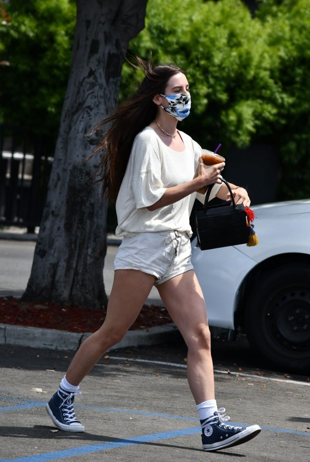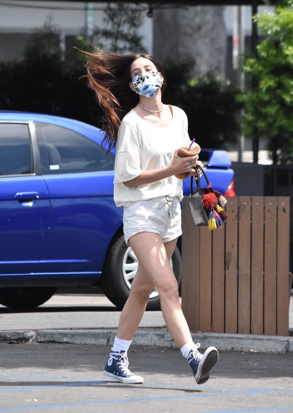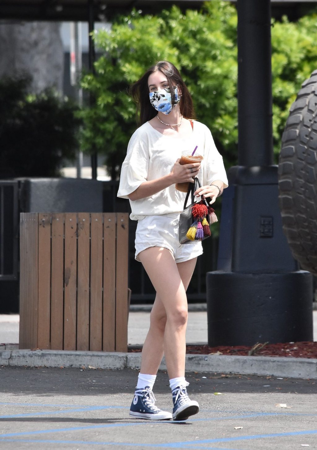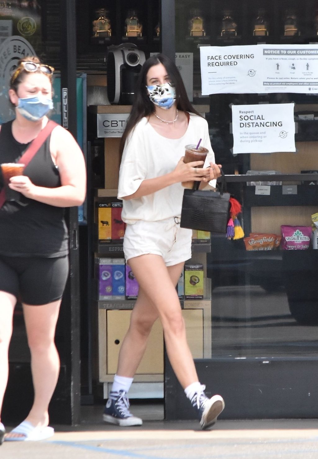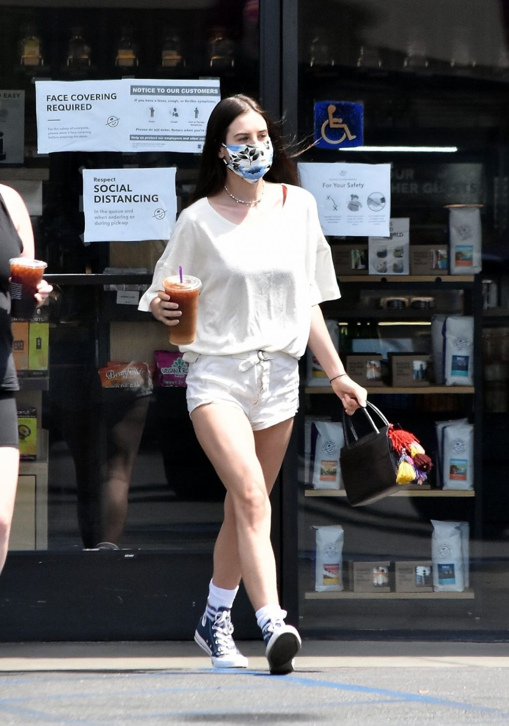 Leggy Scout Willis est vue en train de faire une pause dans son Coffee Bean & Tee local pour prendre un café glacé à Los Feliz, le 12/06/2020. Scout portait un joli masque à imprimé floral pendant sa course au café.
