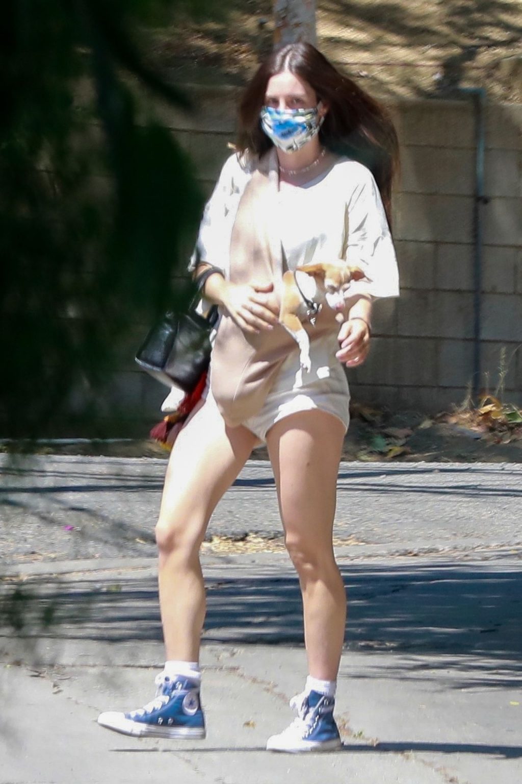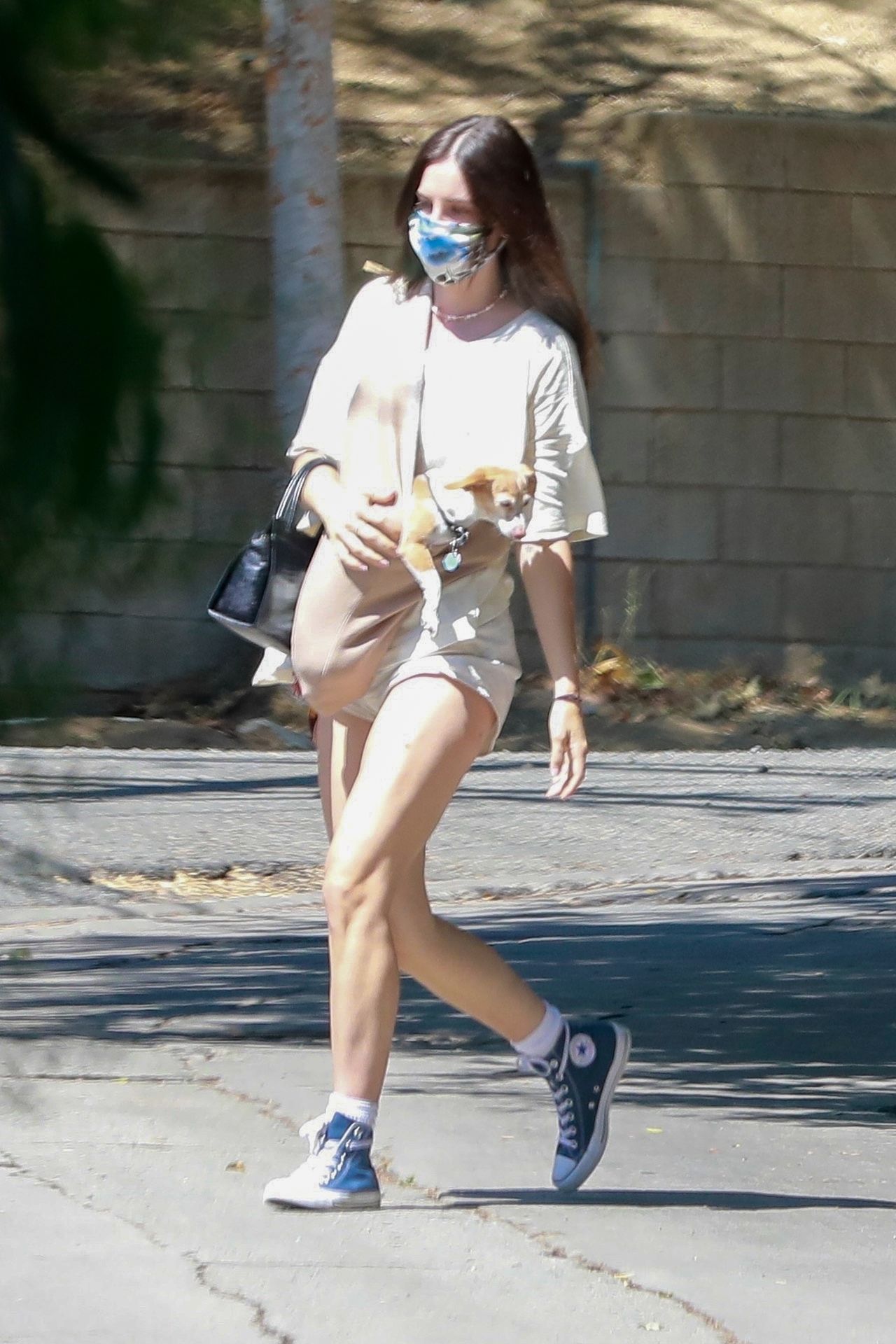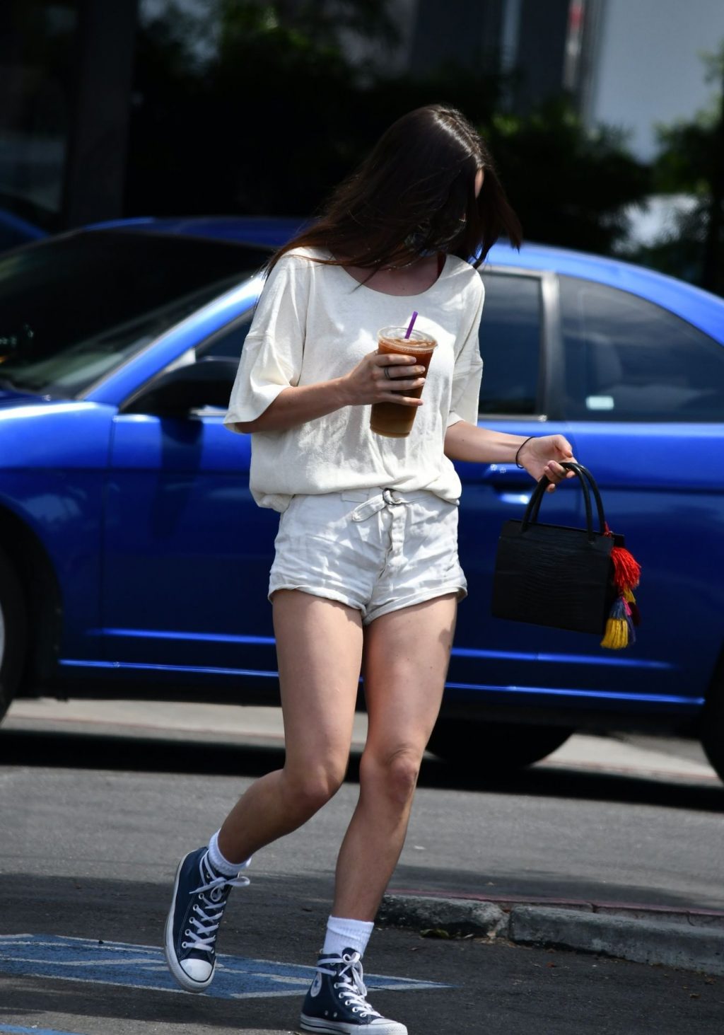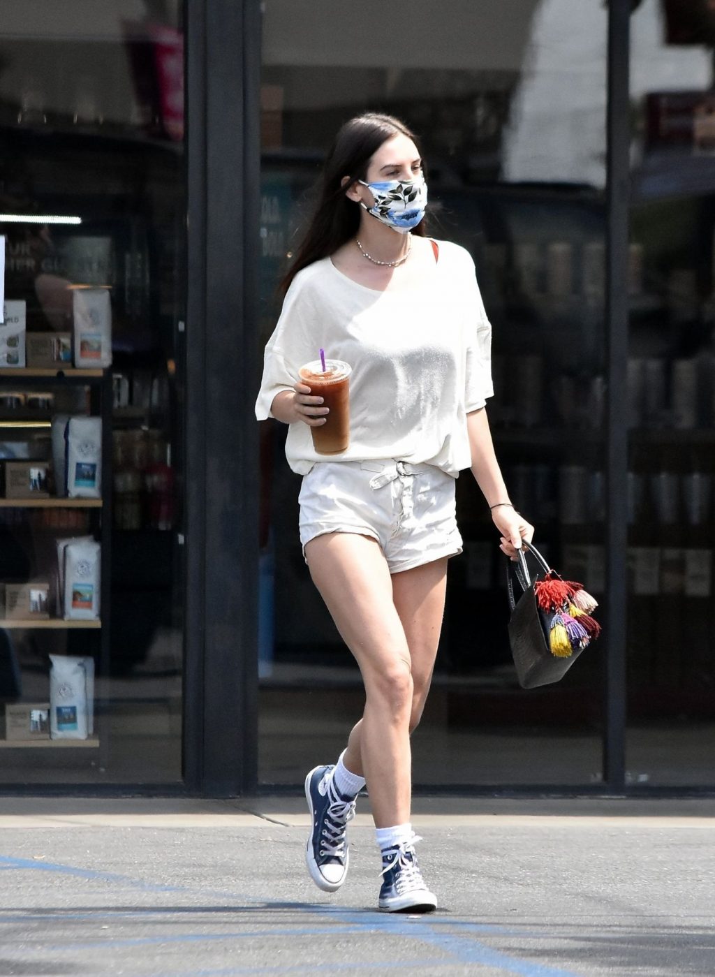 Leggy Scout Willis est vue en train de faire une pause dans son Coffee Bean & Tee local pour prendre un café glacé à Los Feliz, le 12/06/2020. Scout portait un joli masque à imprimé floral pendant sa course au café.