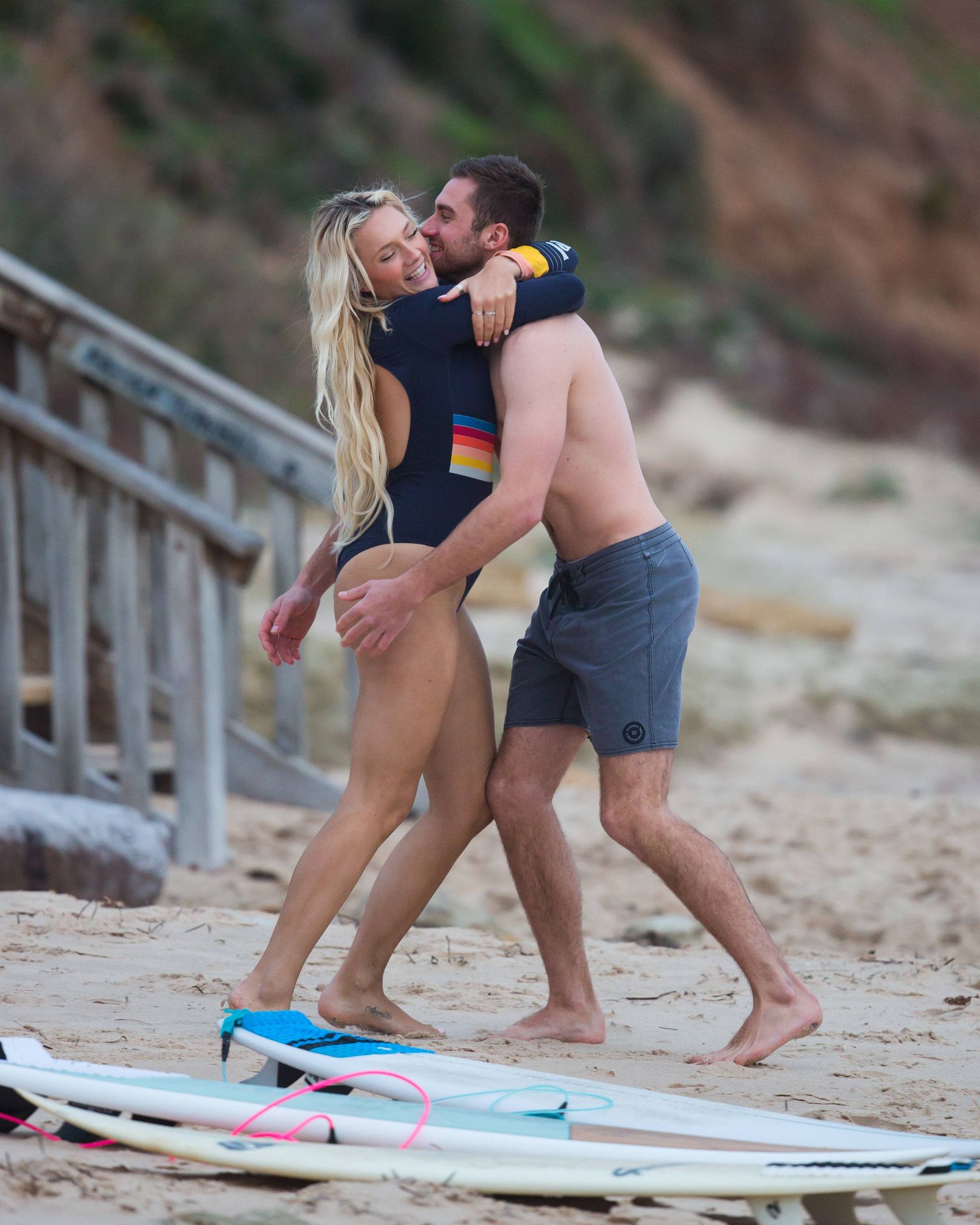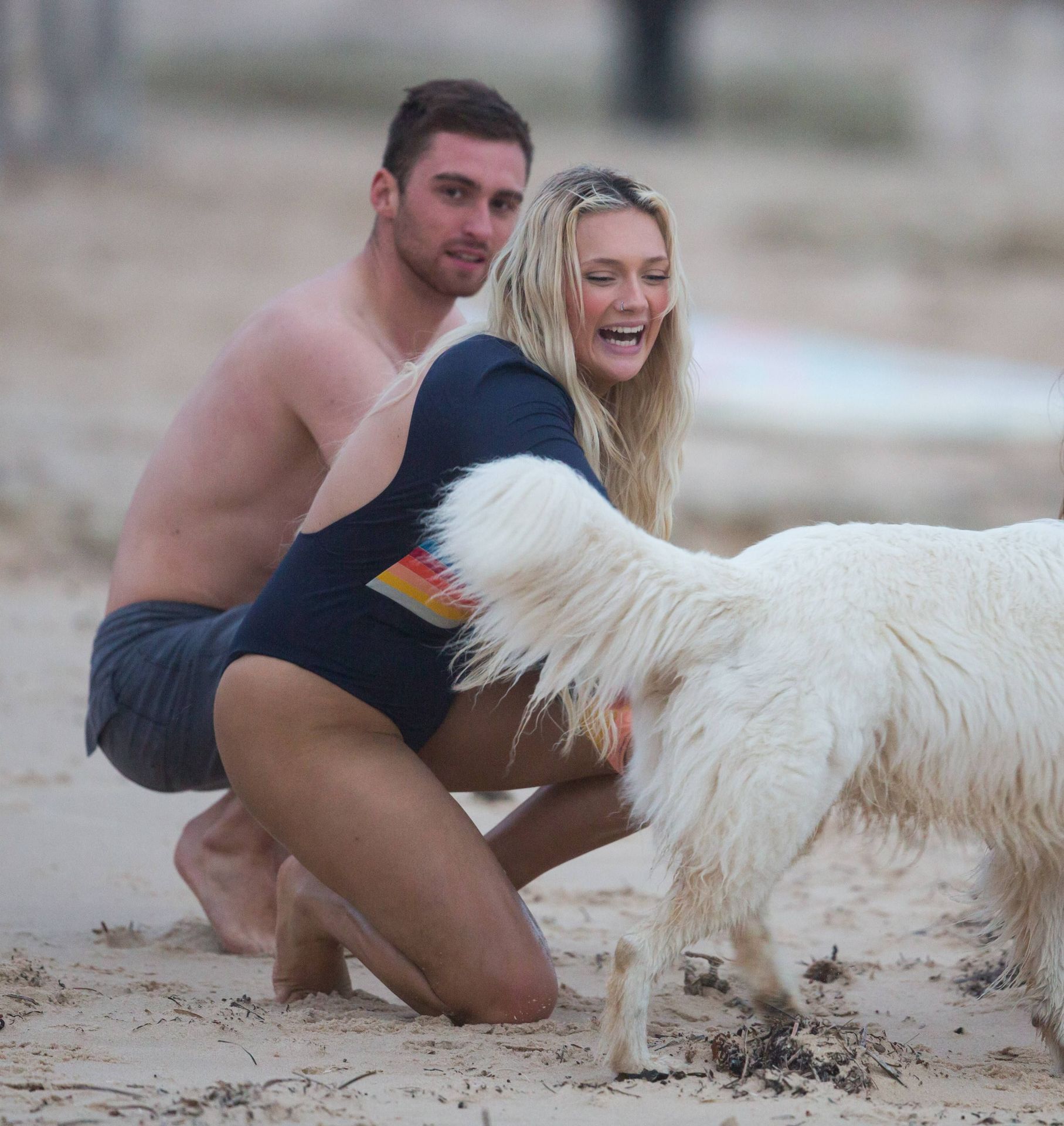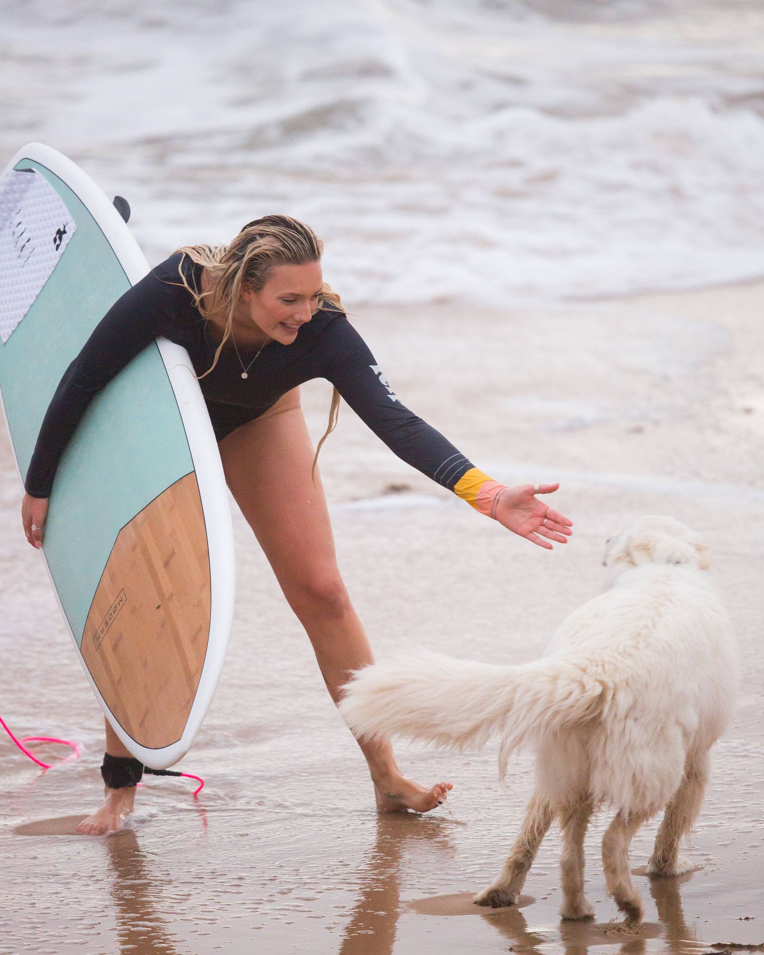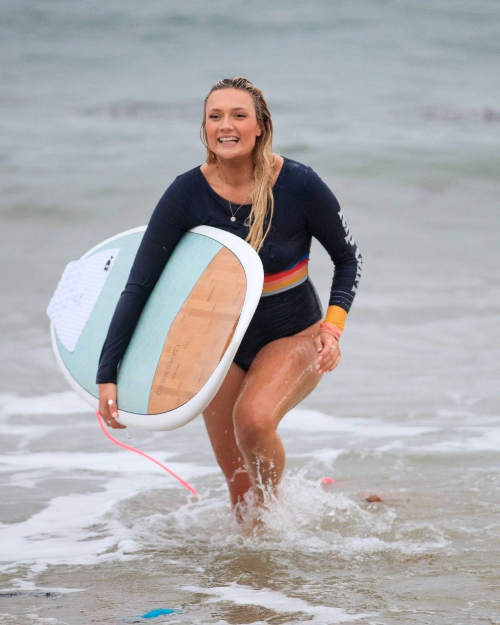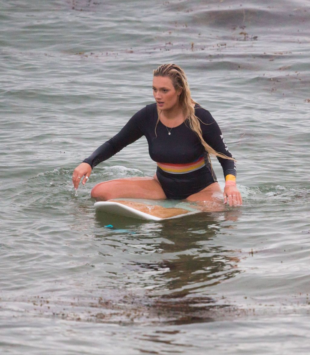 Talia a amené le chien de sa famille à la plage pour l’occasion et semblait s’amuser à courir avec le chien avant de se baigner dans l’océan. Les vagues n’étaient pas particulièrement grandes ce jour-là, alors Talia est sortie de l’eau et a décidé d’essayer un autre jour.