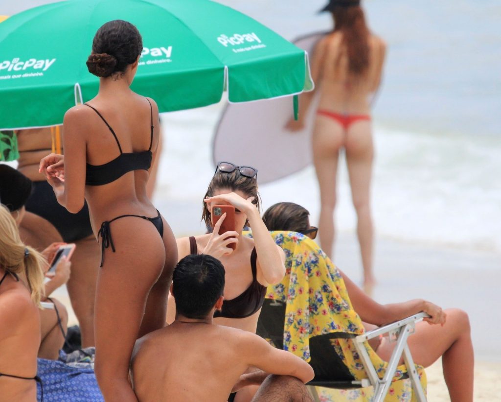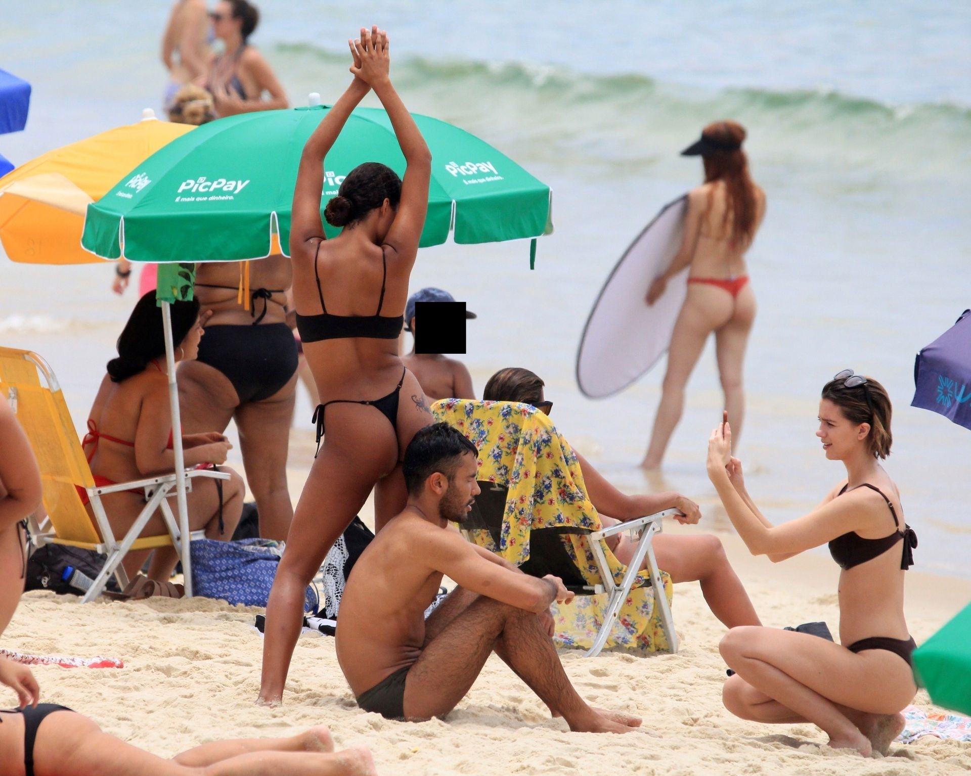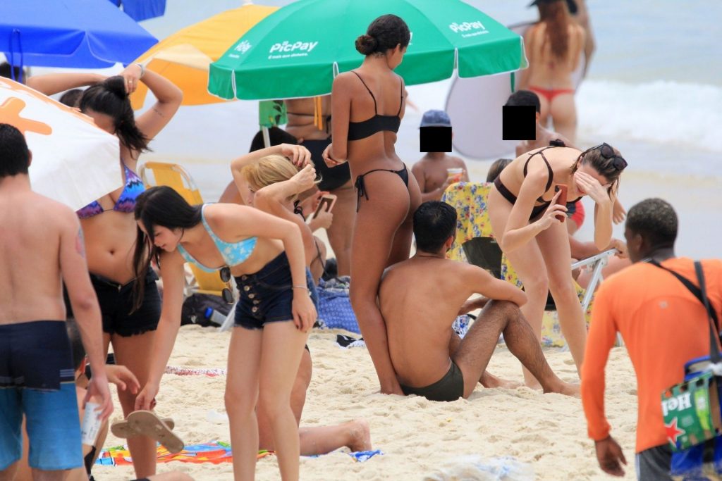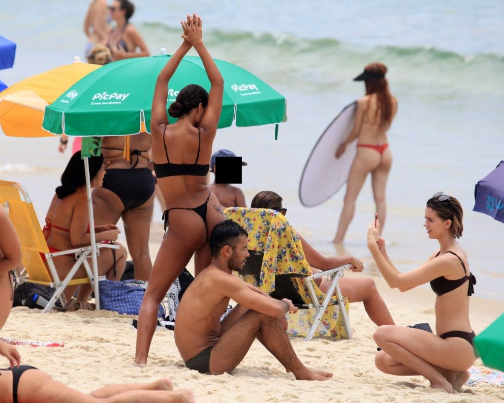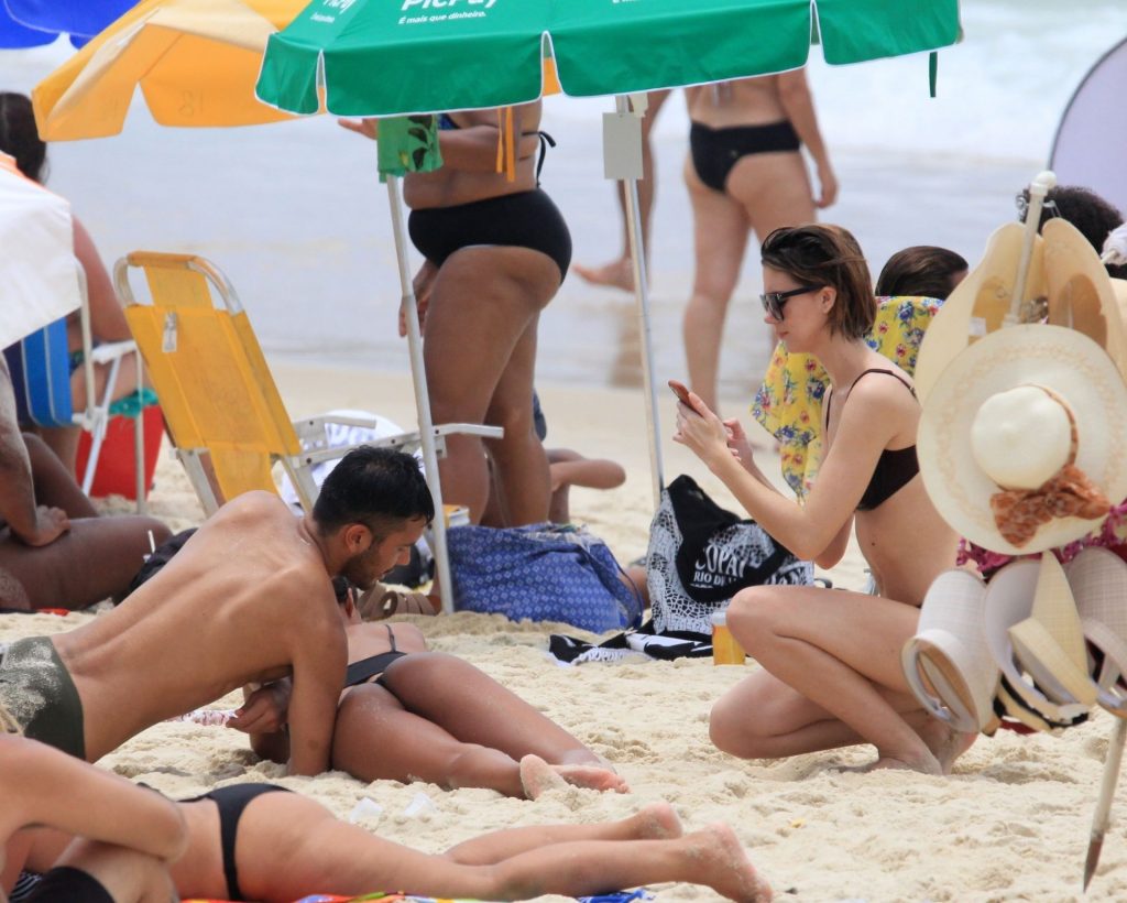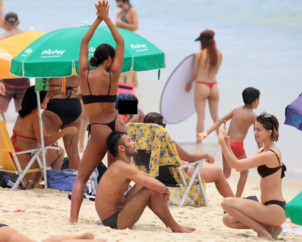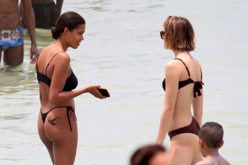 Vincent Cassel et sa femme Tina Kunakey profitent de leurs vacances à Rio de Janeiro, le 21/01/2020. Tina met en valeur sa silhouette tout en passant une journée amusante à la plage avec ses amis et se fait même un tatouage temporaire d’un scorpion sur la fesse.