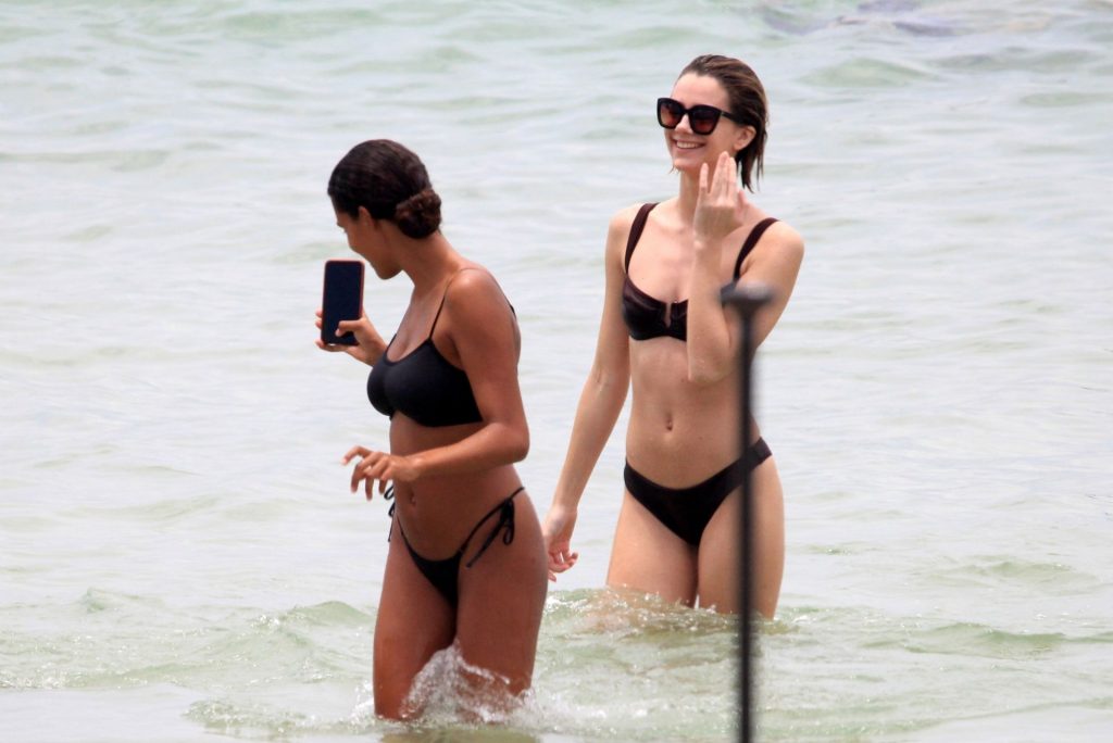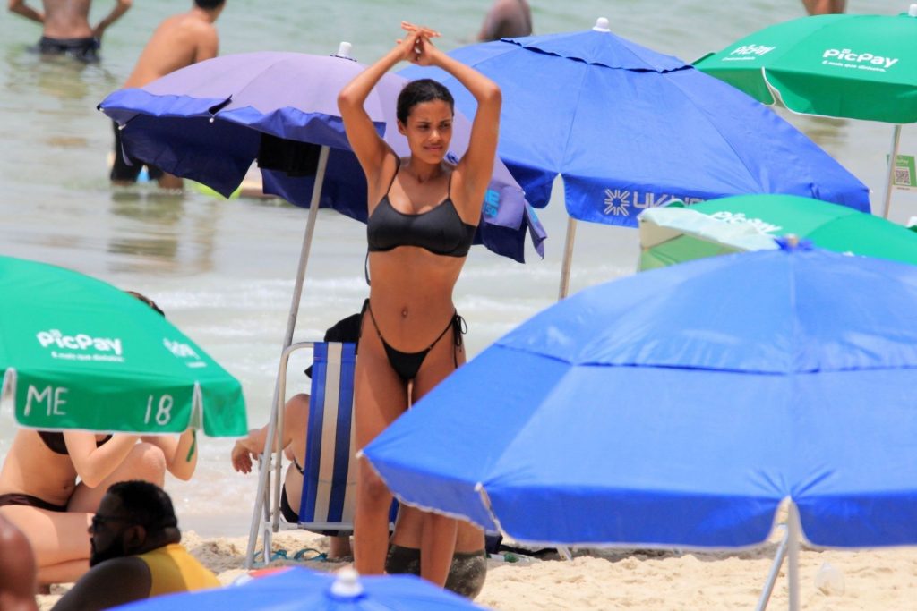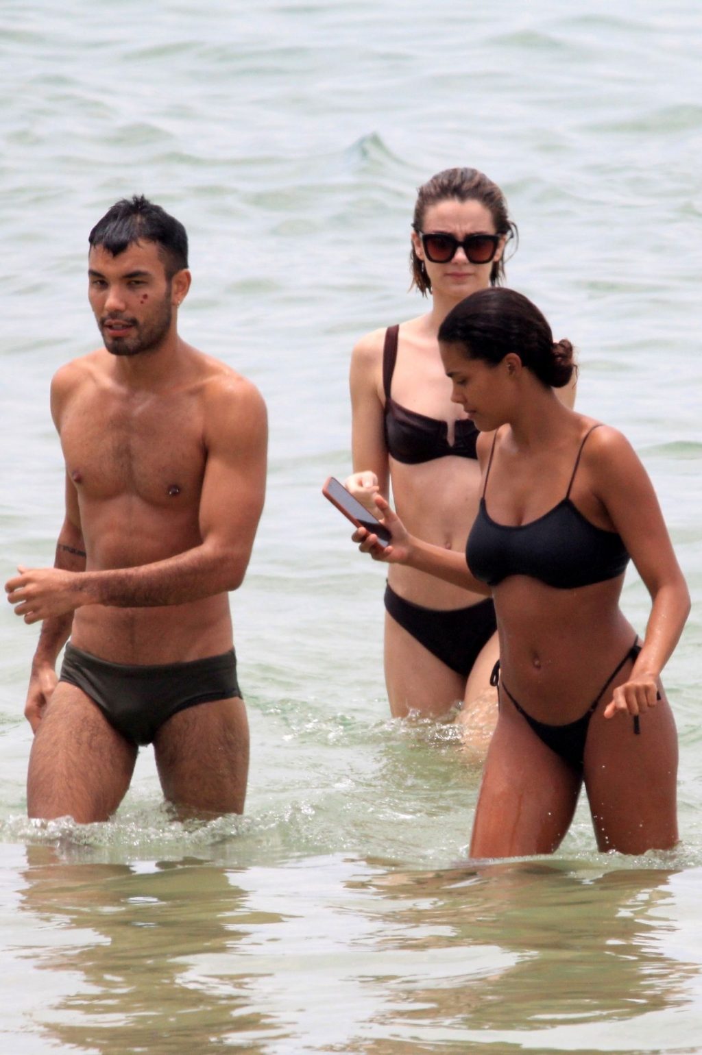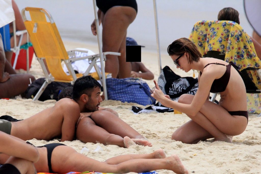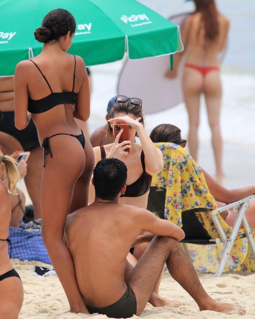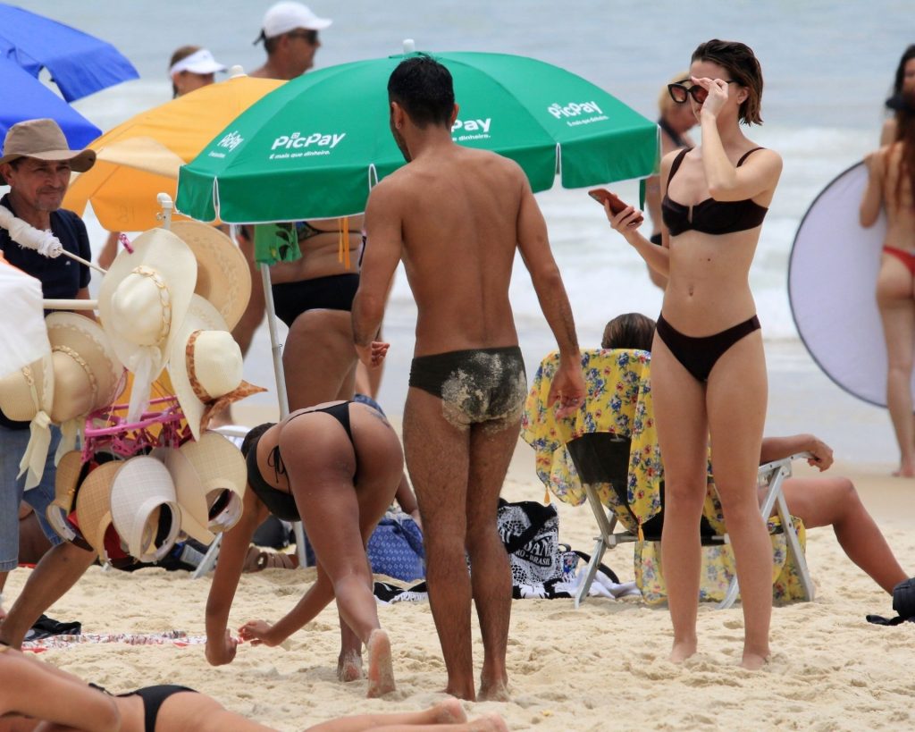 Vincent Cassel et sa femme Tina Kunakey profitent de leurs vacances à Rio de Janeiro, le 21/01/2020. Tina met en valeur sa silhouette tout en passant une journée amusante à la plage avec ses amis et se fait même un tatouage temporaire d’un scorpion sur la fesse.