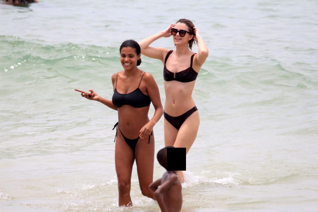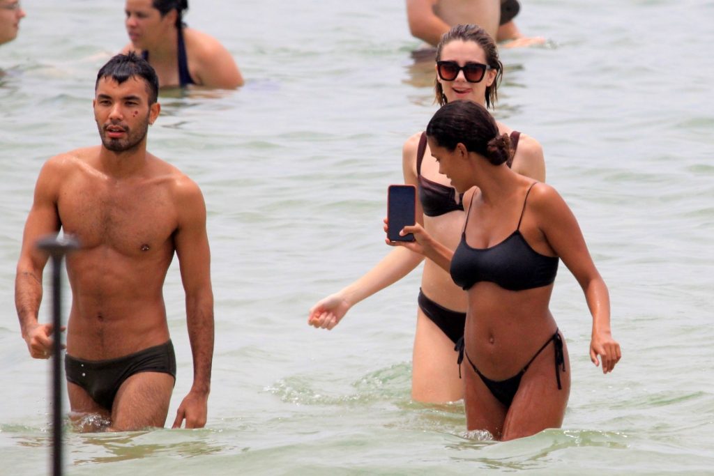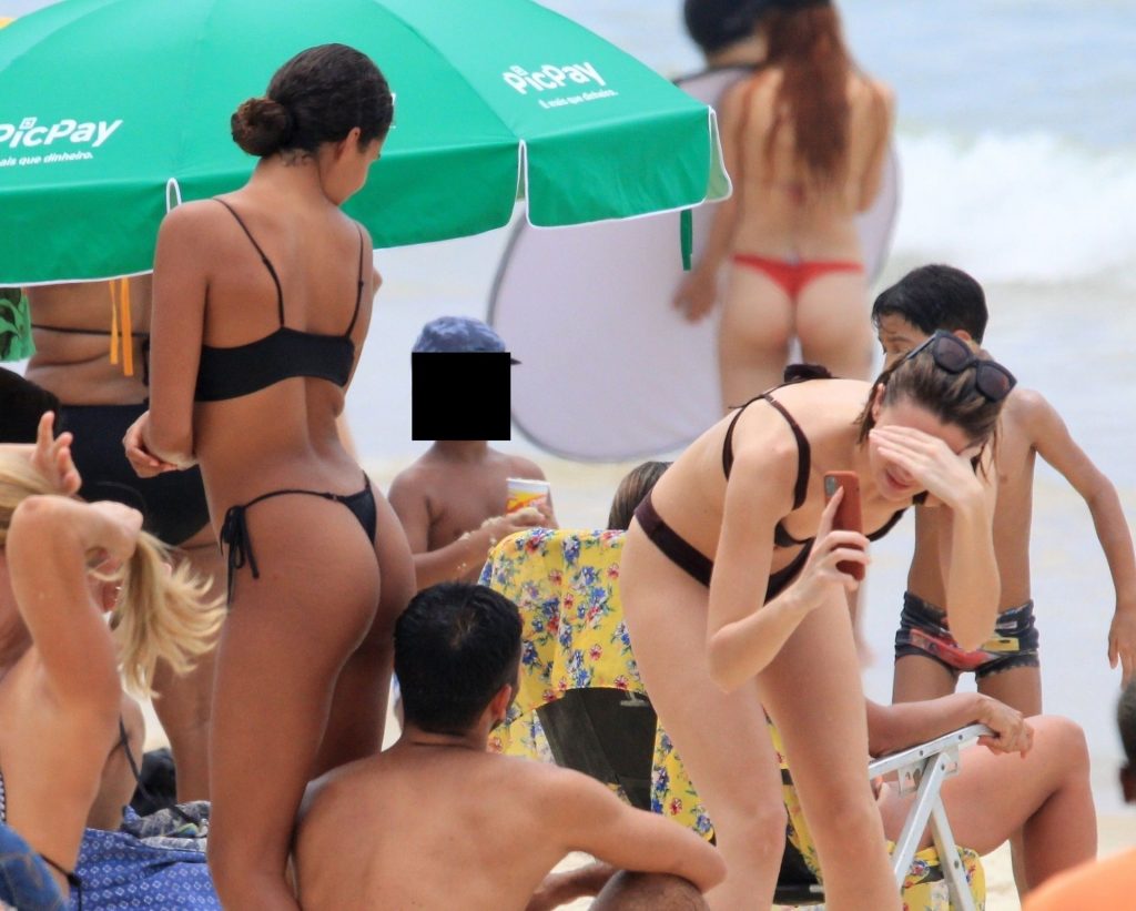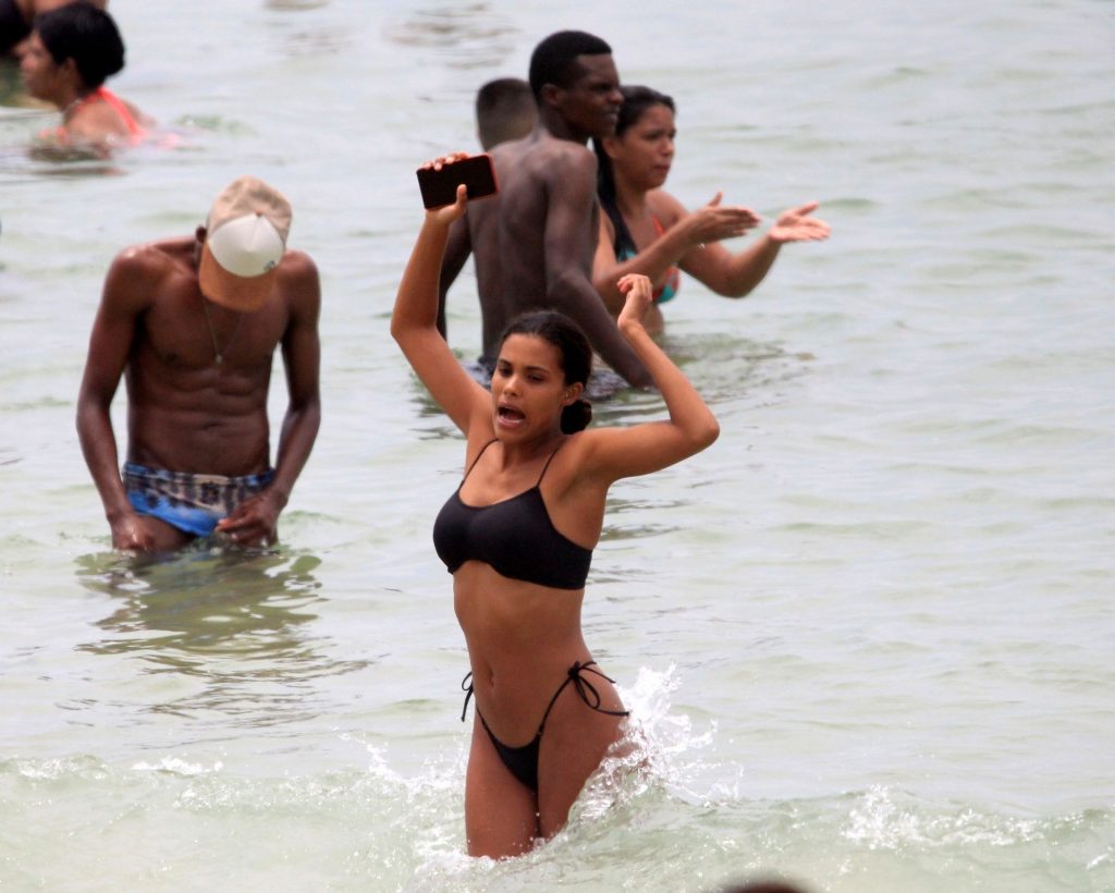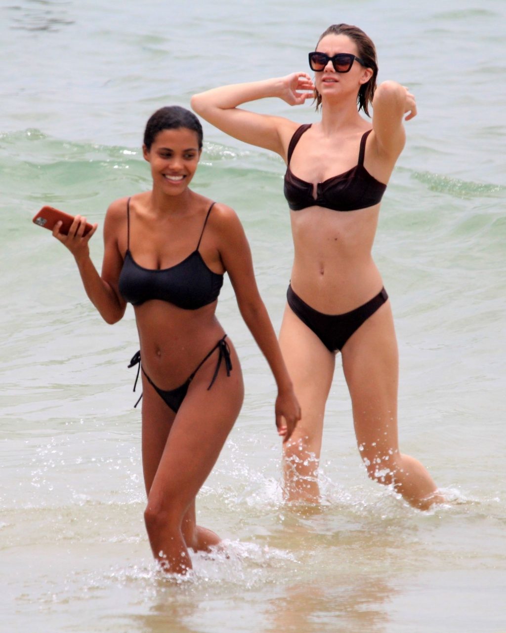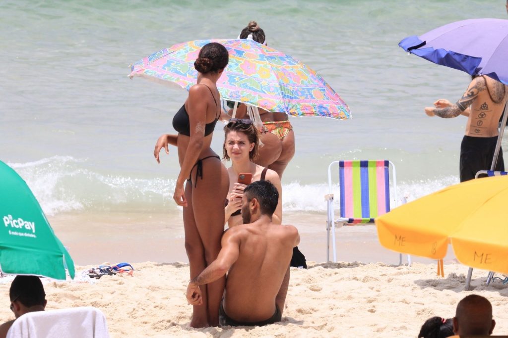 Vincent Cassel et sa femme Tina Kunakey profitent de leurs vacances à Rio de Janeiro, le 21/01/2020. Tina met en valeur sa silhouette tout en passant une journée amusante à la plage avec ses amis et se fait même un tatouage temporaire d’un scorpion sur la fesse.