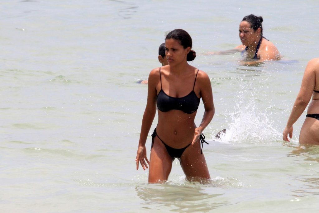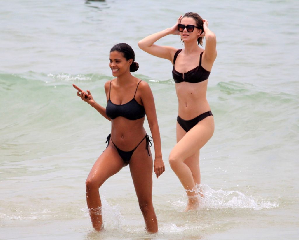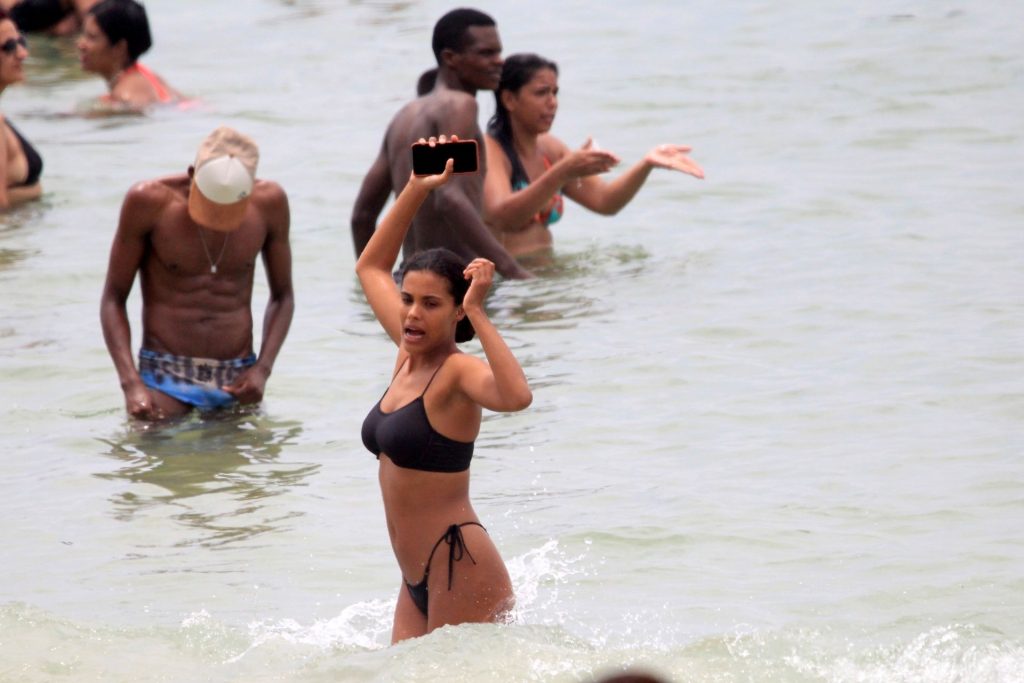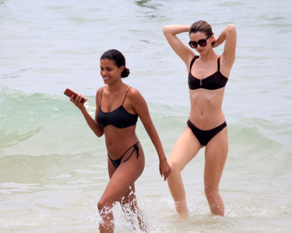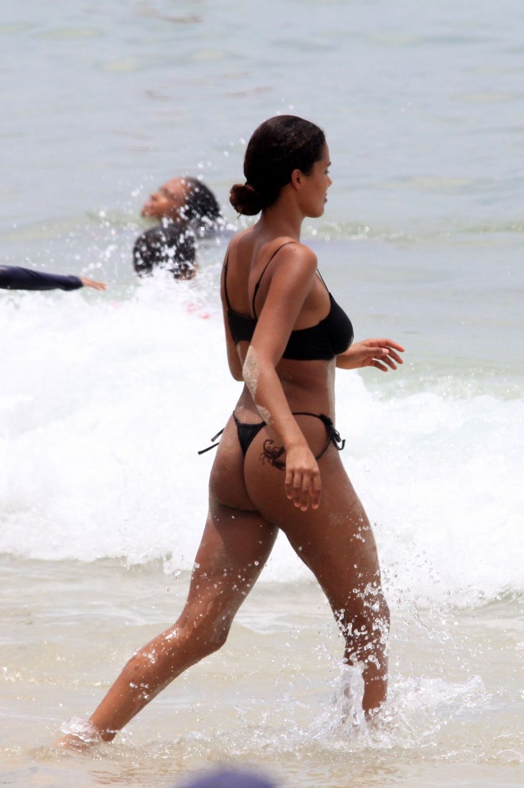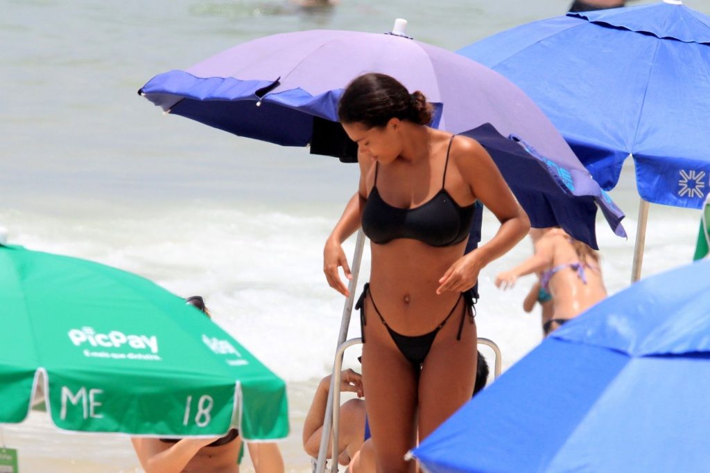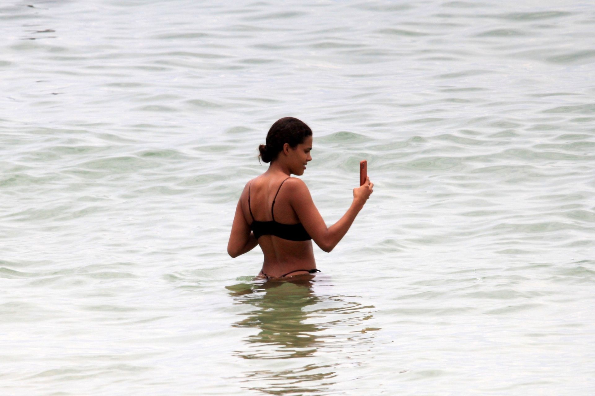 Vincent Cassel et sa femme Tina Kunakey profitent de leurs vacances à Rio de Janeiro, le 21/01/2020. Tina met en valeur sa silhouette tout en passant une journée amusante à la plage avec ses amis et se fait même un tatouage temporaire d’un scorpion sur la fesse.