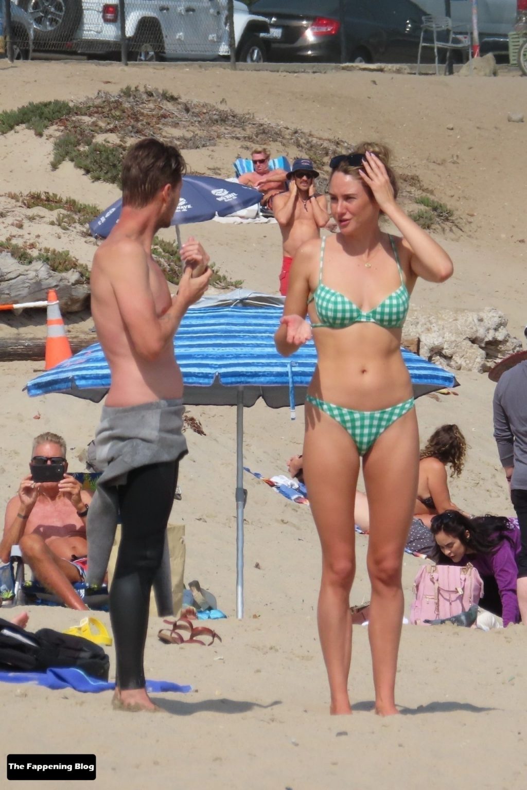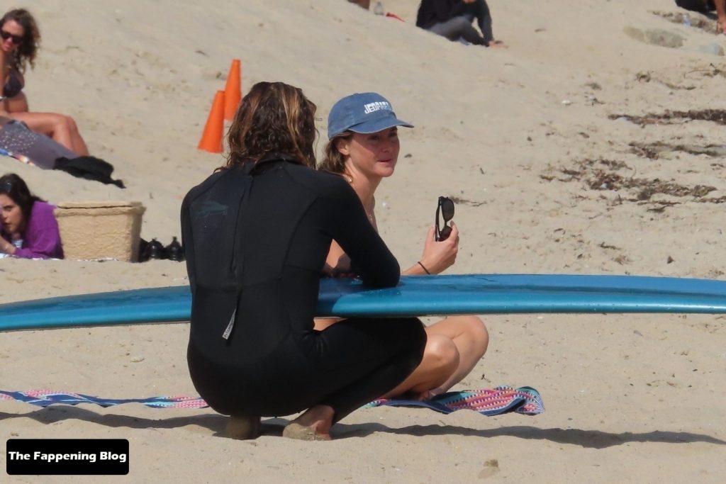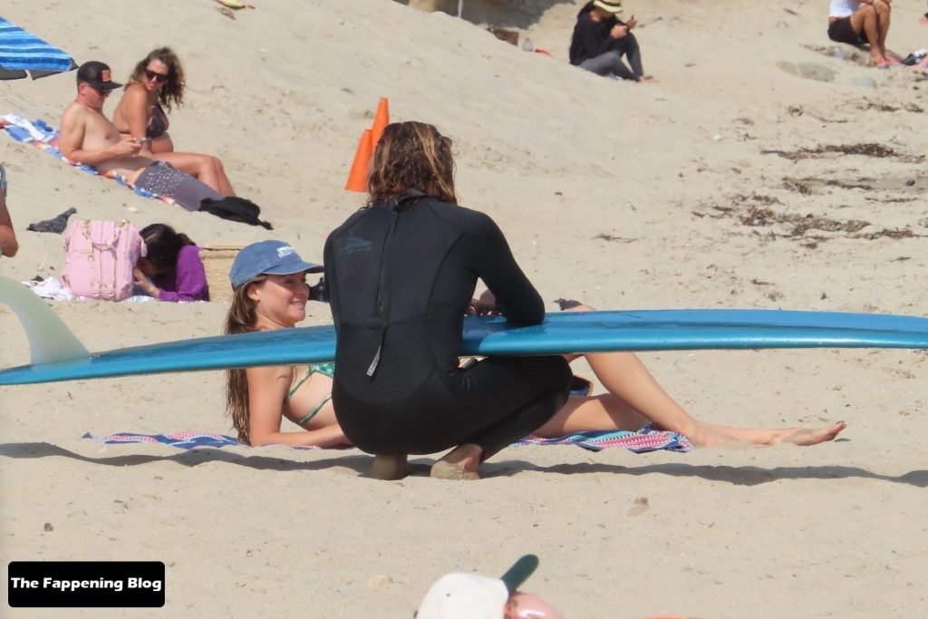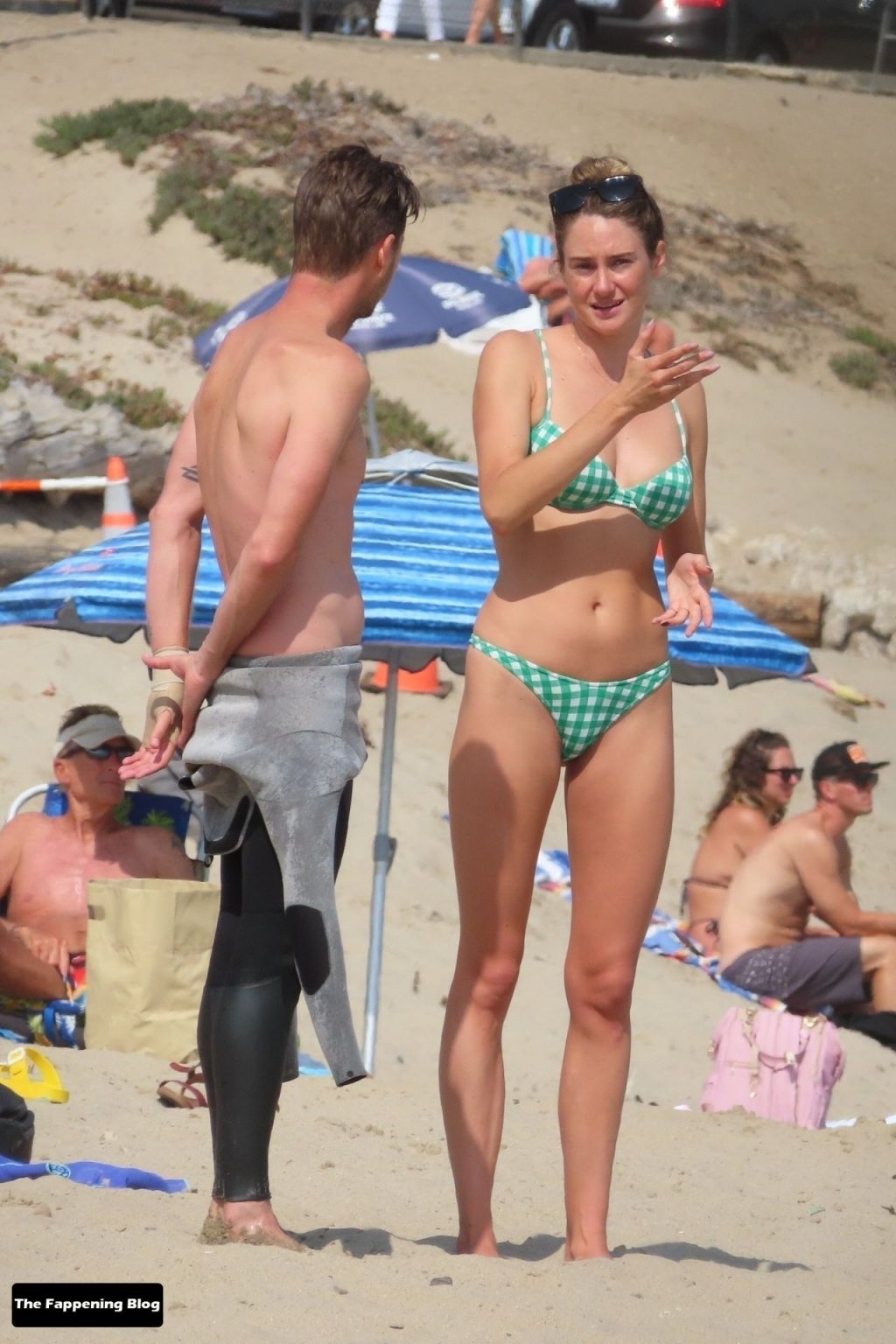 L’actrice Shailene Woodley est vue en train de discuter avec des surfeurs lors d’une sortie à la plage de Malibu, le 01/10/2021.