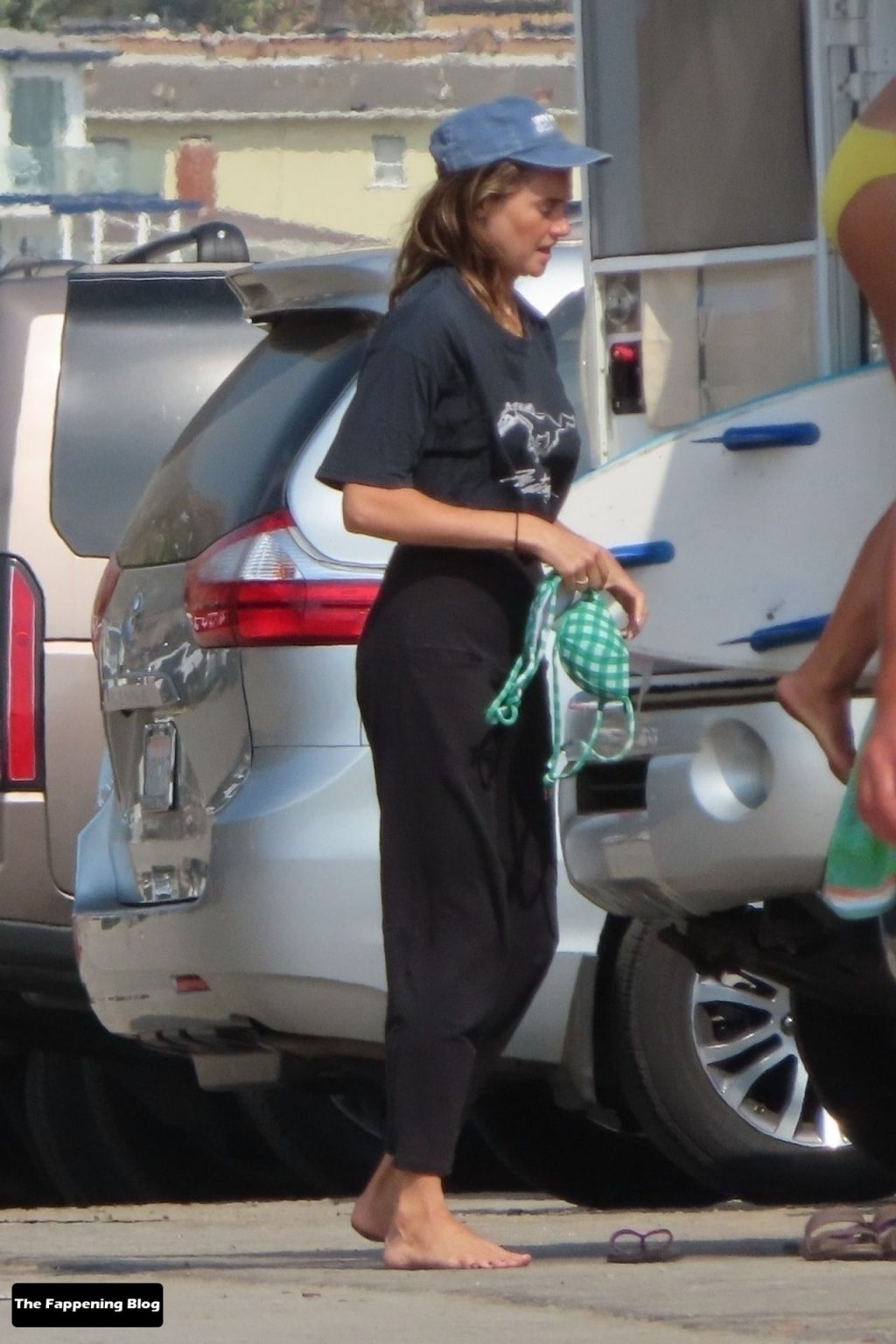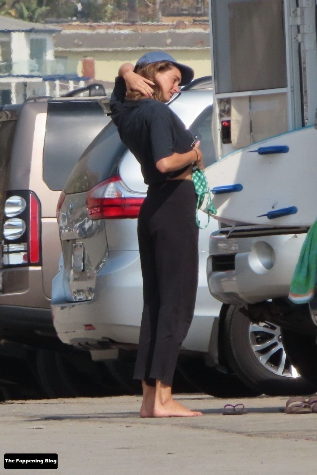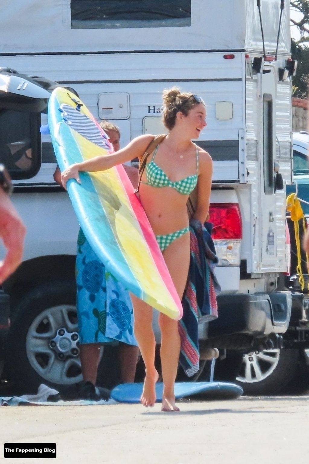 L’actrice Shailene Woodley est vue en train de discuter avec des surfeurs lors d’une sortie à la plage de Malibu, le 01/10/2021.