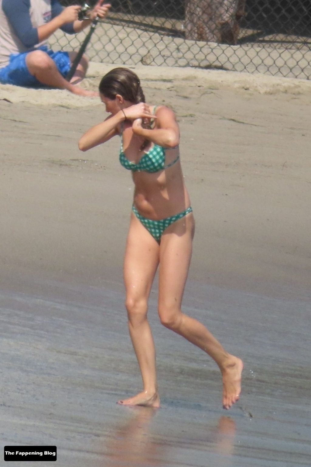 La star du Fappening, qui s’est fiancée à Aaron Rodgers plus tôt cette année, montre son corps très en forme dans un bikini à carreaux verts, mais il semble qu’elle ne porte pas sa bague de fiançailles.
