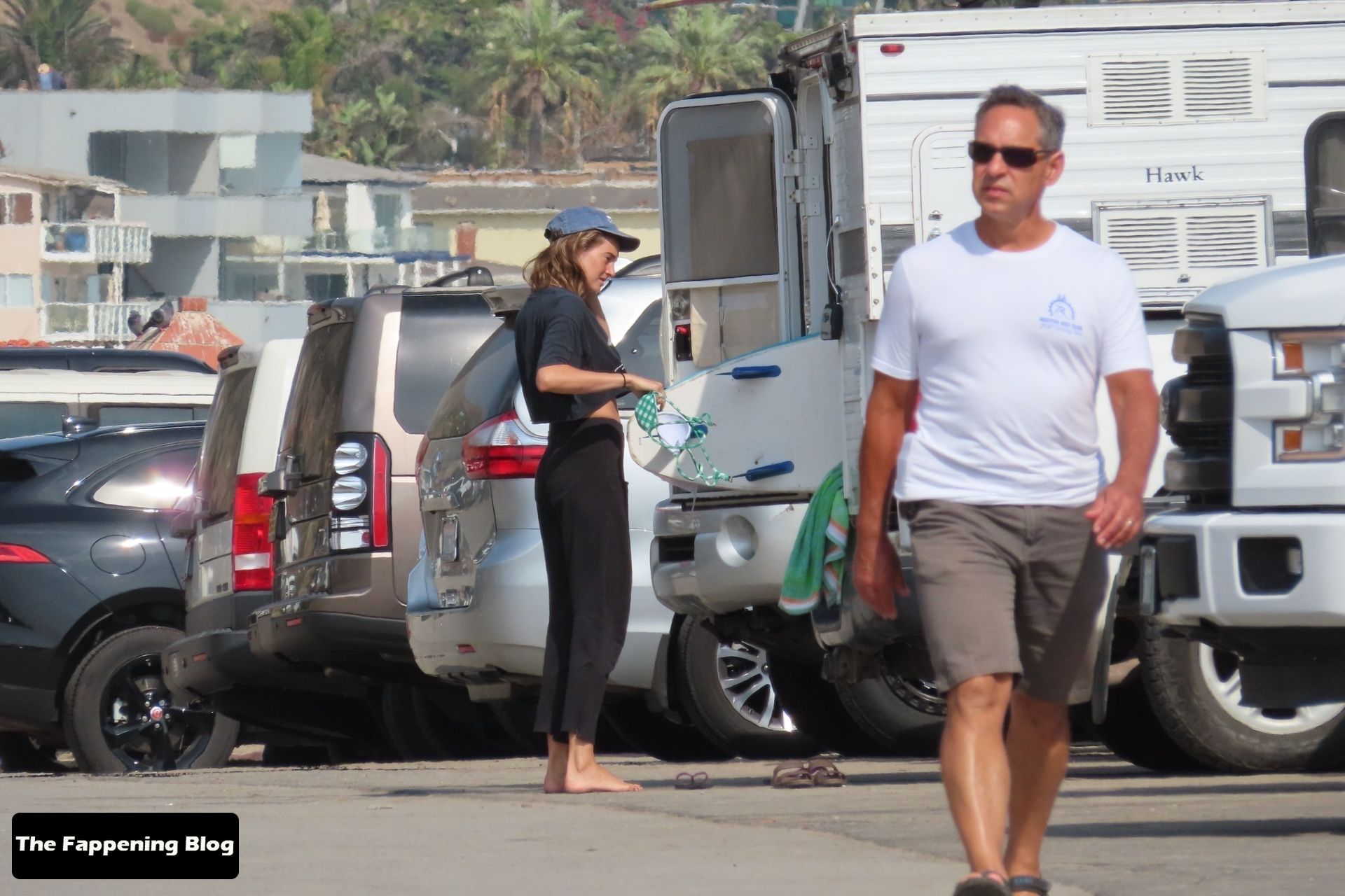 L’actrice Shailene Woodley est vue en train de discuter avec des surfeurs lors d’une sortie à la plage de Malibu, le 01/10/2021.