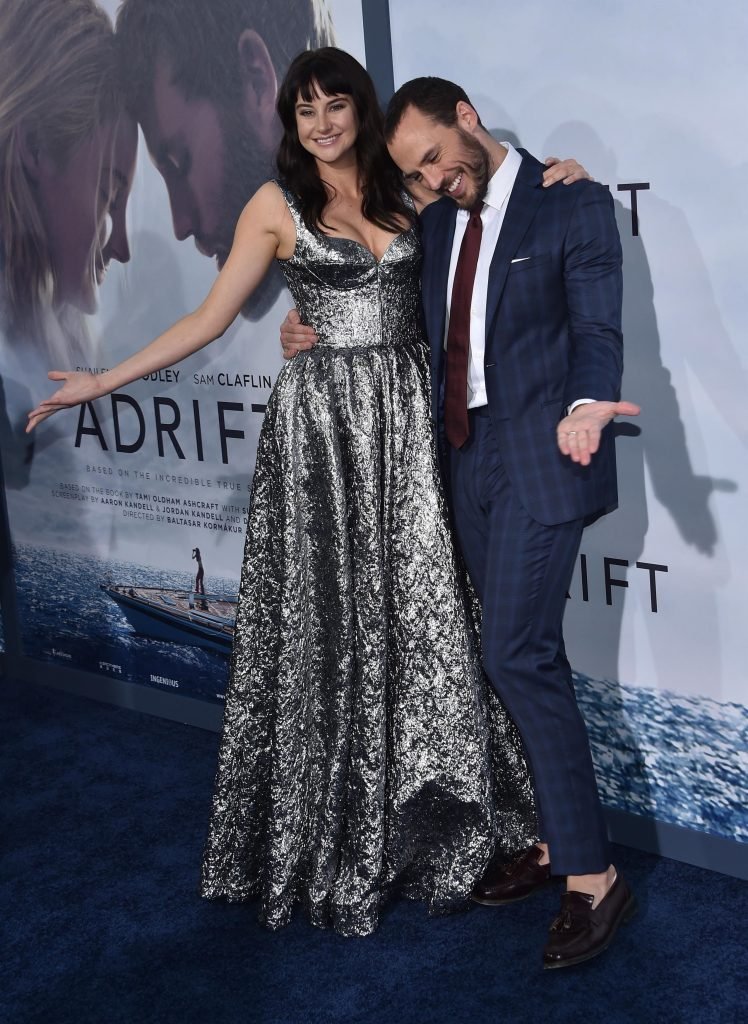 Le couple est apparu à la première de “Adrift” à Los Angeles, le 24/05/2018. L’actrice a choisi une robe argentée avec un décolleté, et son petit ami – un élégant costume bleu foncé.