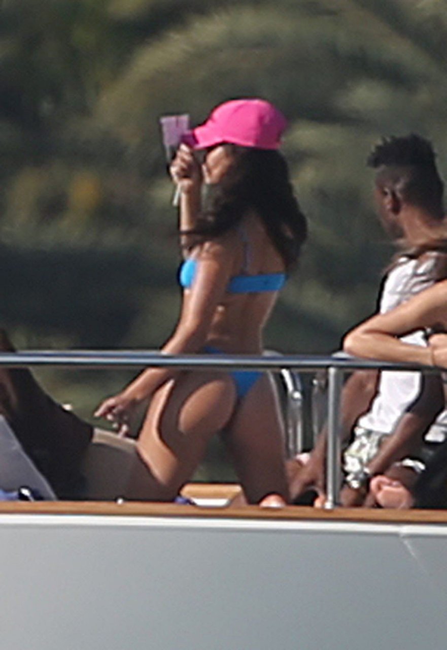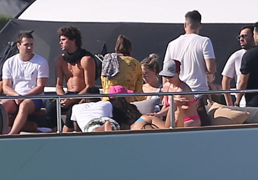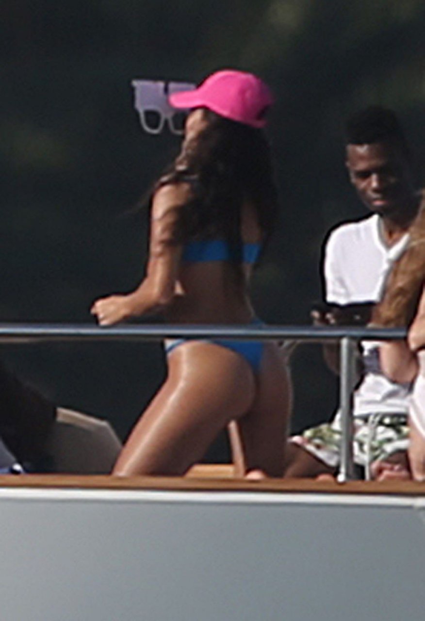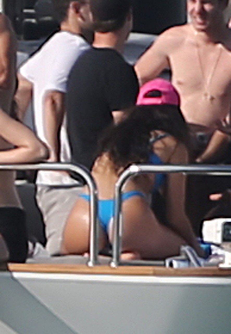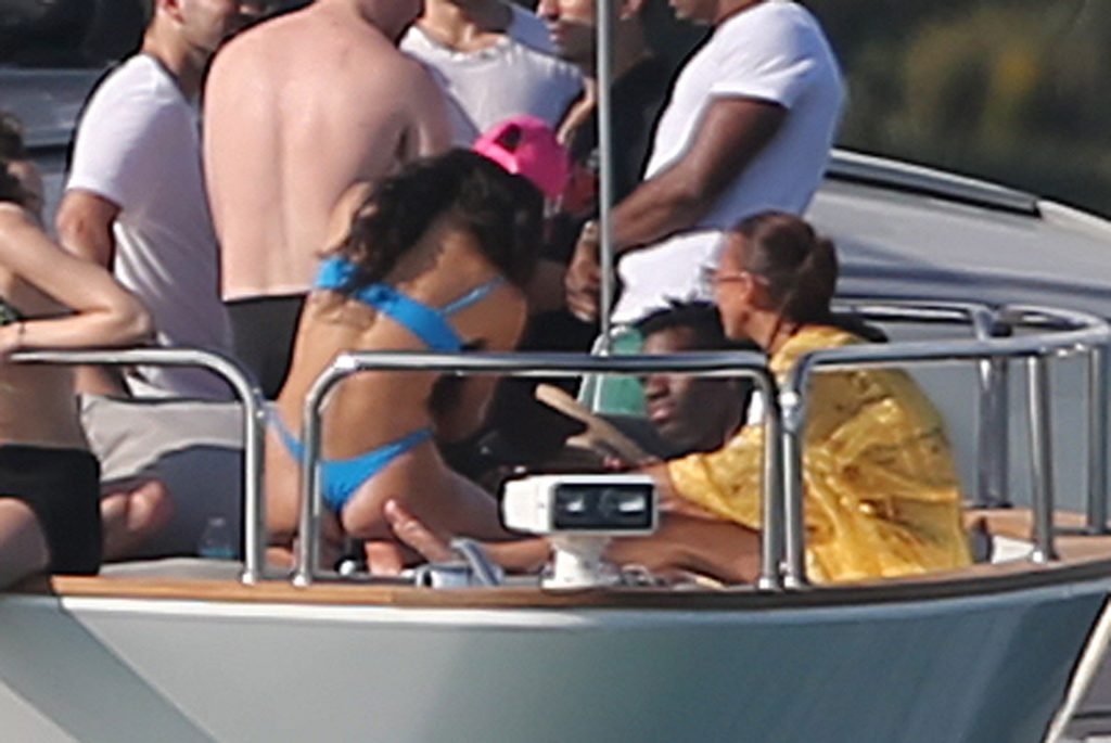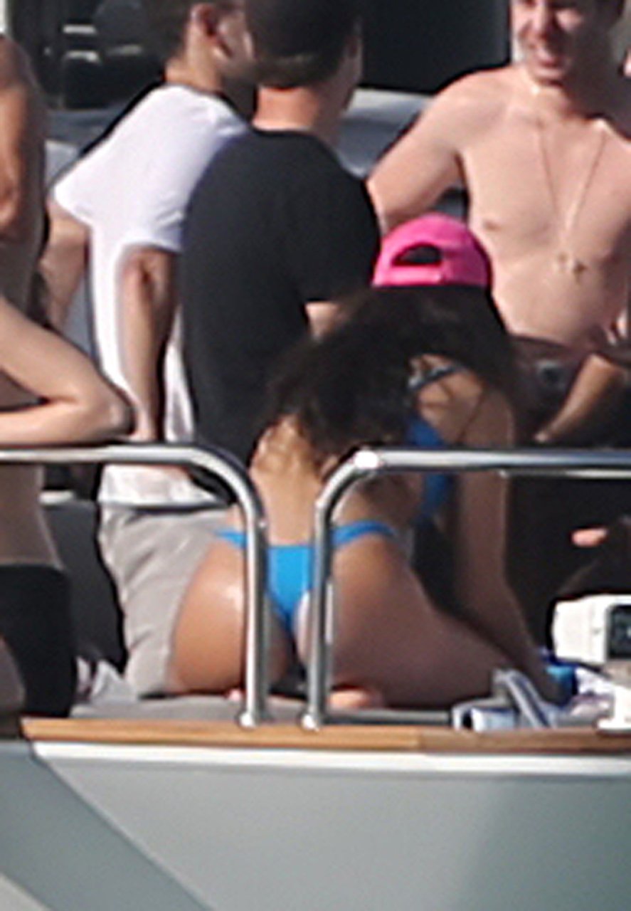 Les mannequins Jasmine Tookes (en bikini noir) et Shanina Shaik (en bikini bleu) célèbrent l’anniversaire de Jasmine sur un yacht à Miami, 01/02/2019.