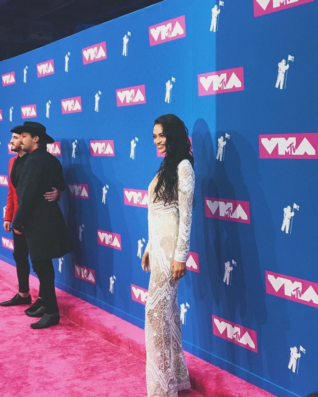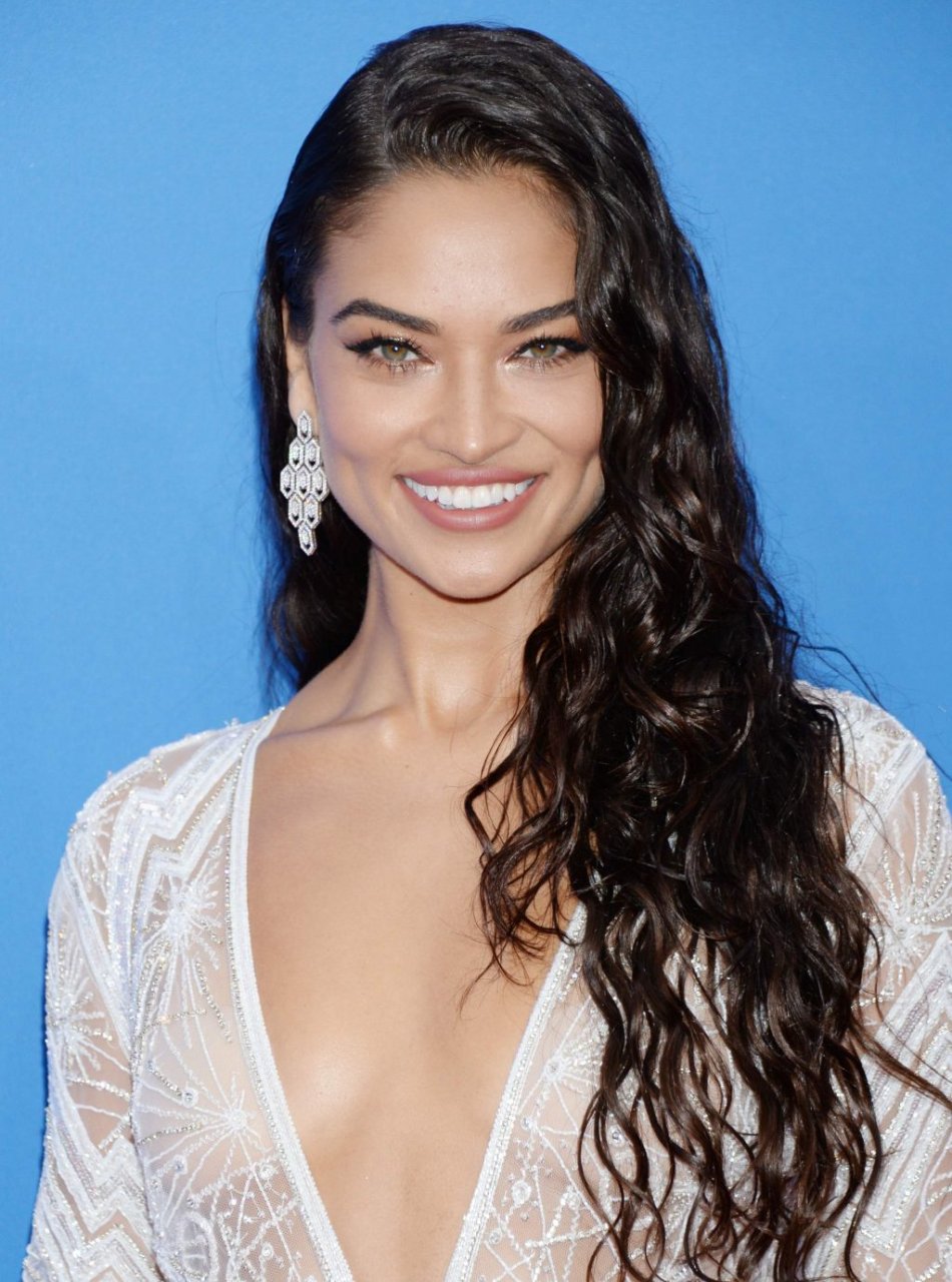 Tittyless Shanina Shaik assiste aux MTV Video Music Awards 2018 à New York, le 20/08/2018. Le mannequin de 27 ans portait une robe blanche transparente sans soutien-gorge.
