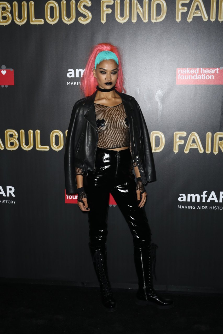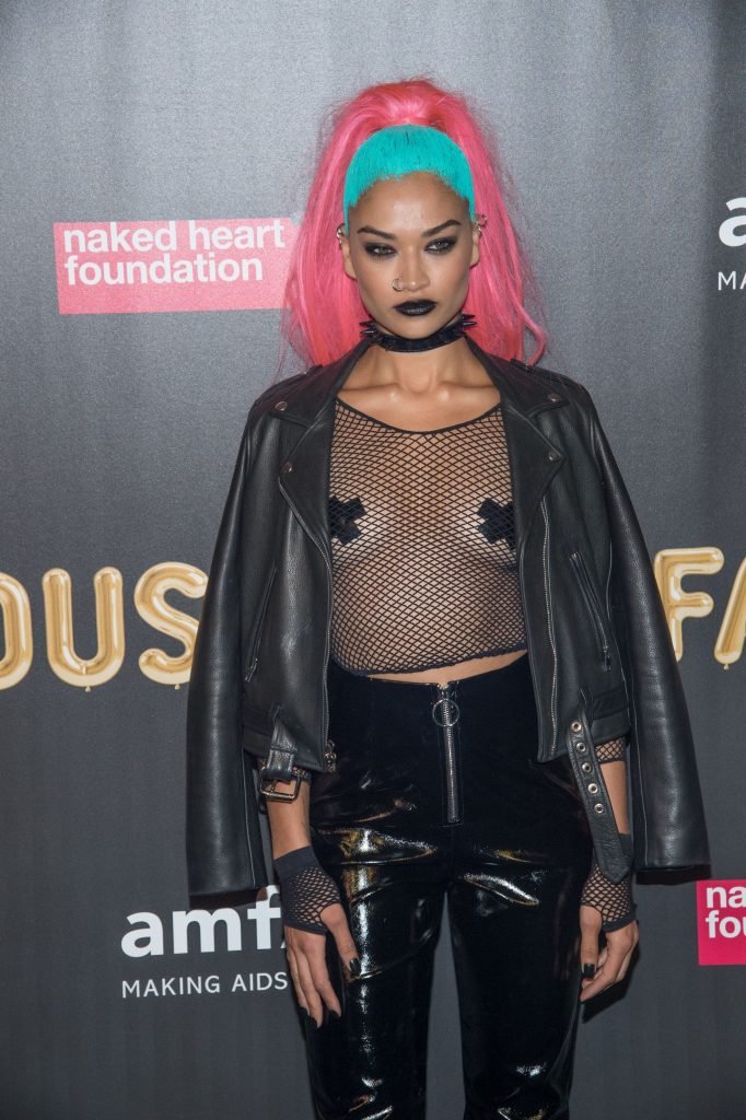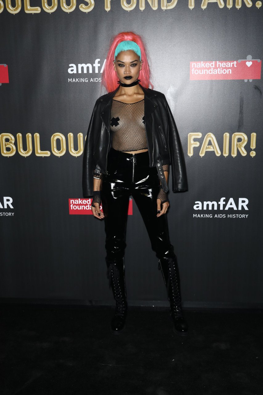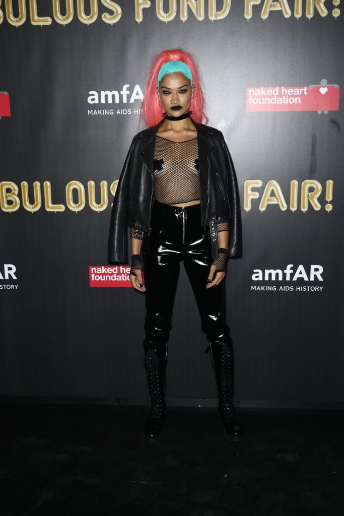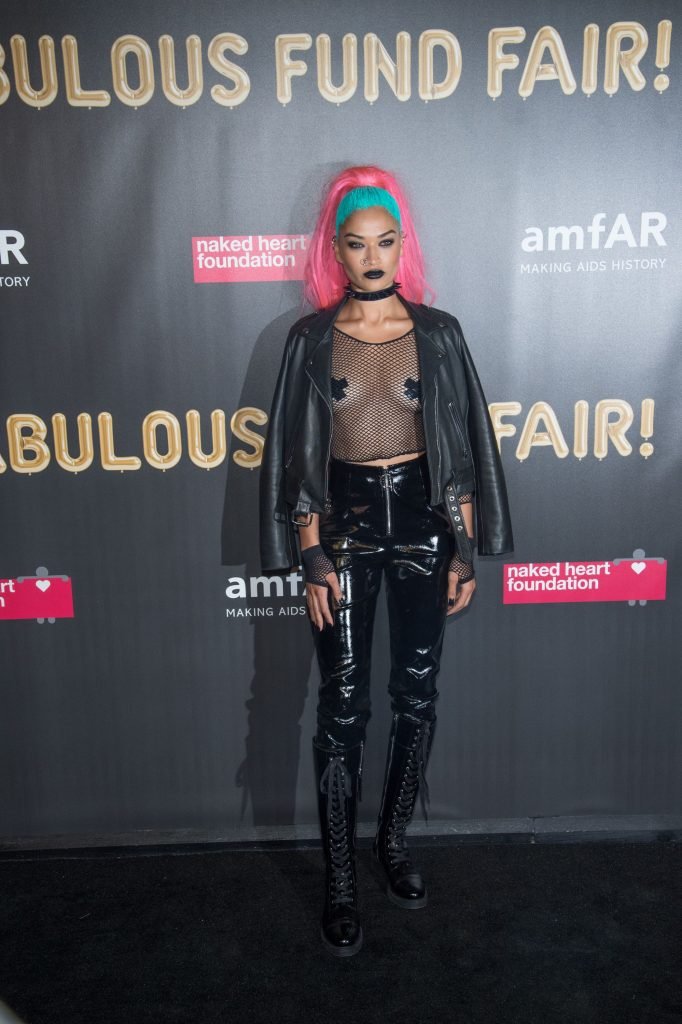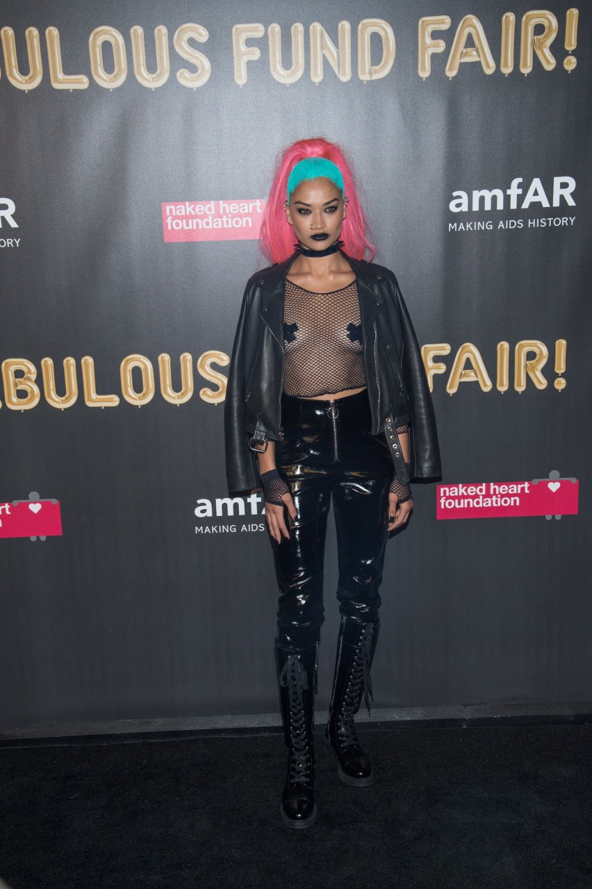 Shanina Shaik porte un haut en résille avec des cache-tétons lors de la 2017 amfAR Fabulous Fund Fair à NYC, le 28/10/2017. Shanina Shaik est un top modèle australien de la mode. Âge : 26 ans (née le 11 février 1991)