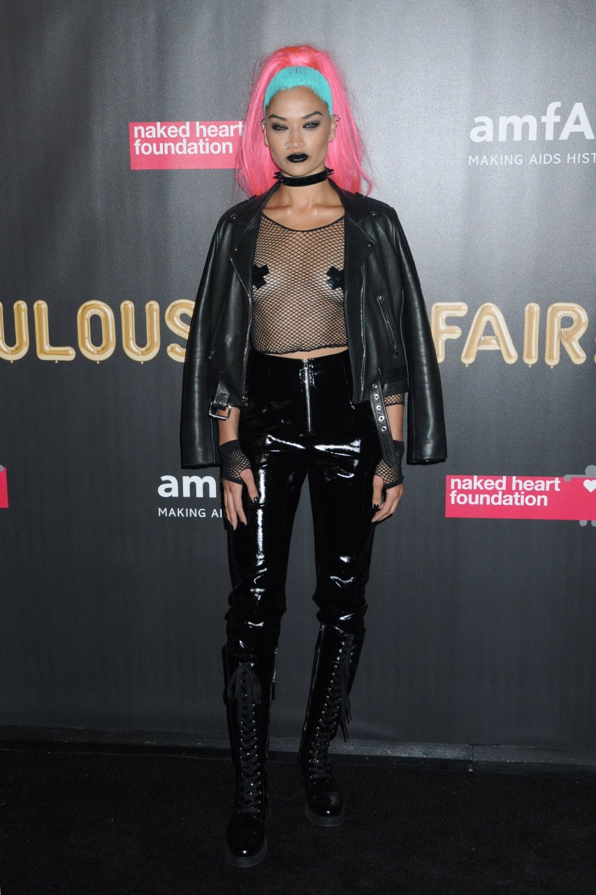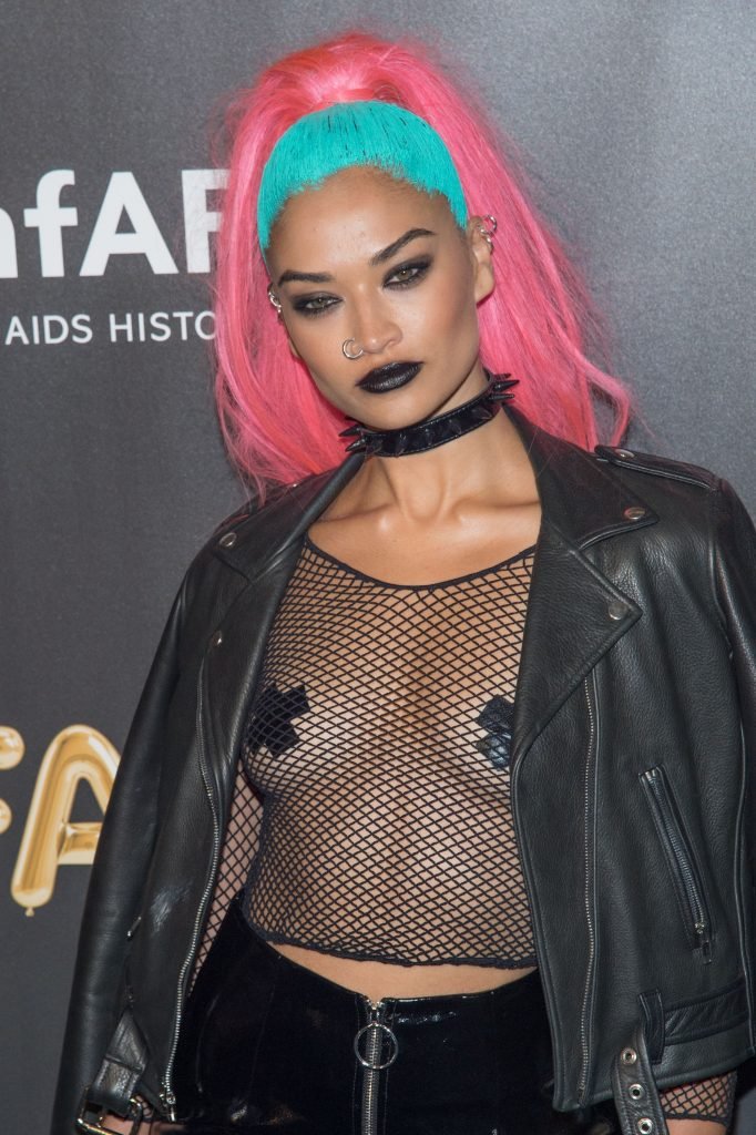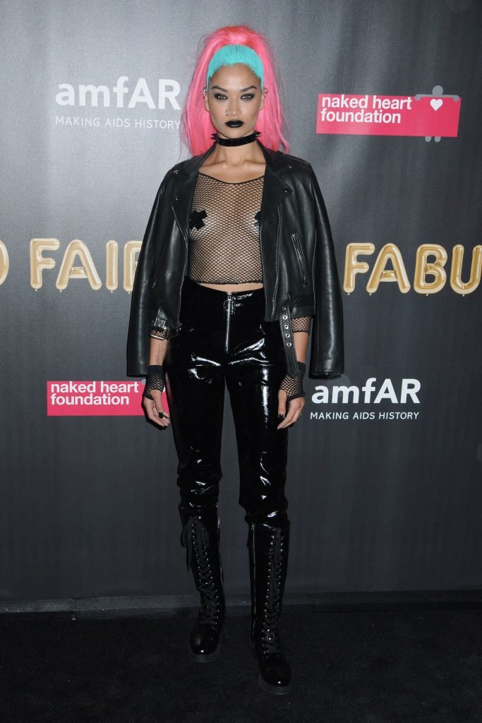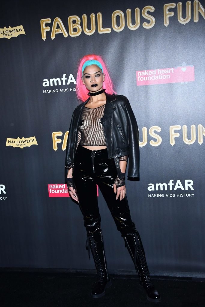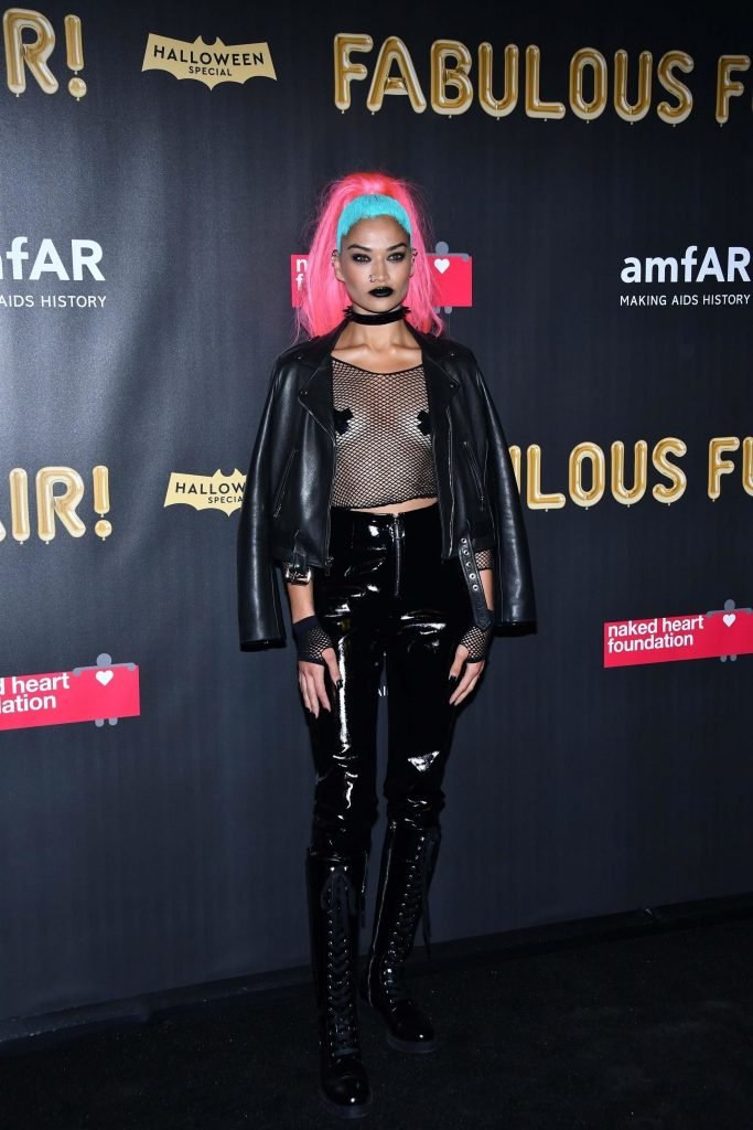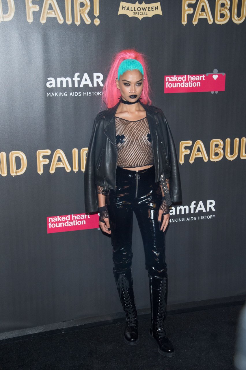 Shanina Shaik porte un haut en résille avec des cache-tétons lors de la 2017 amfAR Fabulous Fund Fair à NYC, le 28/10/2017. Shanina Shaik est un top modèle australien de la mode. Âge : 26 ans (née le 11 février 1991)