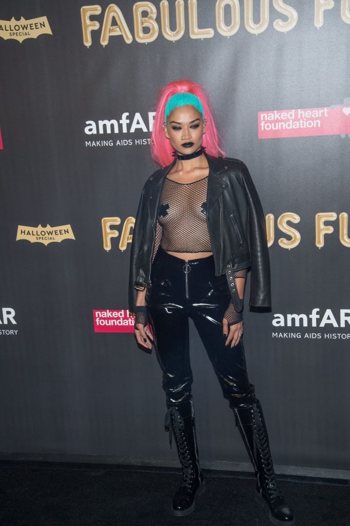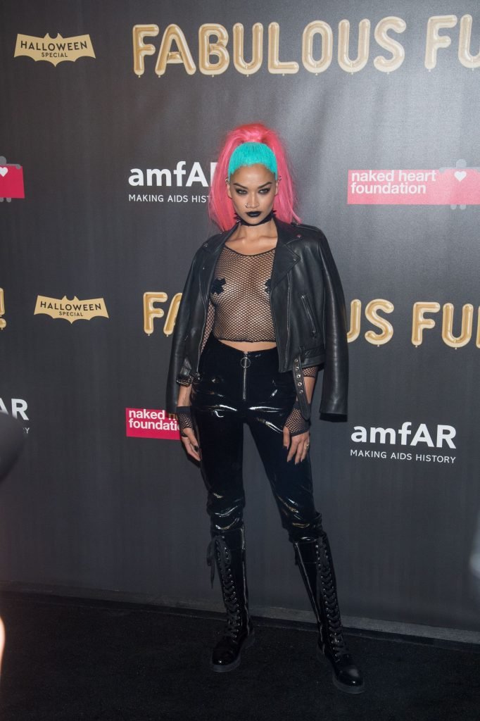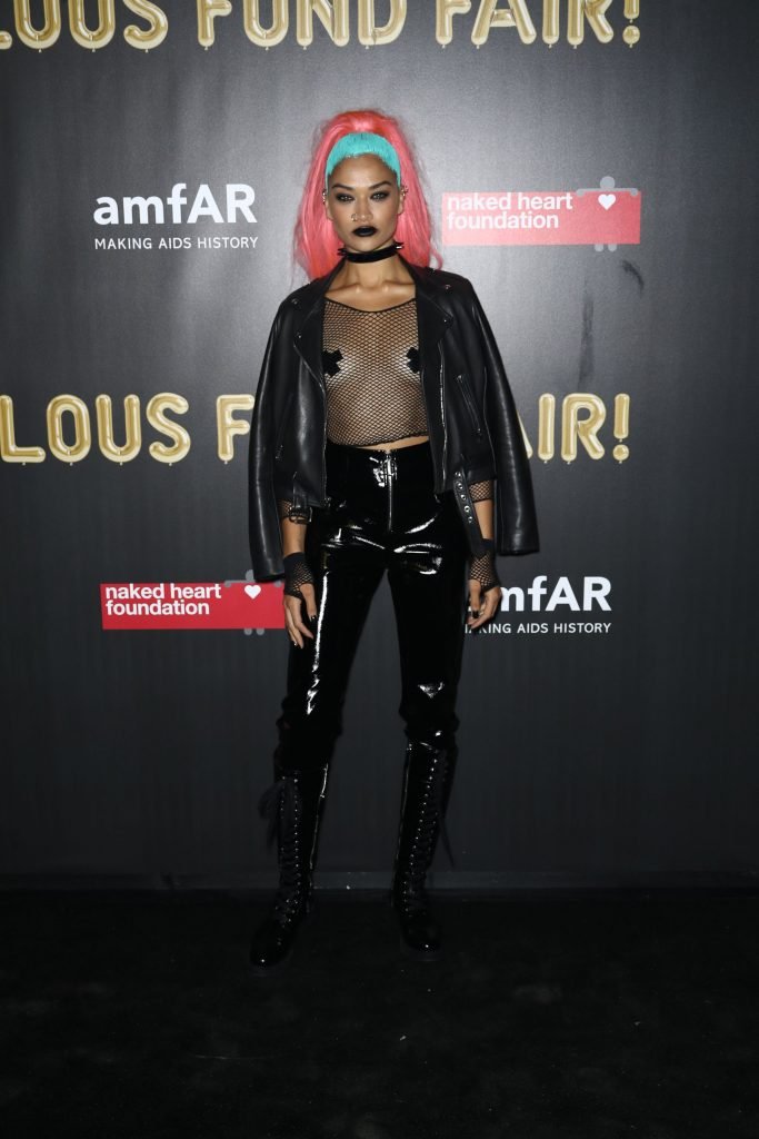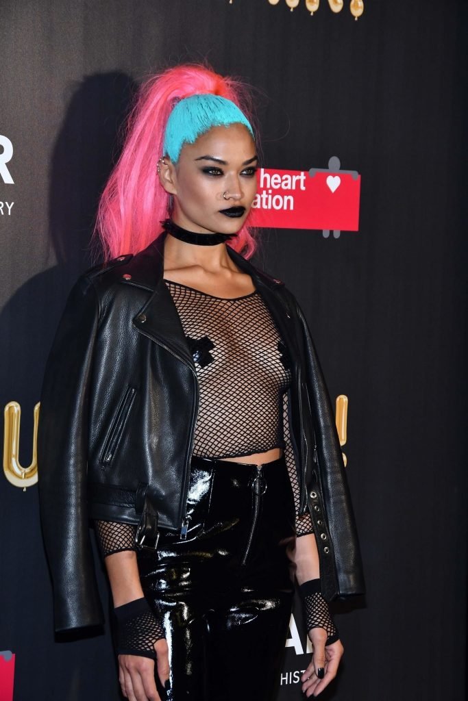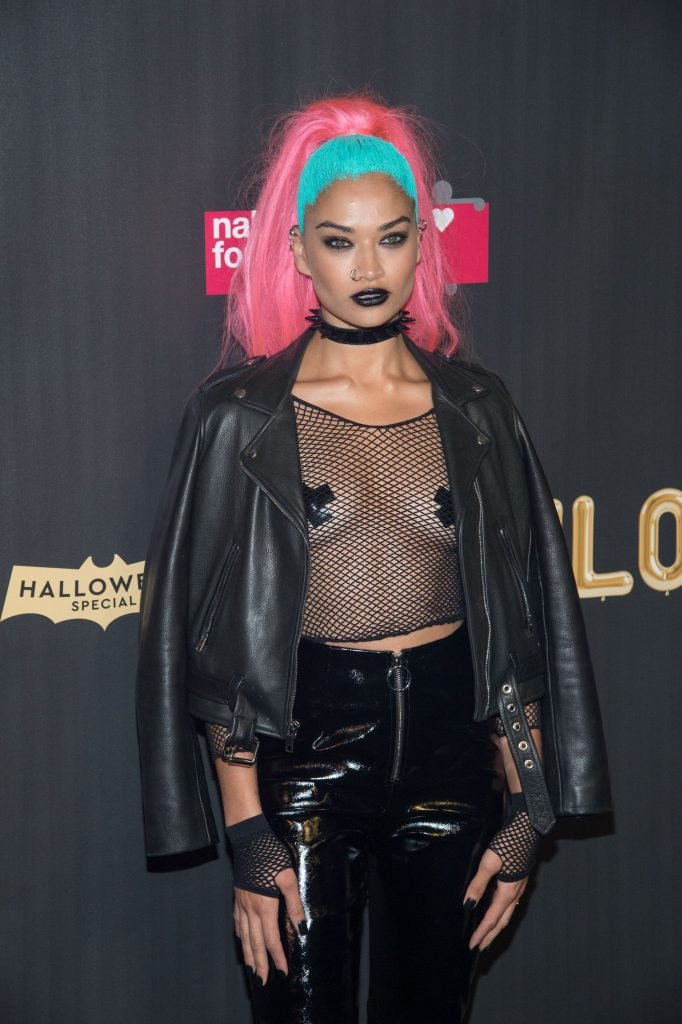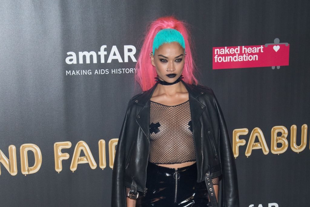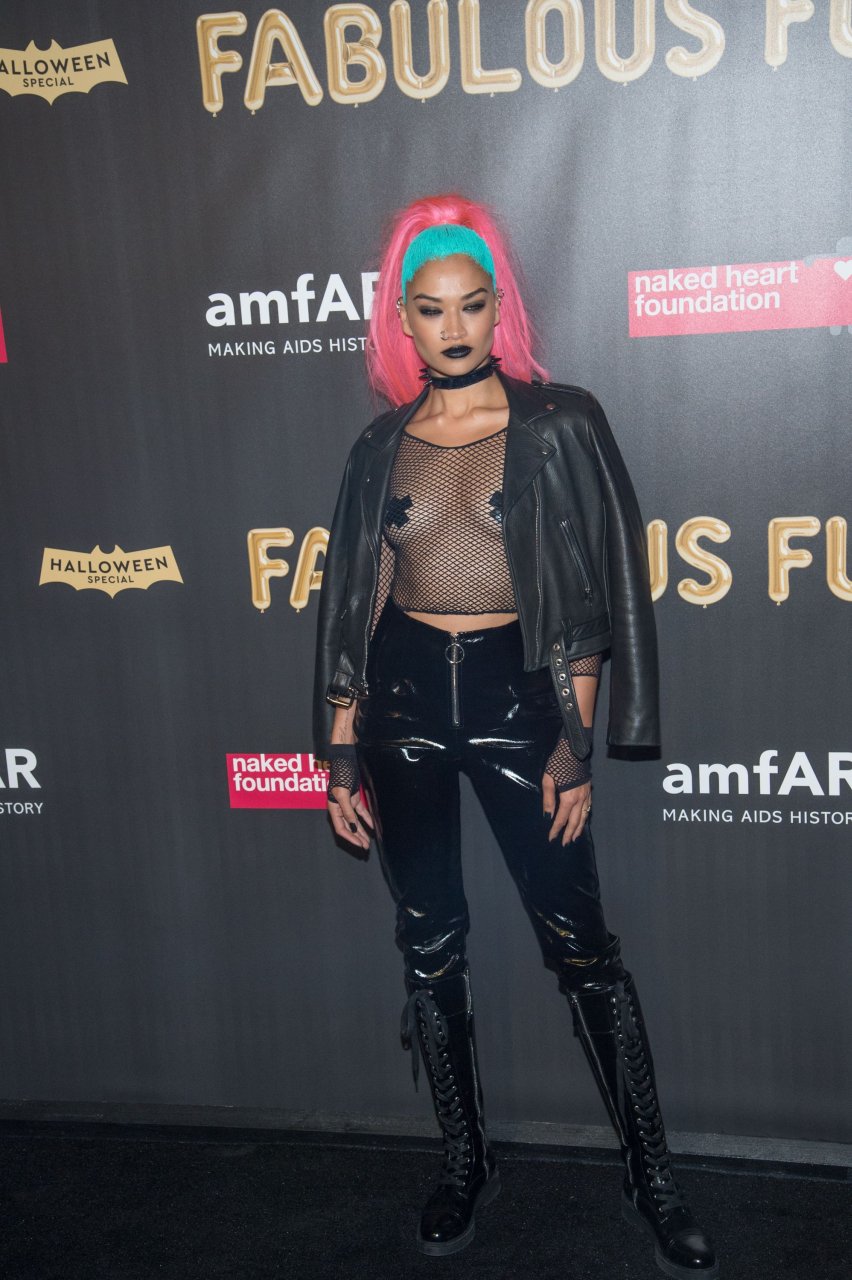 Shanina Shaik porte un haut en résille avec des cache-tétons lors de la 2017 amfAR Fabulous Fund Fair à NYC, le 28/10/2017. Shanina Shaik est un top modèle australien de la mode. Âge : 26 ans (née le 11 février 1991)