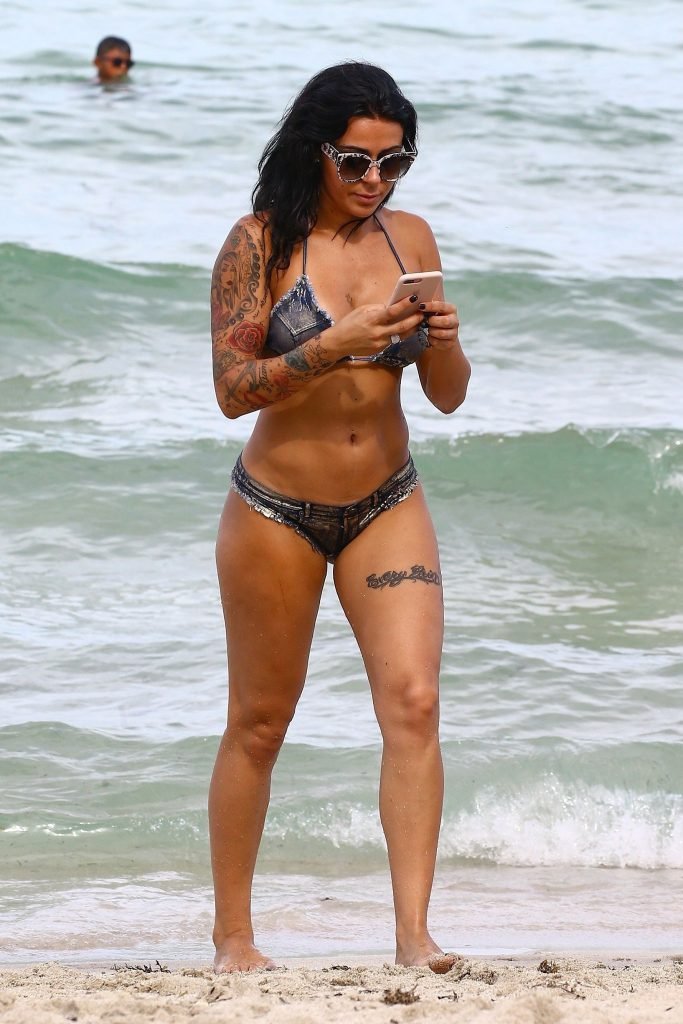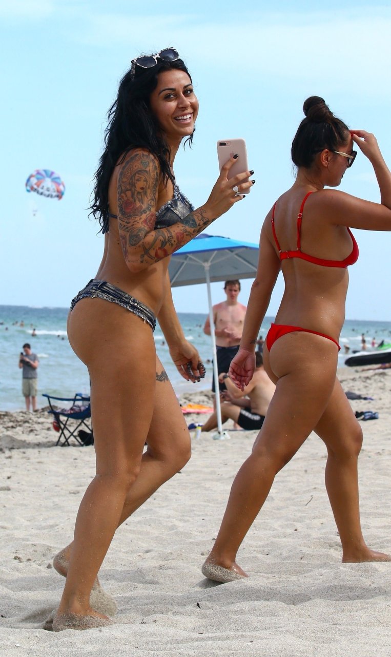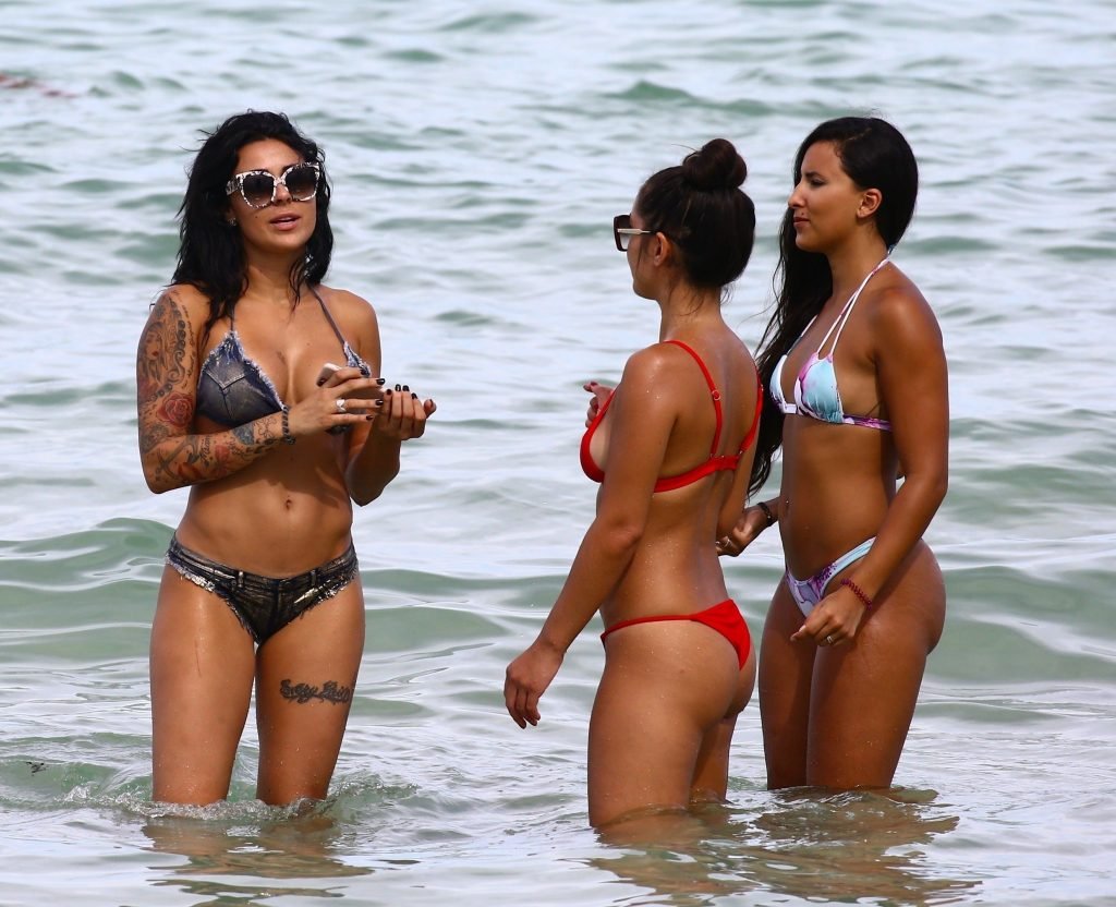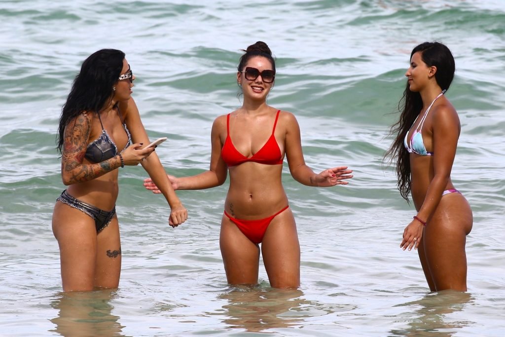 La chanteuse Shanna Kress profite de la plage à Miami avec ses amies, 26/07/2017.
