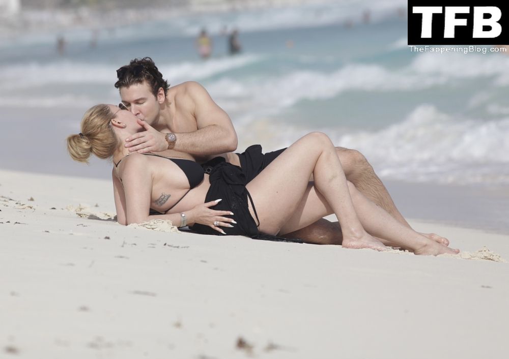 L’ancienne reine de beauté semblait folle amoureuse alors qu’elle s’embrassait sur le sable avec son petit ami Matthew Rondeau lors de vacances romantiques à Cancun.