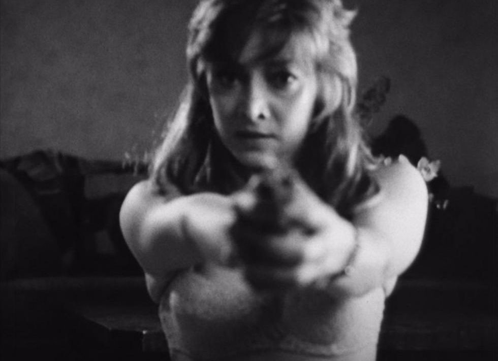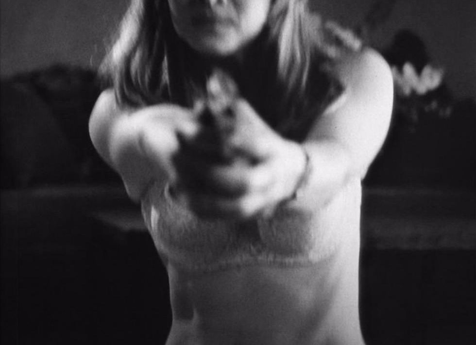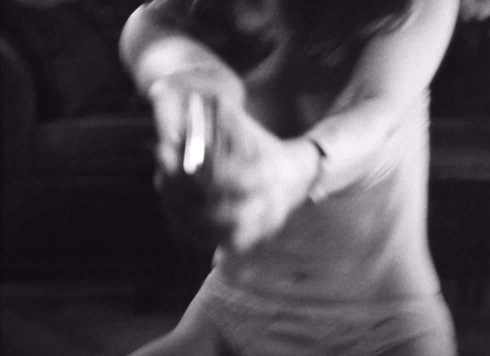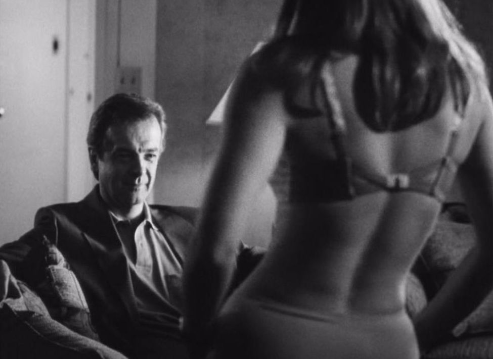 Sharon looks smoking in an open shirt and slinky bra in the bedroom.