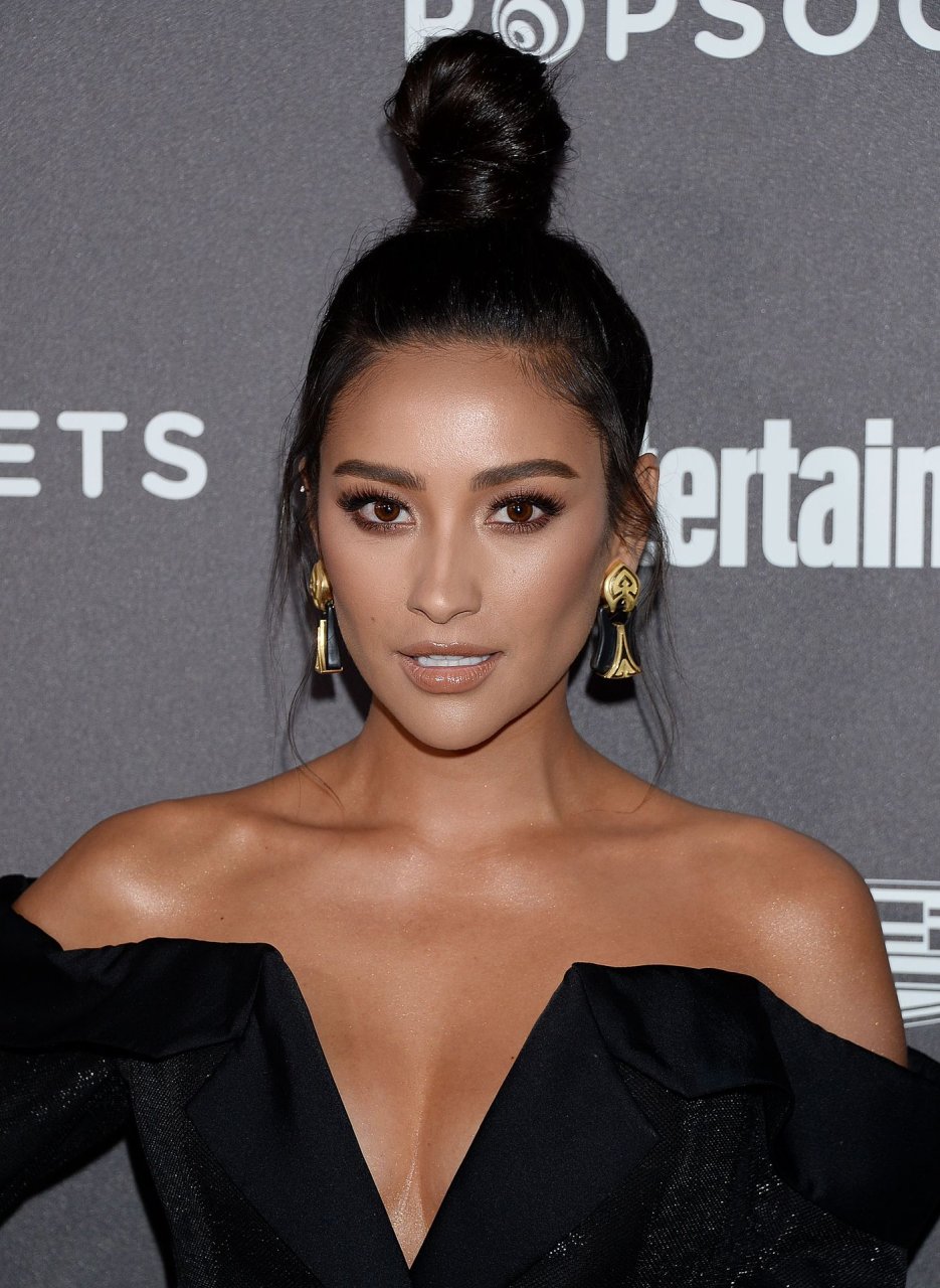 L’actrice/modèle canadienne Shay Mitchell exhibe ses jambes sexy, son décolleté et sa culotte lors de la soirée pré-SAG 2019 d’Entertainment Weekly à Hollywood, le 26/01/2019.